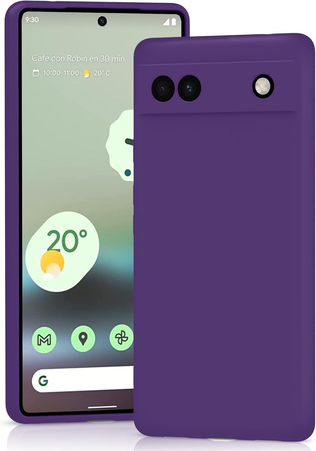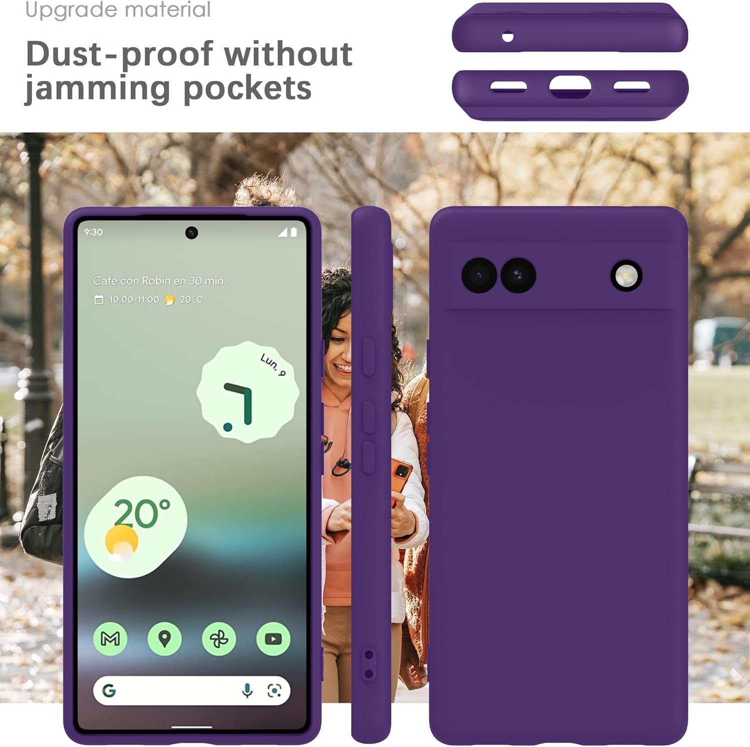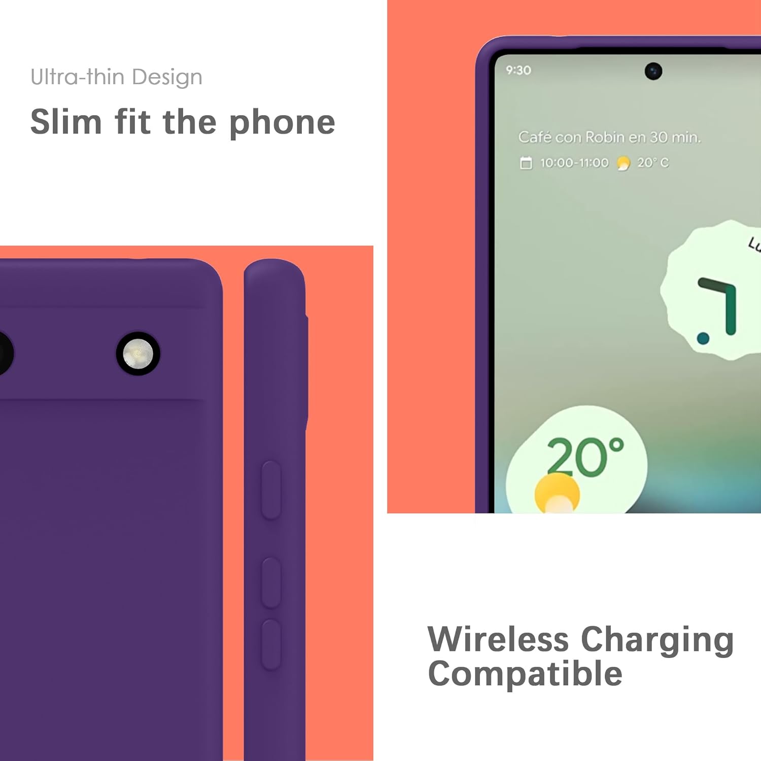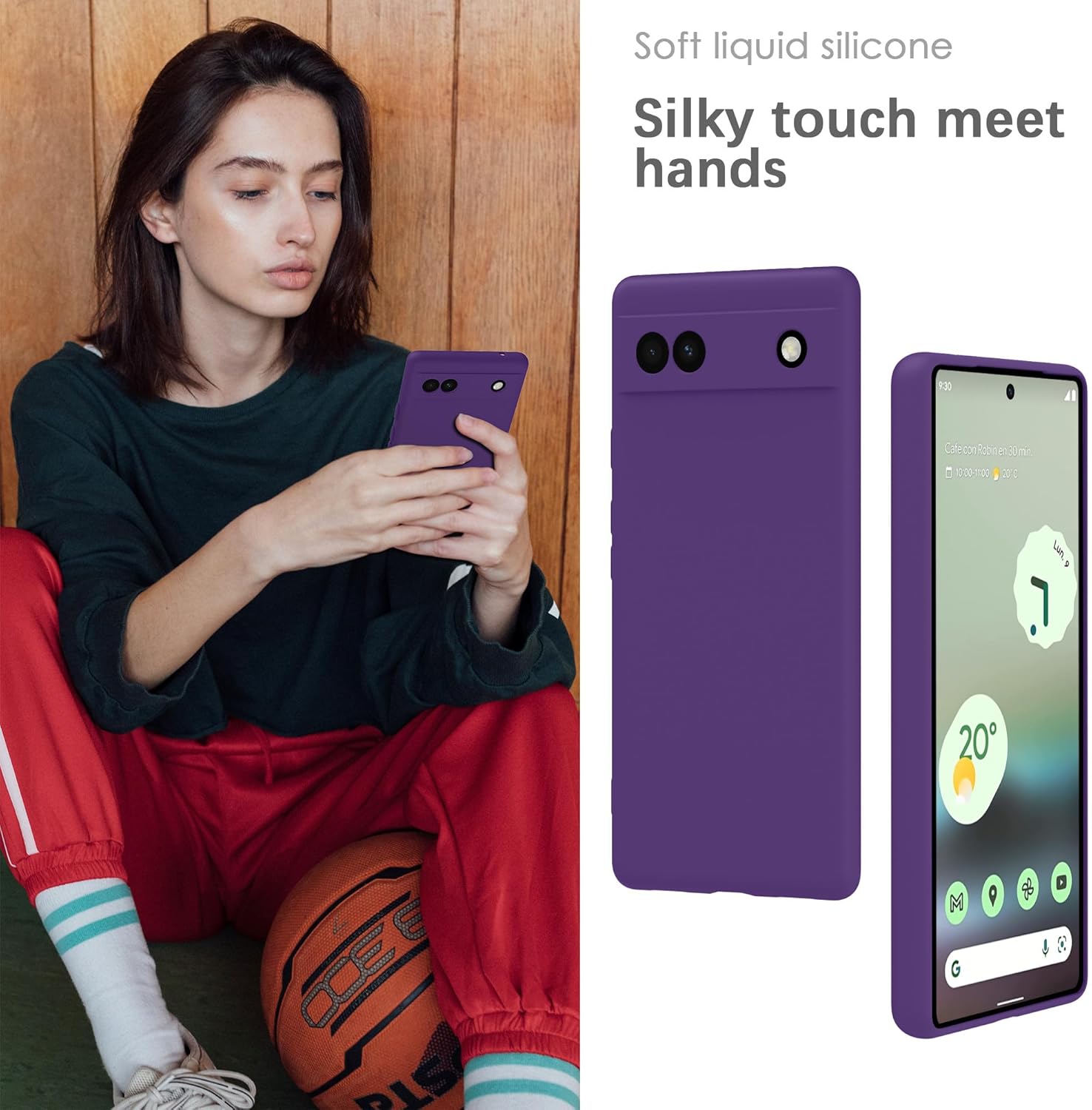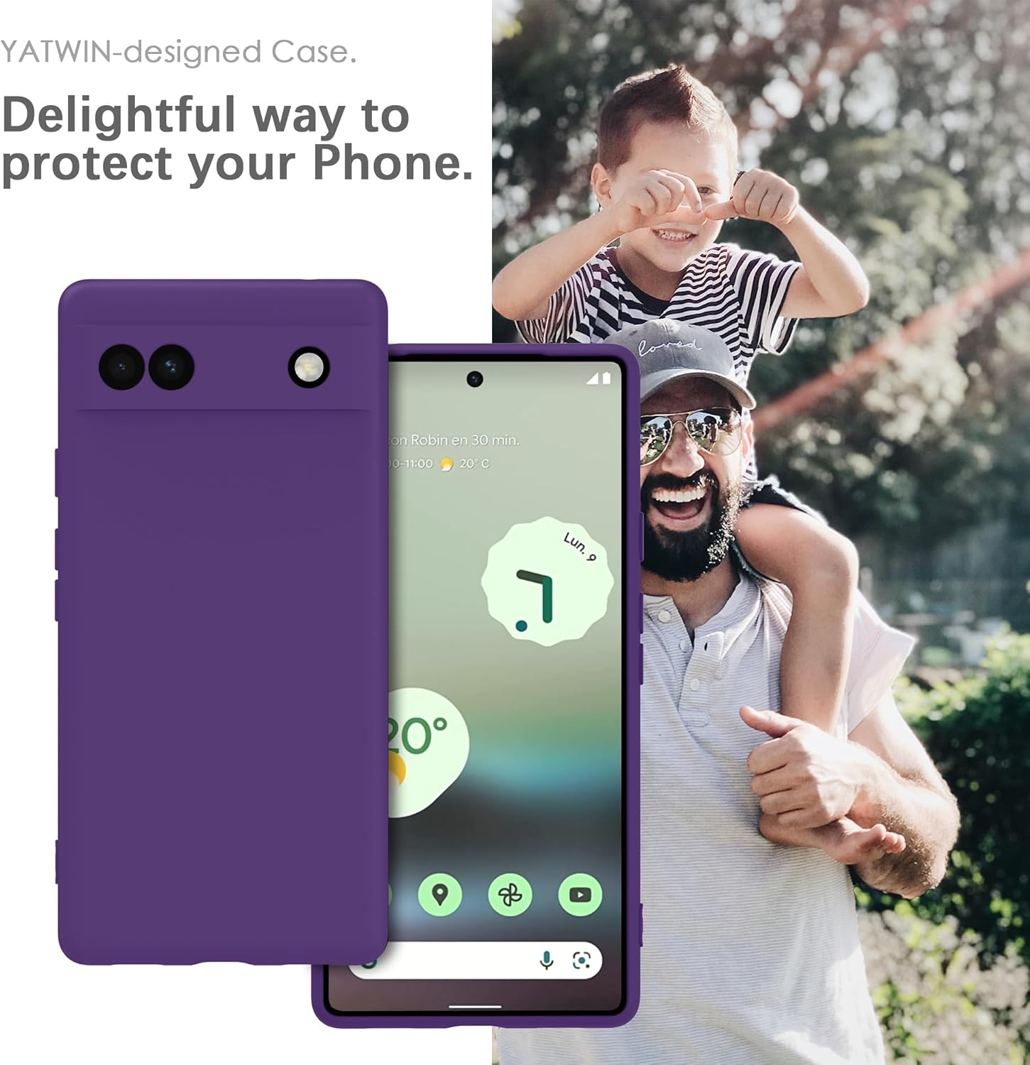 YATWIN Кейс за Google Pixel 6A, Висококачествен силиконов калъф за мобилен телефон със защита на камерата, Копринен, Мек на допир, Ултра тънък, Удароустойчив, Устойчив на надраскване, Защитен калъф, Виола