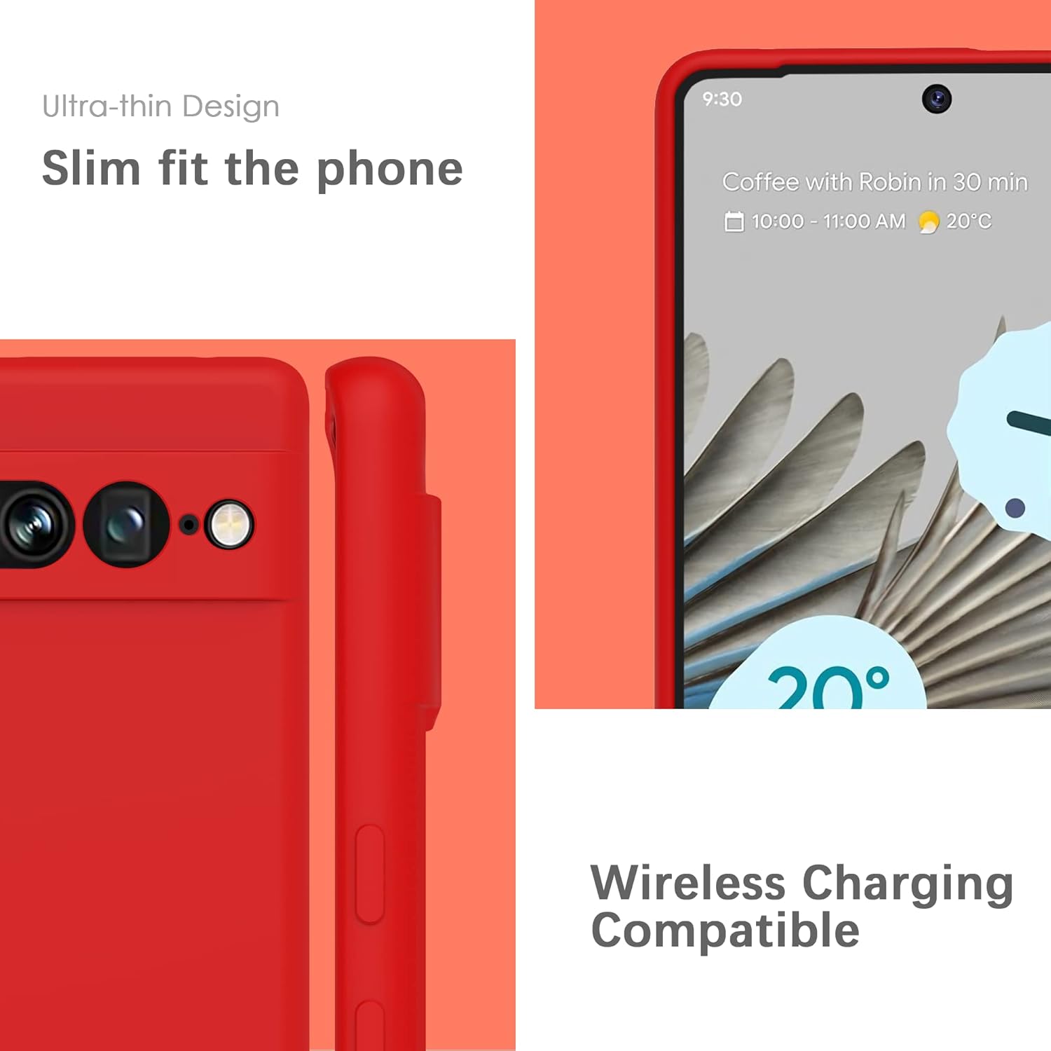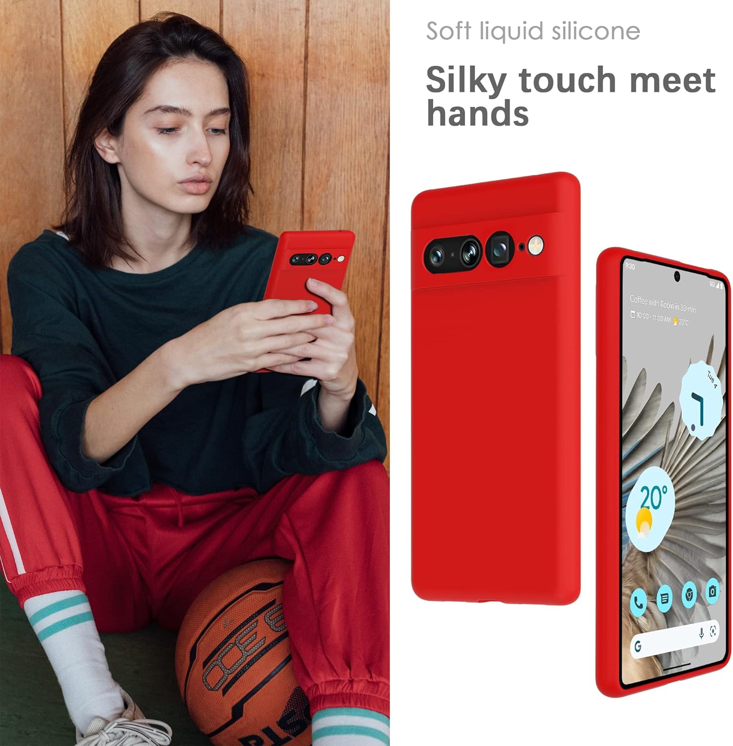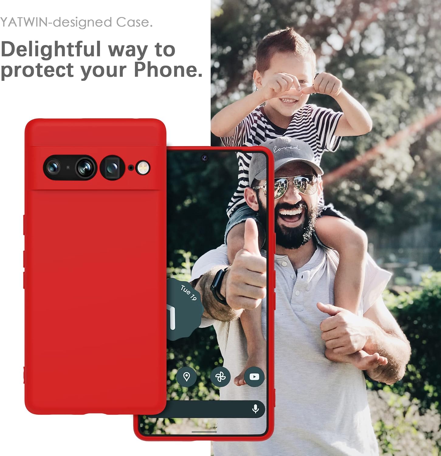 YATWIN Кейс за Google Pixel 7 Pro, Премиум силиконов калъф за мобилен телефон със защита на камерата, Копринен, Мек на допир, Ултра тънък, Удароустойчив, Устойчив на надраскване, Защитен калъф, Червен