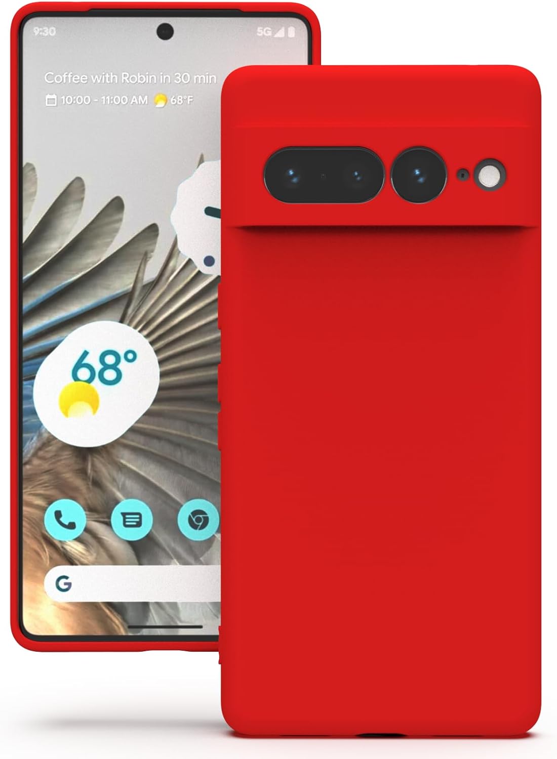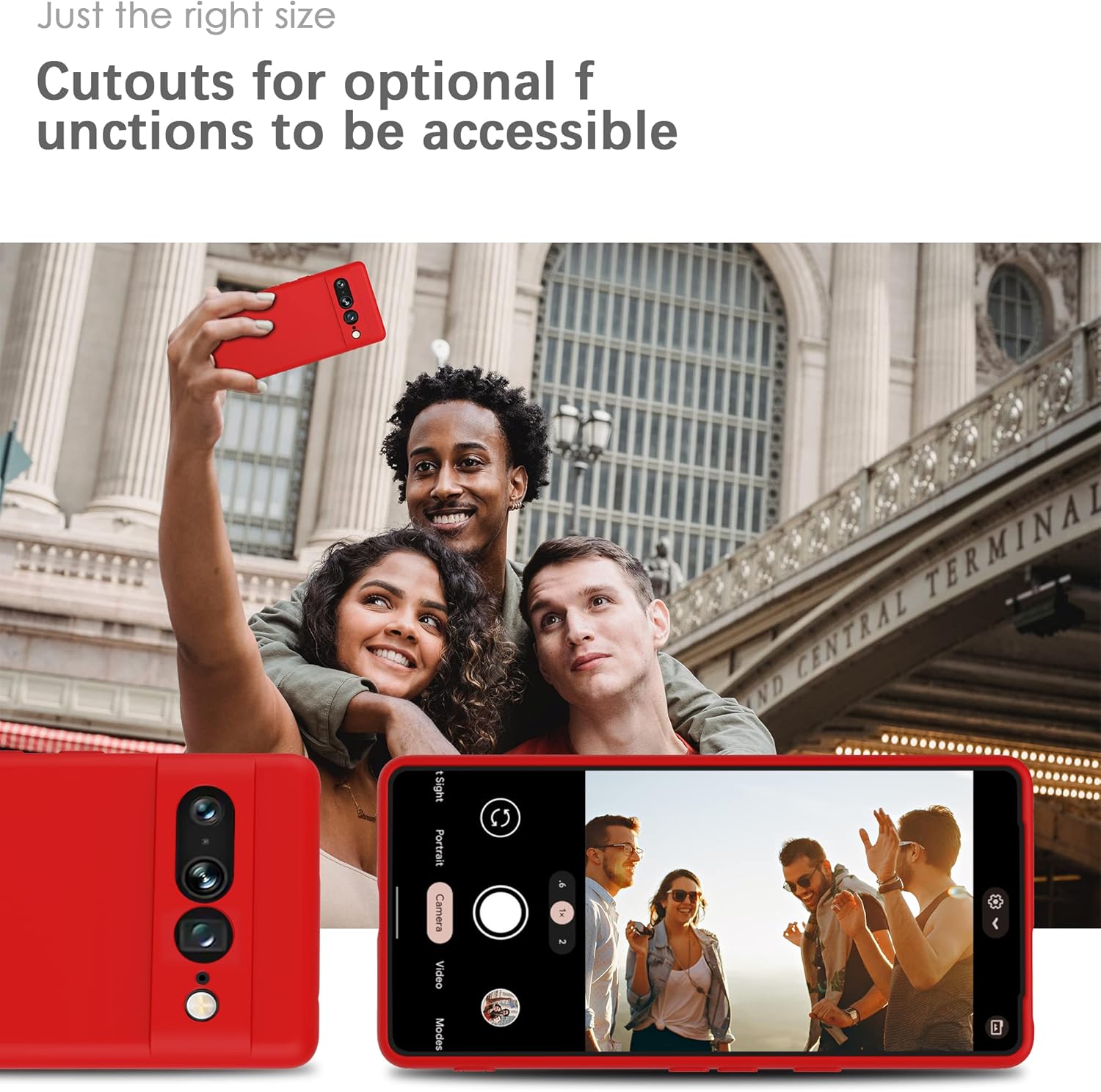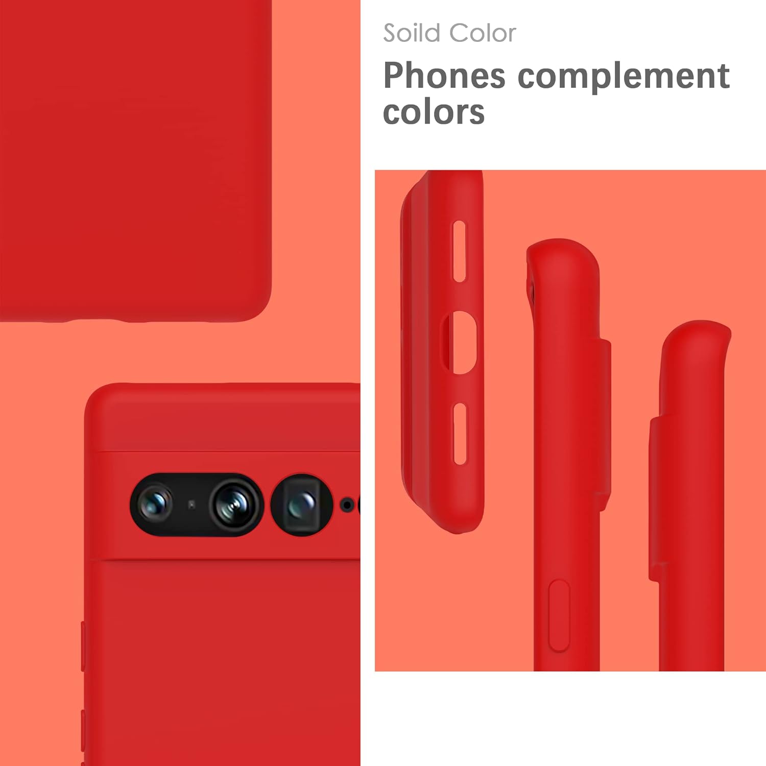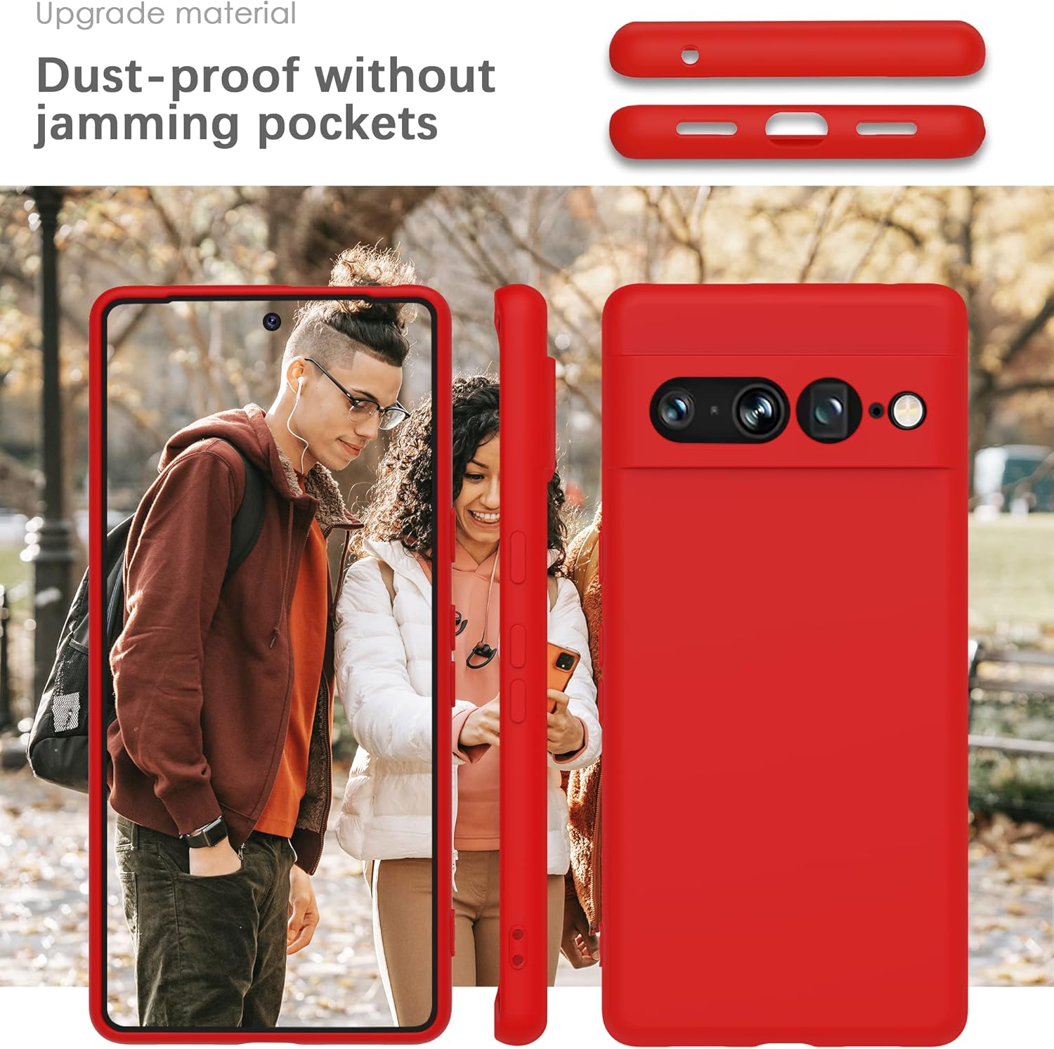 YATWIN Кейс за Google Pixel 7 Pro, Премиум силиконов калъф за мобилен телефон със защита на камерата, Копринен, Мек на допир, Ултра тънък, Удароустойчив, Устойчив на надраскване, Защитен калъф, Червен
