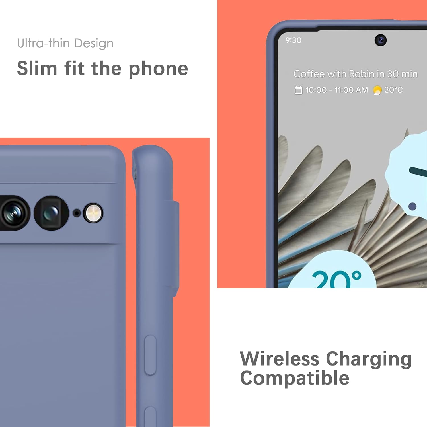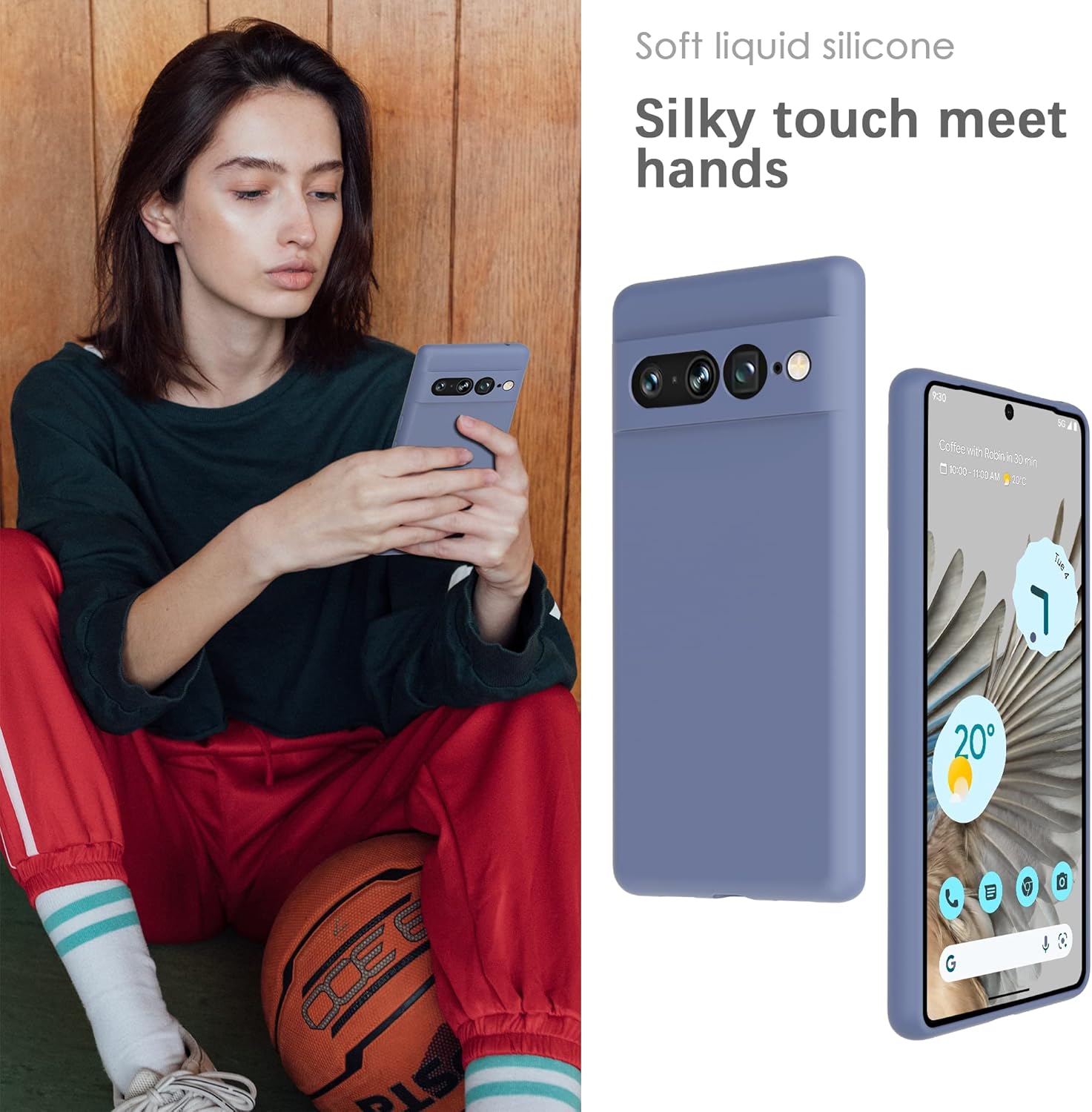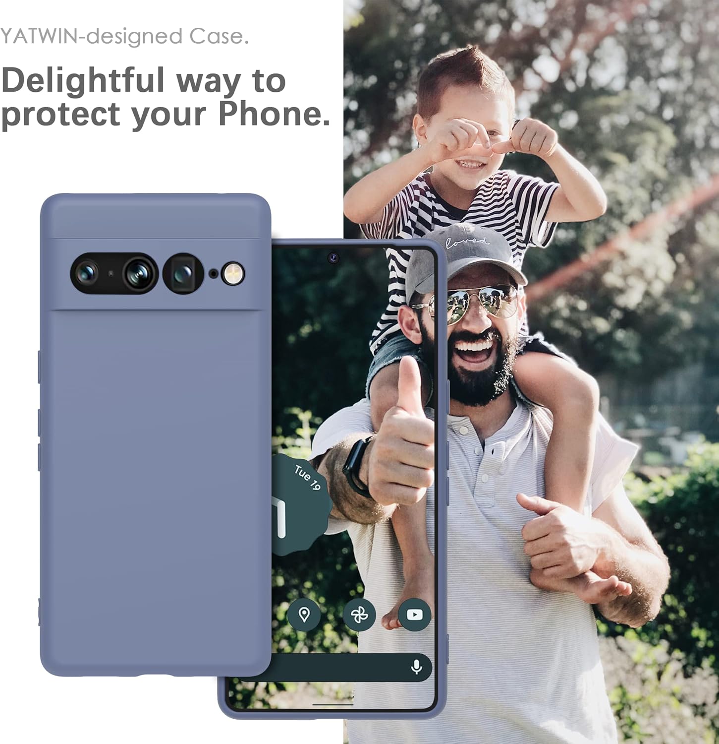 YATWIN Кейс за Google Pixel 7 Pro, Премиум силиконов калъф за мобилен телефон със защита на камерата, Копринен, Мек на допир, Ултра тънък, Удароустойчив, Устойчив на надраскване, Защитен калъф, Лавандулово сив