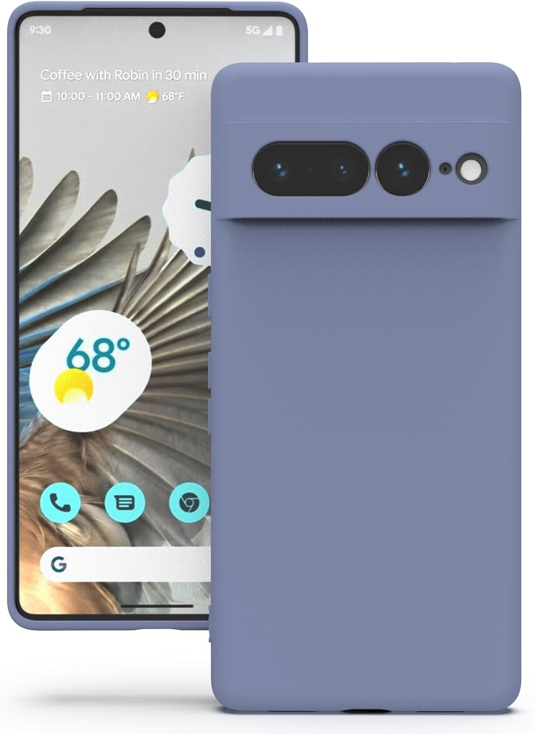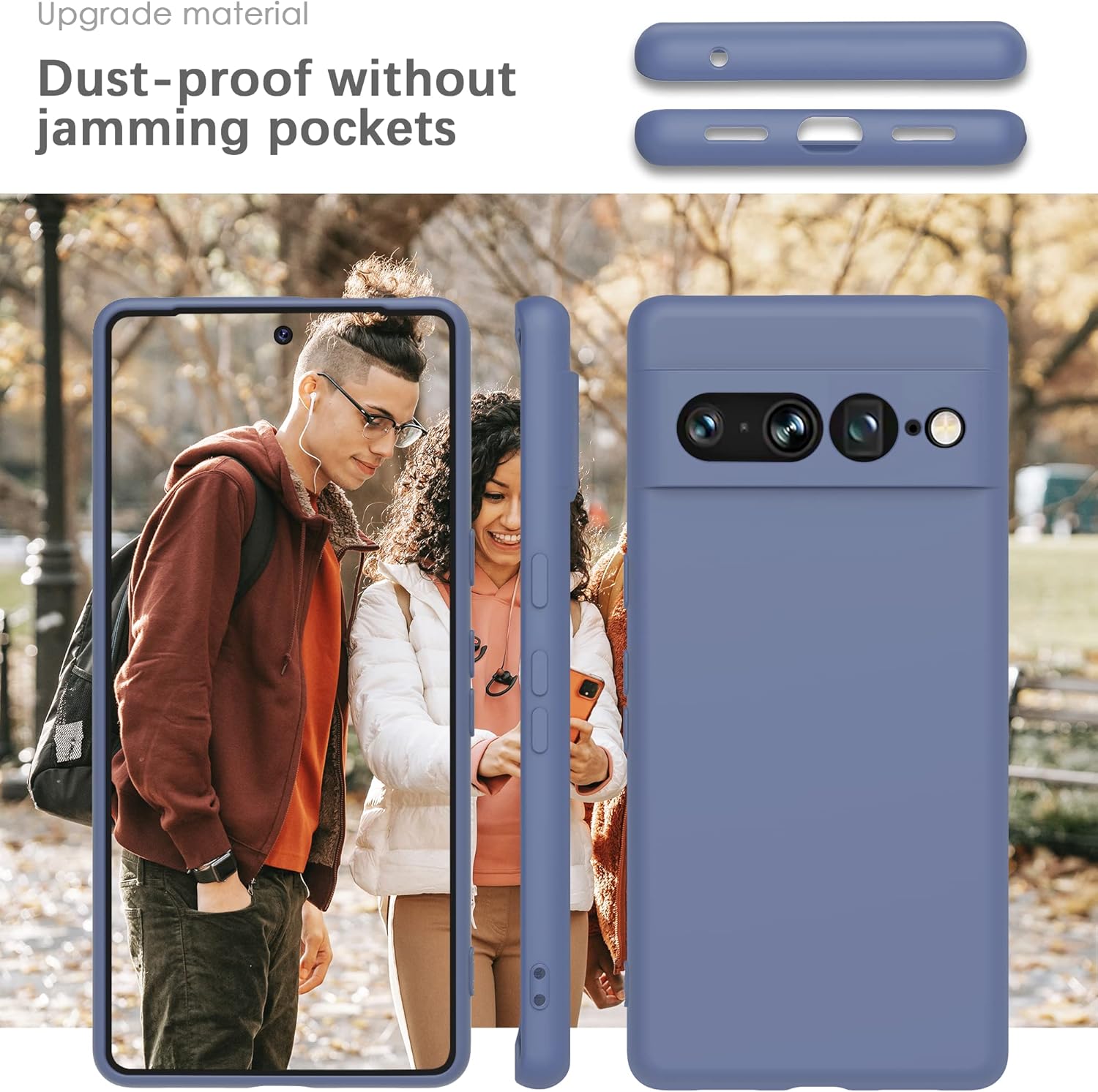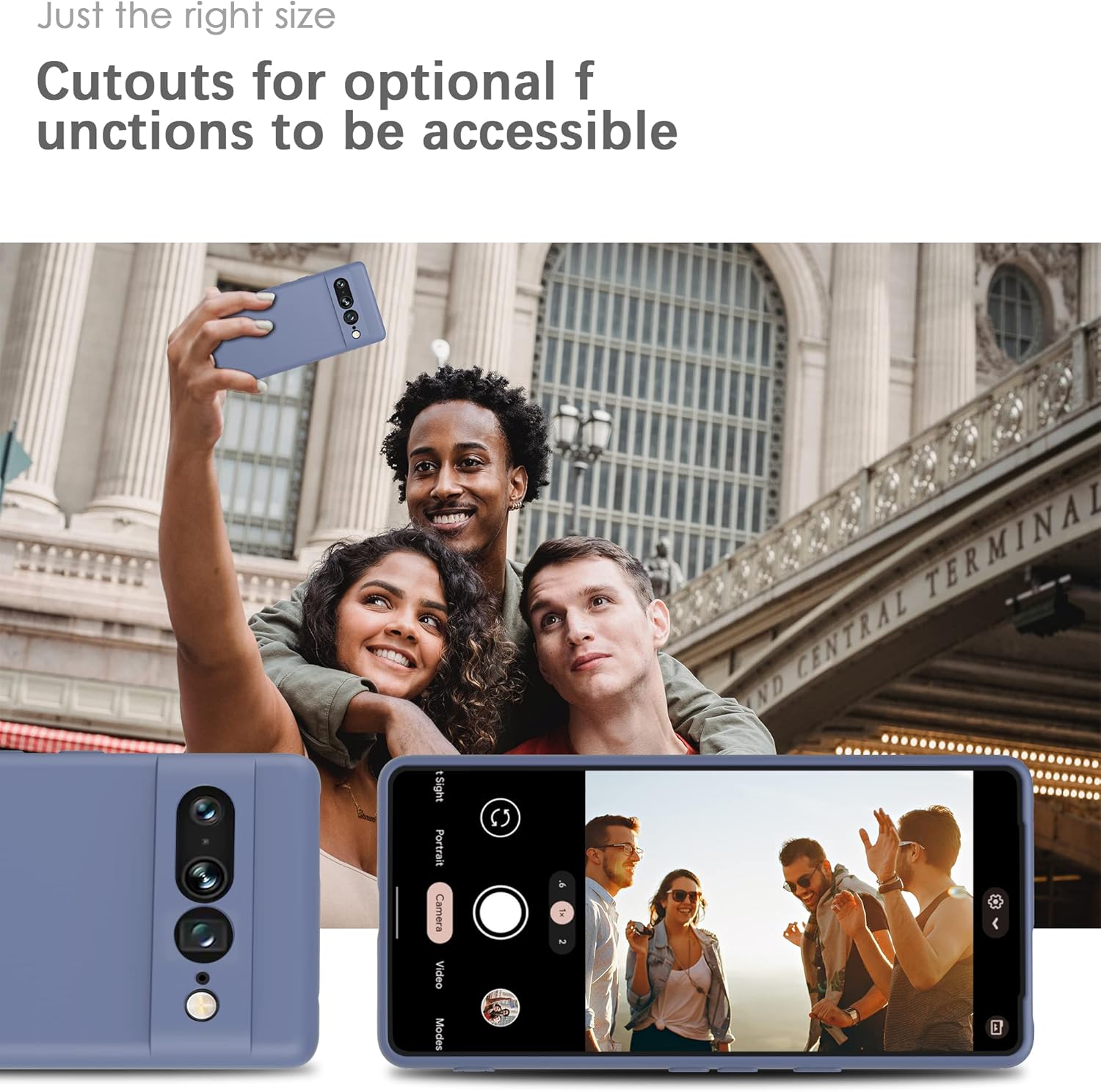 YATWIN Кейс за Google Pixel 7 Pro, Премиум силиконов калъф за мобилен телефон със защита на камерата, Копринен, Мек на допир, Ултра тънък, Удароустойчив, Устойчив на надраскване, Защитен калъф, Лавандулово сив