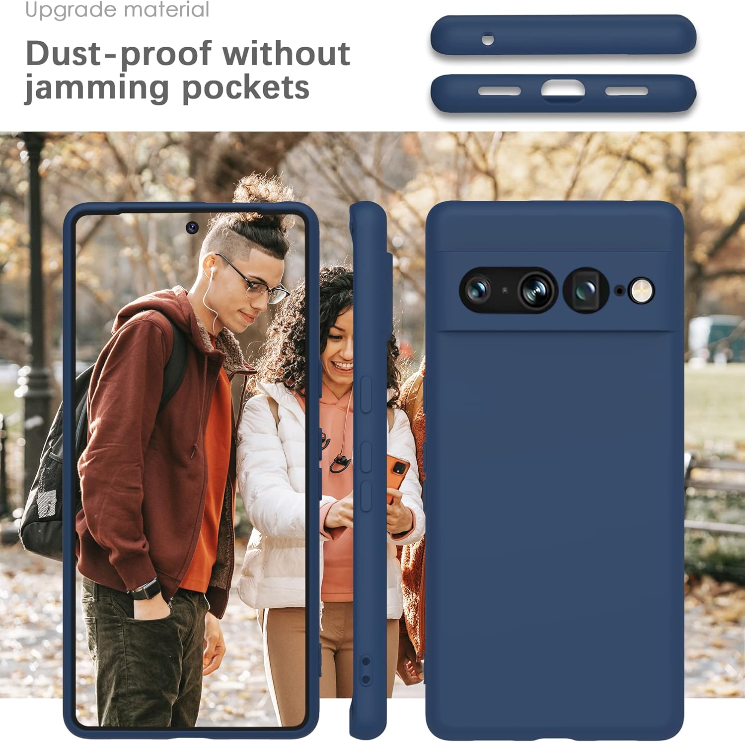 YATWIN Кейс за Google Pixel 7 Pro, Премиум силиконов калъф за мобилен телефон със защита на камерата, Копринен, Мек на допир, Ултра тънък, Удароустойчив, Устойчив на надраскване, Защитен калъф, Син