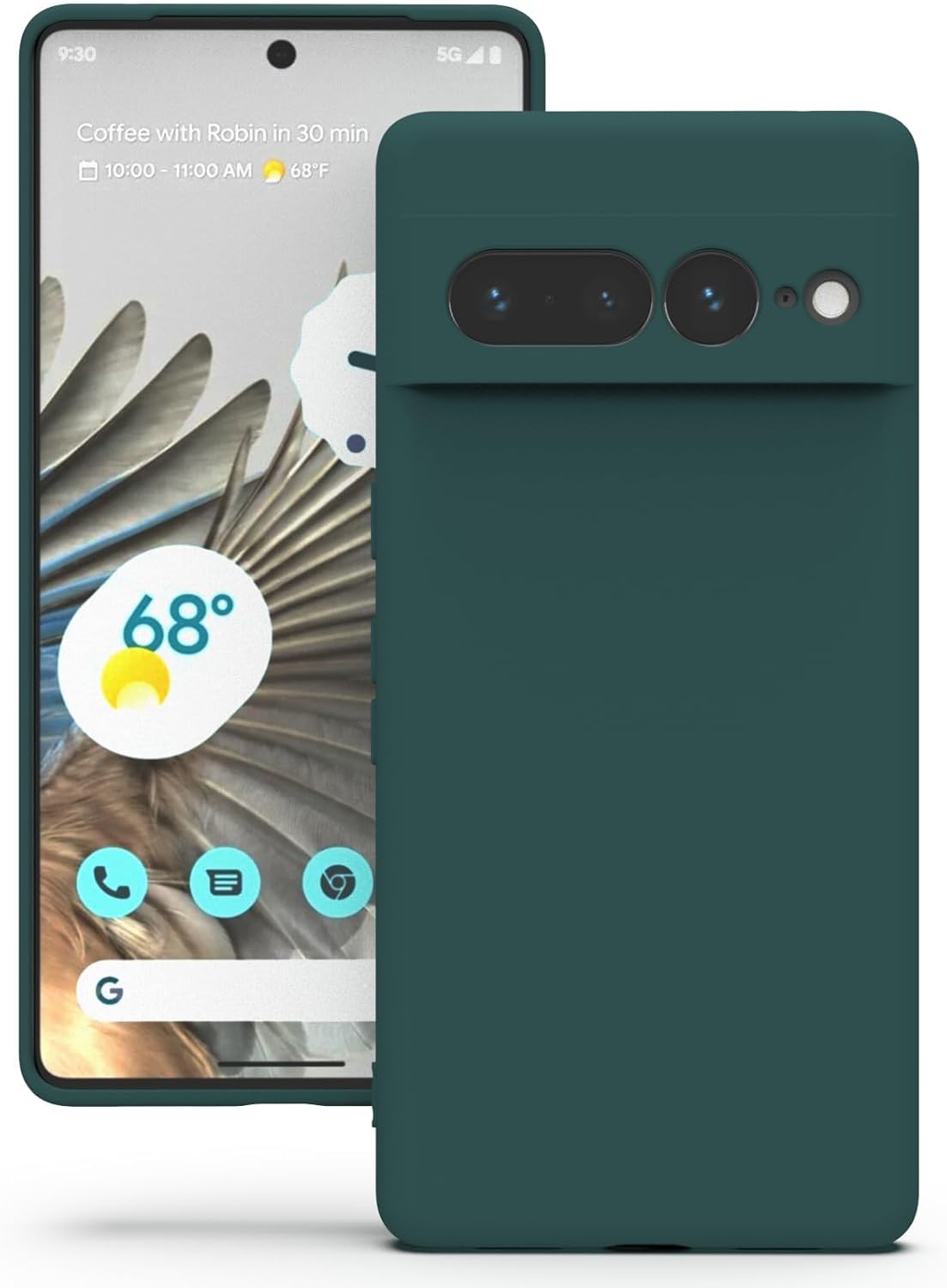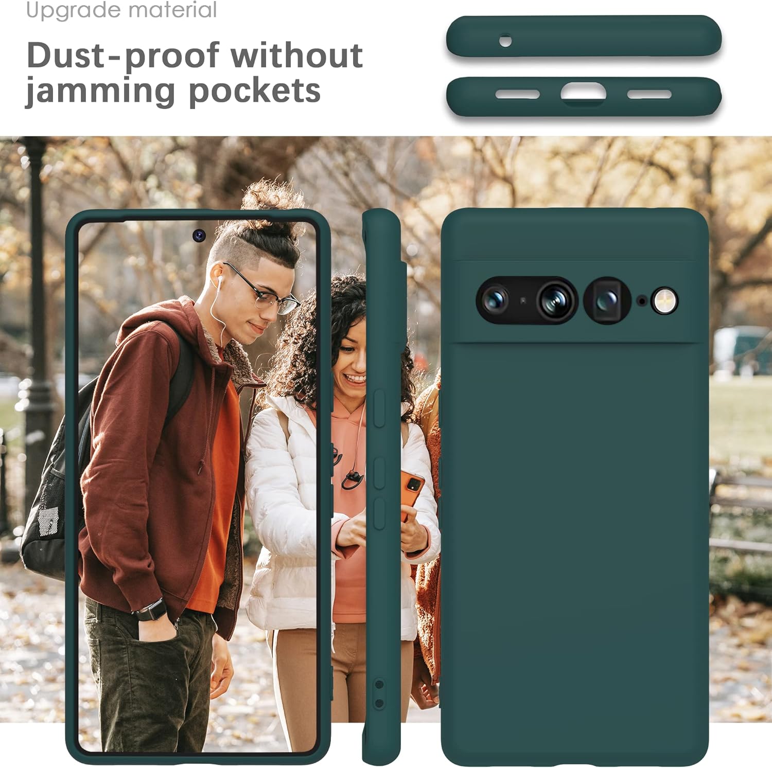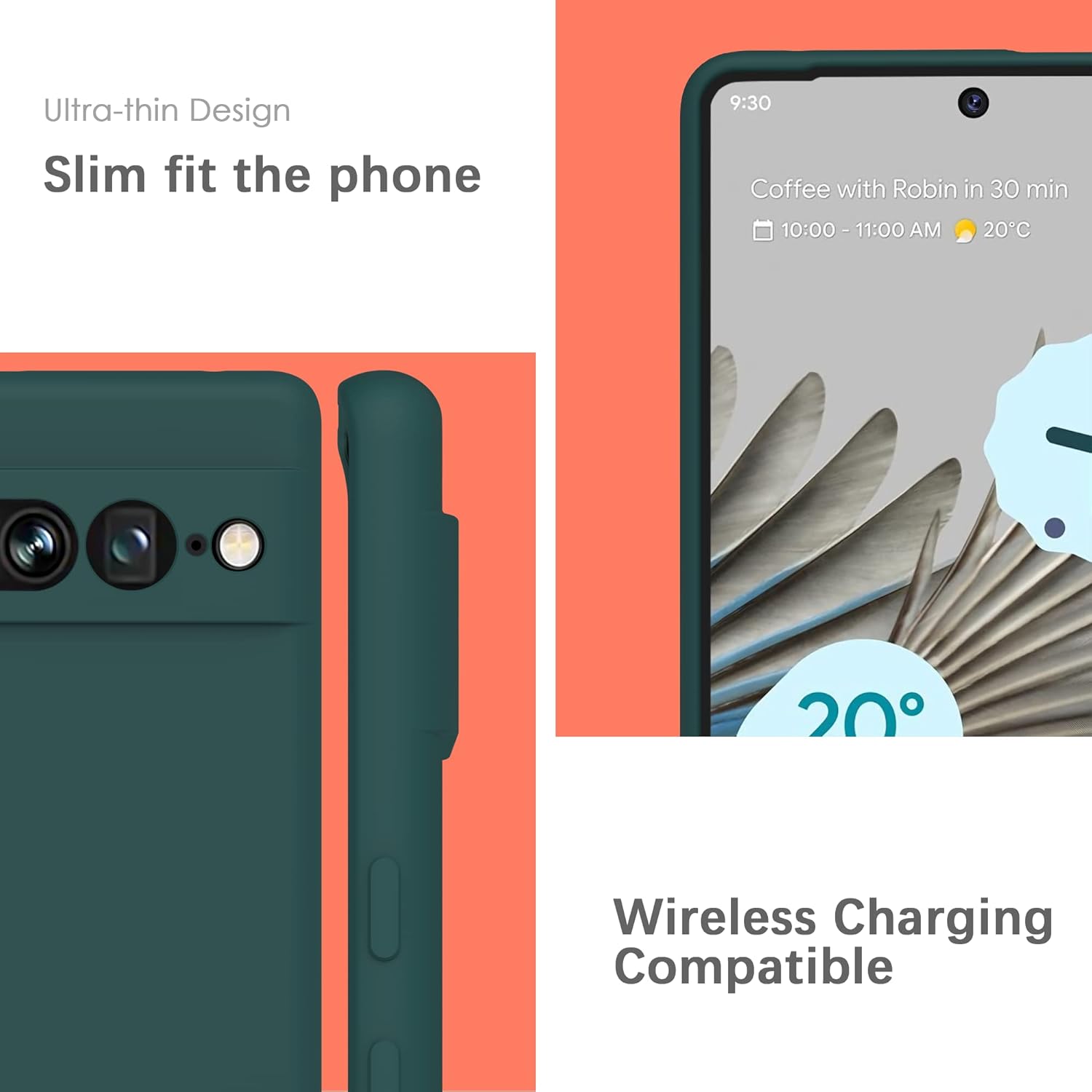 YATWIN Кейс за Google Pixel 7 Pro, Премиум силиконов калъф за мобилен телефон със защита на камерата, Копринен, Мек на допир, Ултра тънък, Удароустойчив, Устойчив на надраскване, Защитен калъф, Зелен