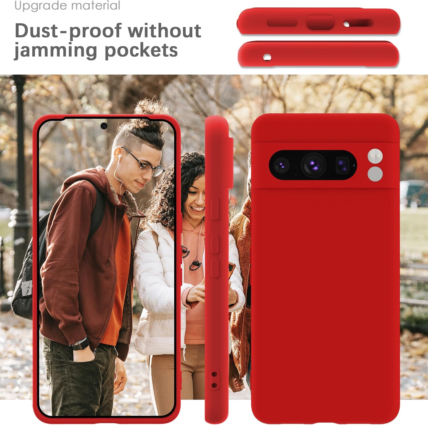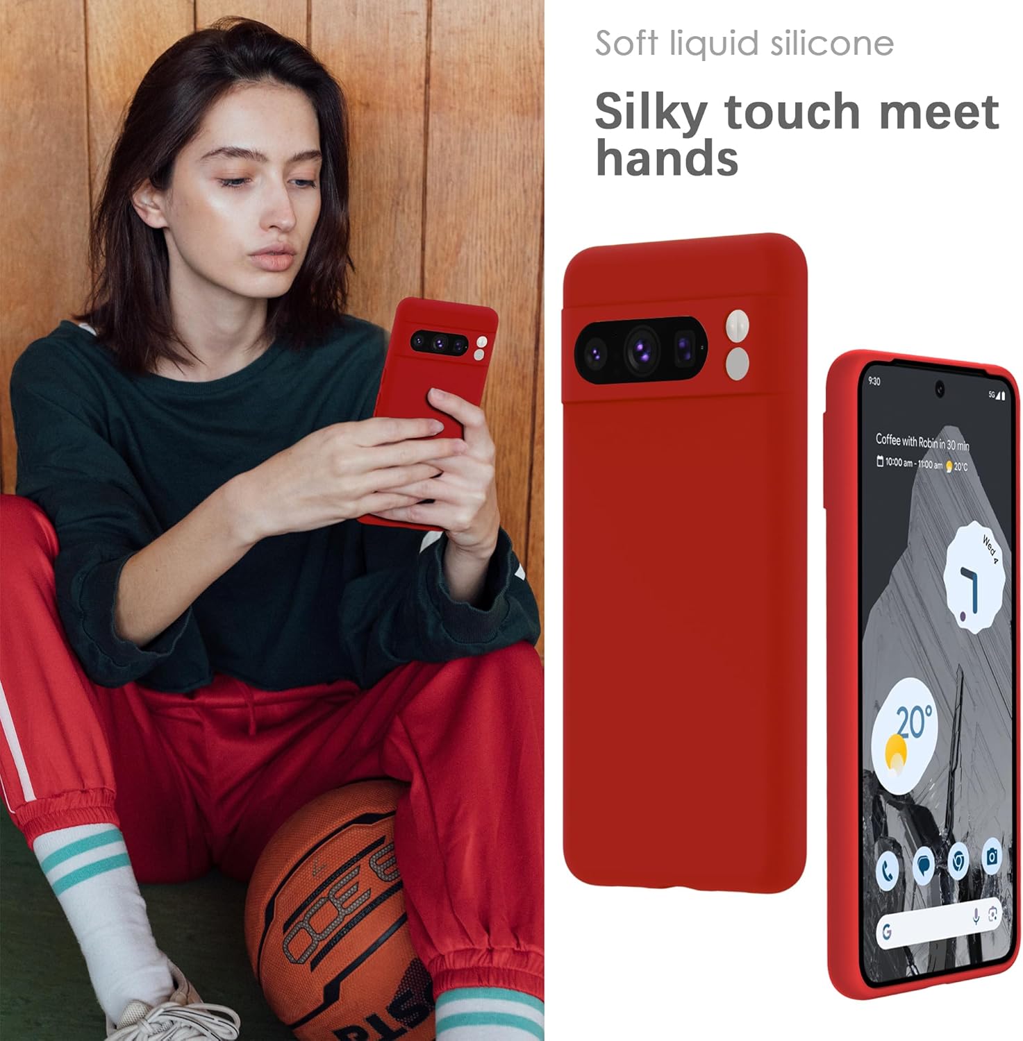 YATWIN Кейс за Google Pixel 8 Pro, Премиум силиконов калъф за мобилен телефон със защита на камерата, Копринен, Мек на допир, Ултра тънък, Удароустойчив, Устойчив на надраскване, Защитен калъф, Червен