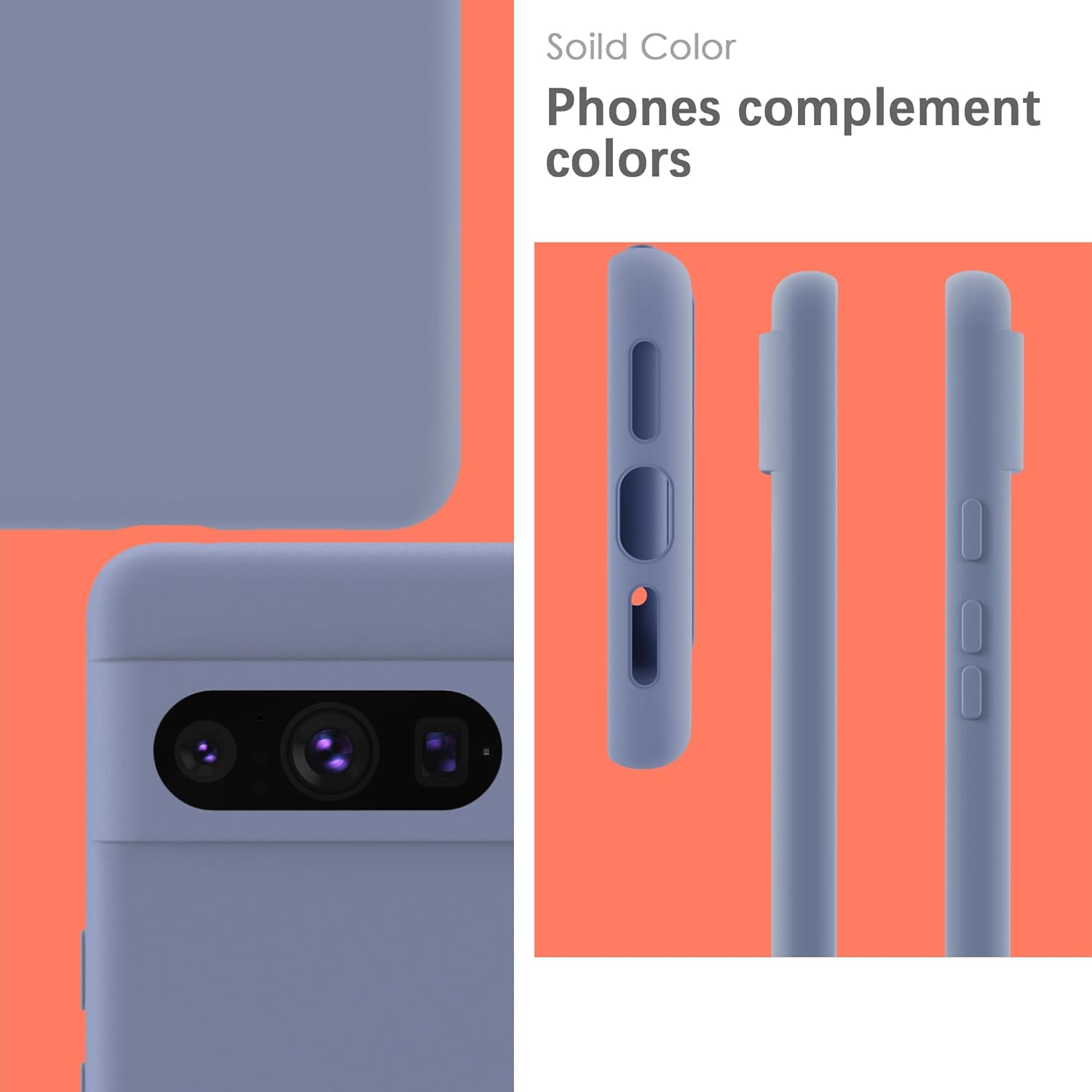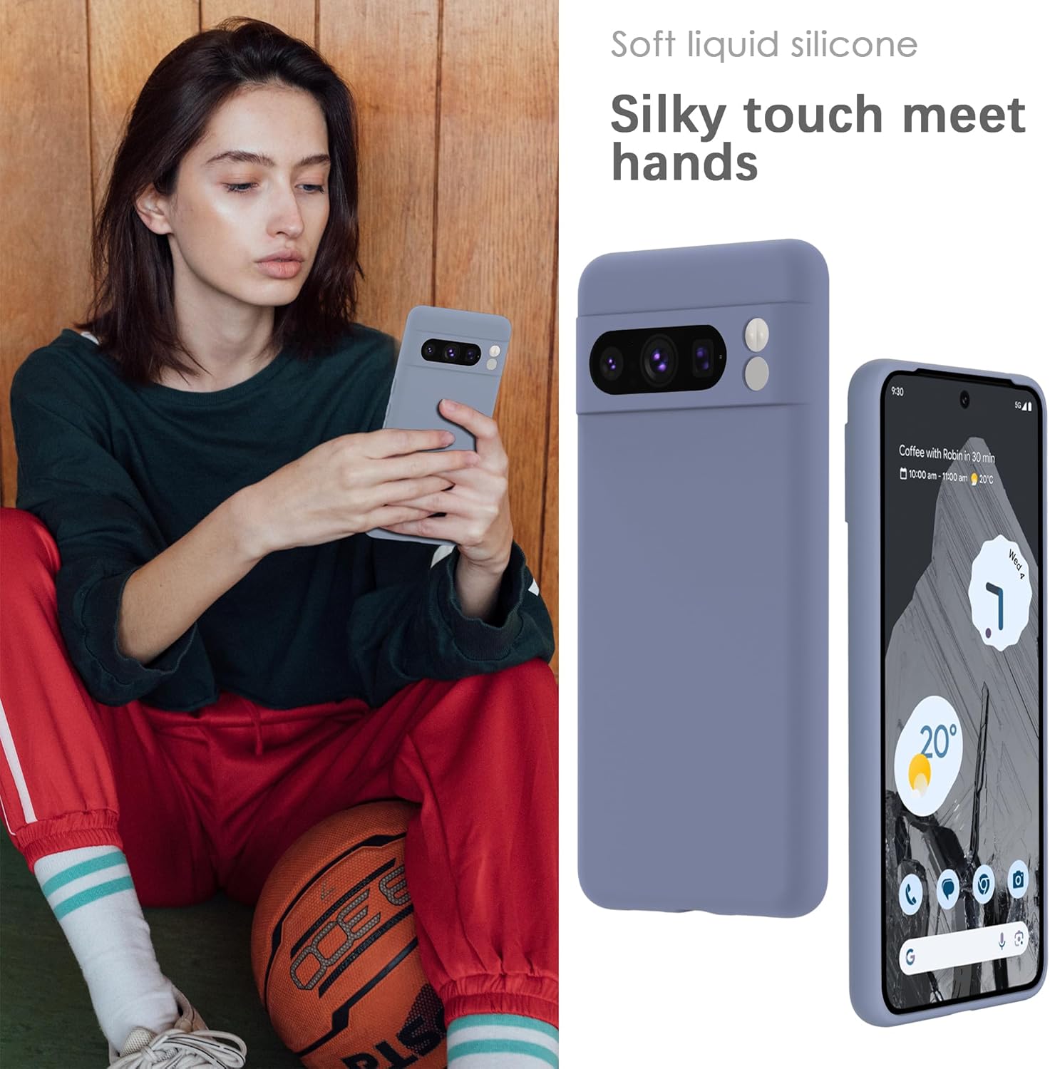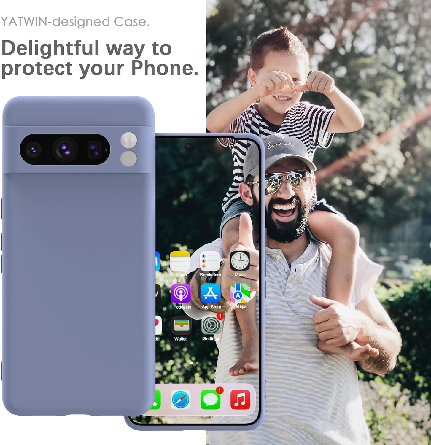 YATWIN Кейс за Google Pixel 8 Pro, Премиум силиконов калъф за мобилен телефон със защита на камерата, Копринен, Мек на допир, Ултра тънък, Удароустойчив, Устойчив на надраскване, Защитен калъф, Лавандулово сив