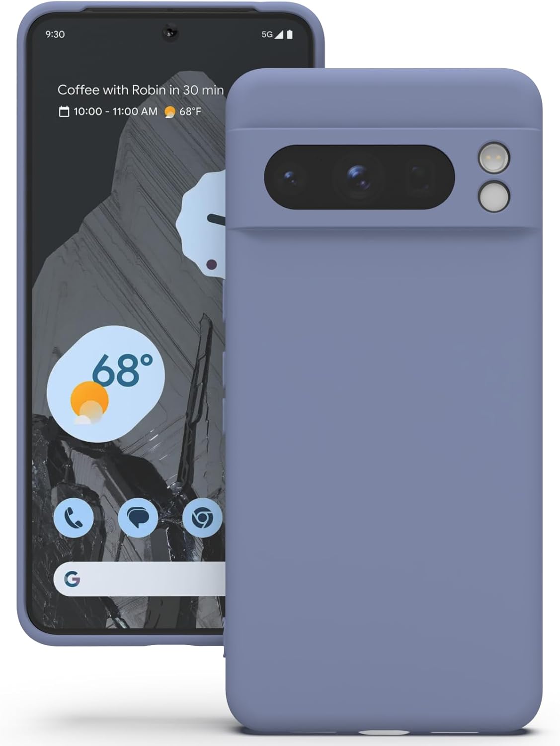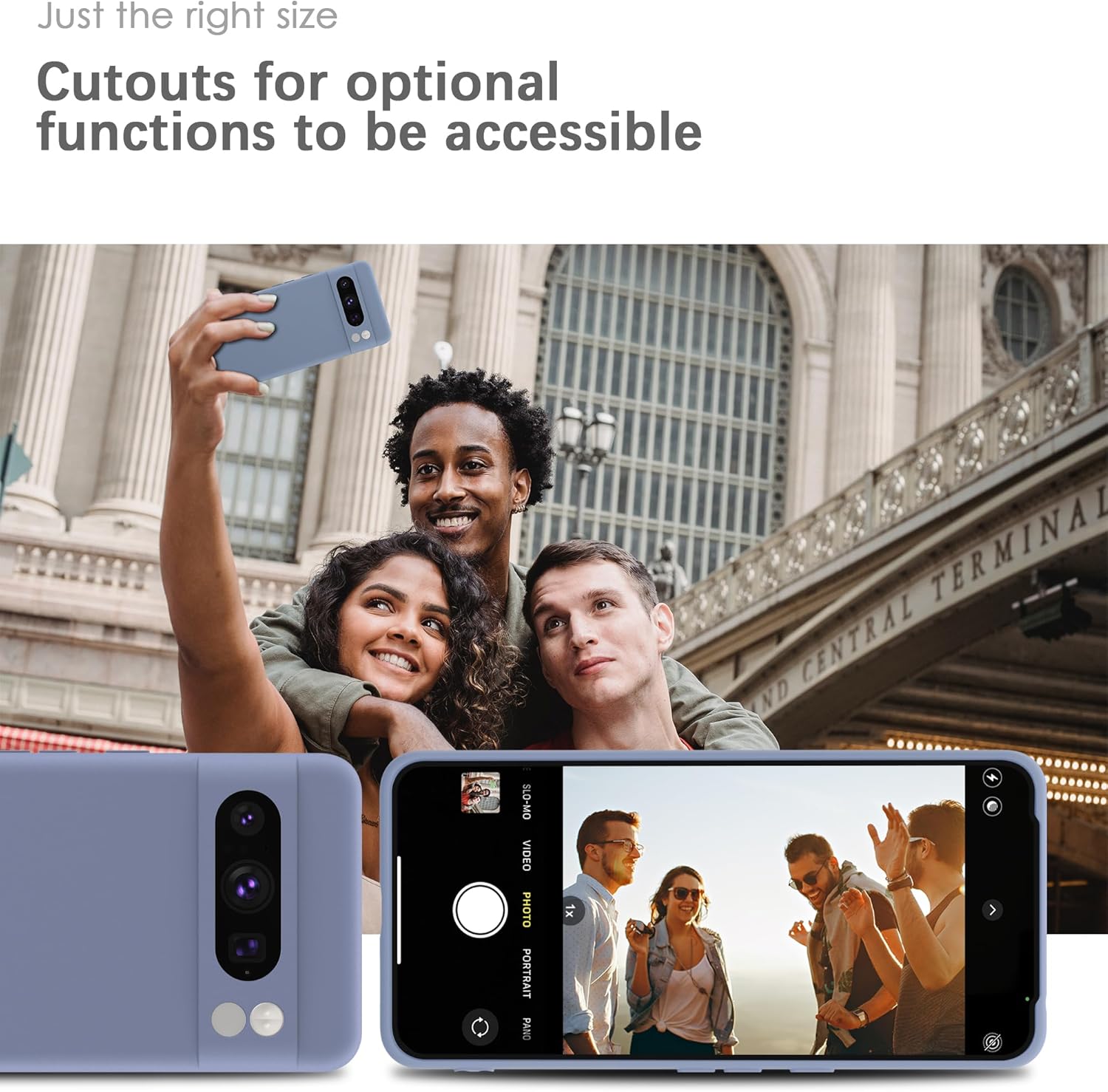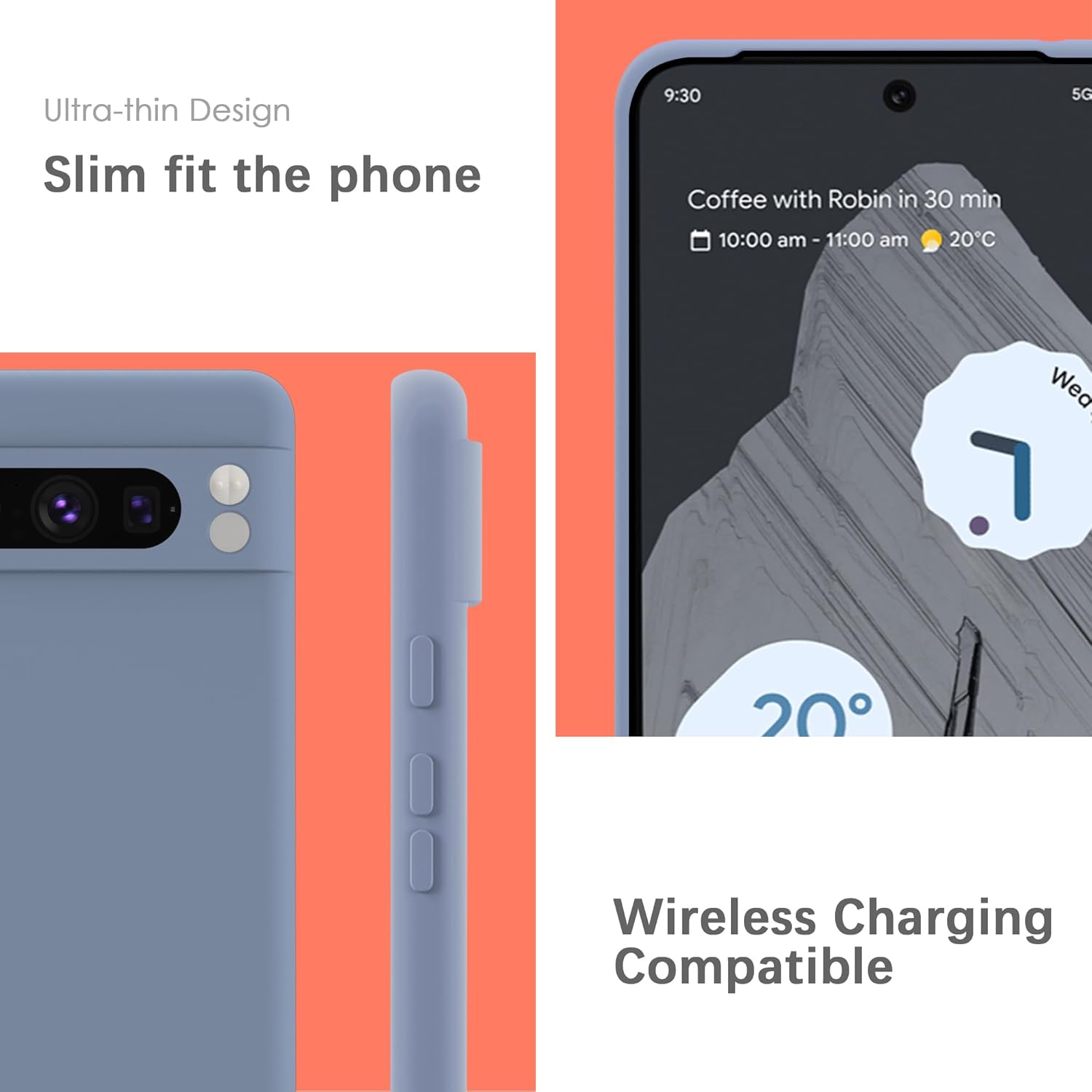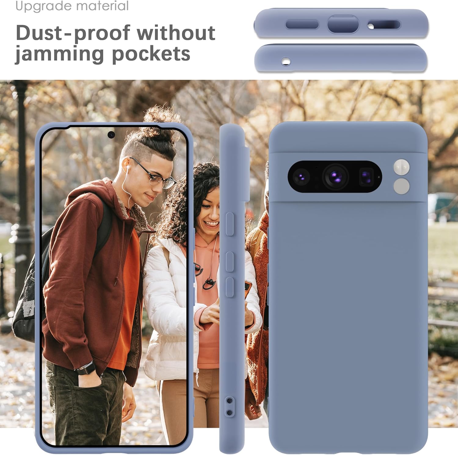 YATWIN Кейс за Google Pixel 8 Pro, Премиум силиконов калъф за мобилен телефон със защита на камерата, Копринен, Мек на допир, Ултра тънък, Удароустойчив, Устойчив на надраскване, Защитен калъф, Лавандулово сив