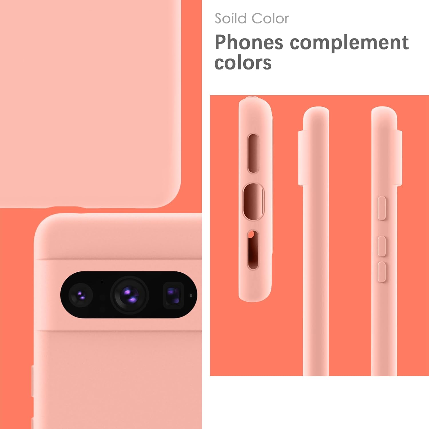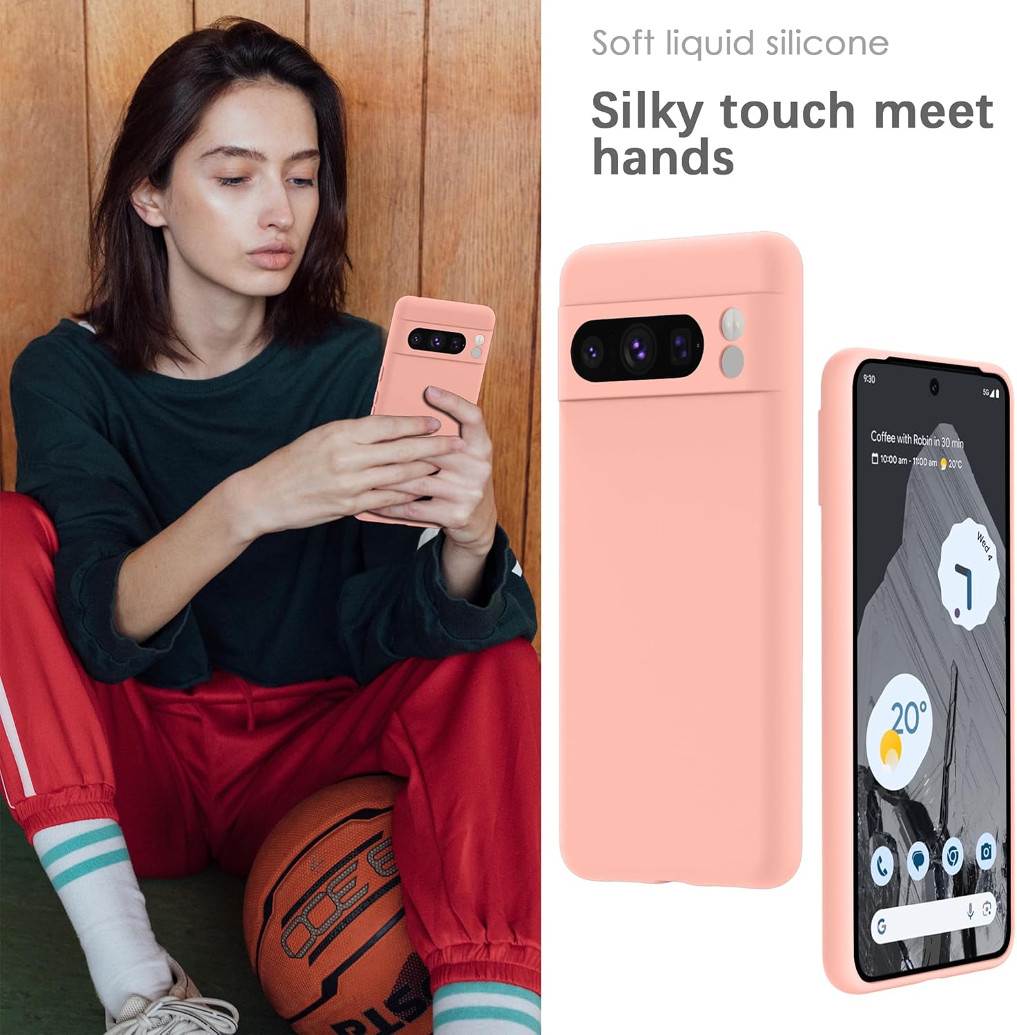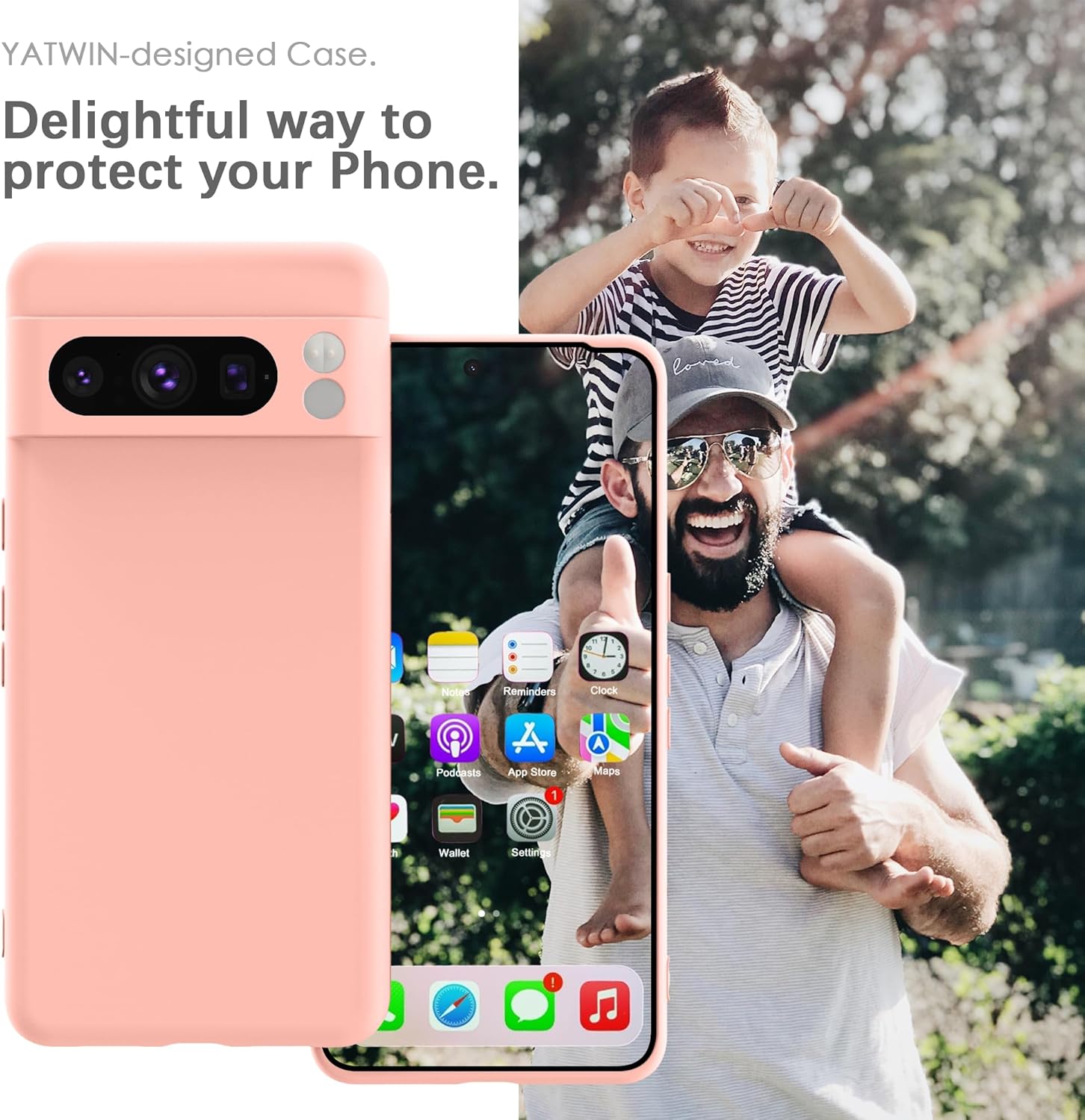 YATWIN Кейс за Google Pixel 8 Pro, Премиум силиконов калъф за мобилен телефон със защита на камерата, Копринен, Мек на допир, Ултра тънък, Удароустойчив, Устойчив на надраскване, Защитен калъф, Розов