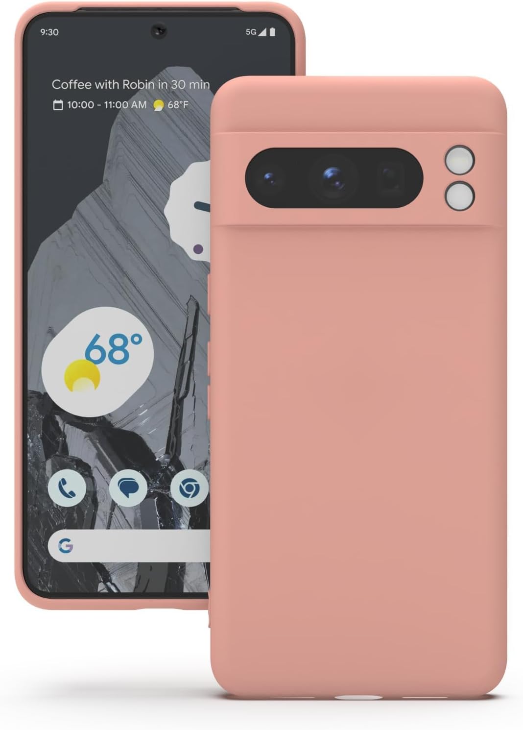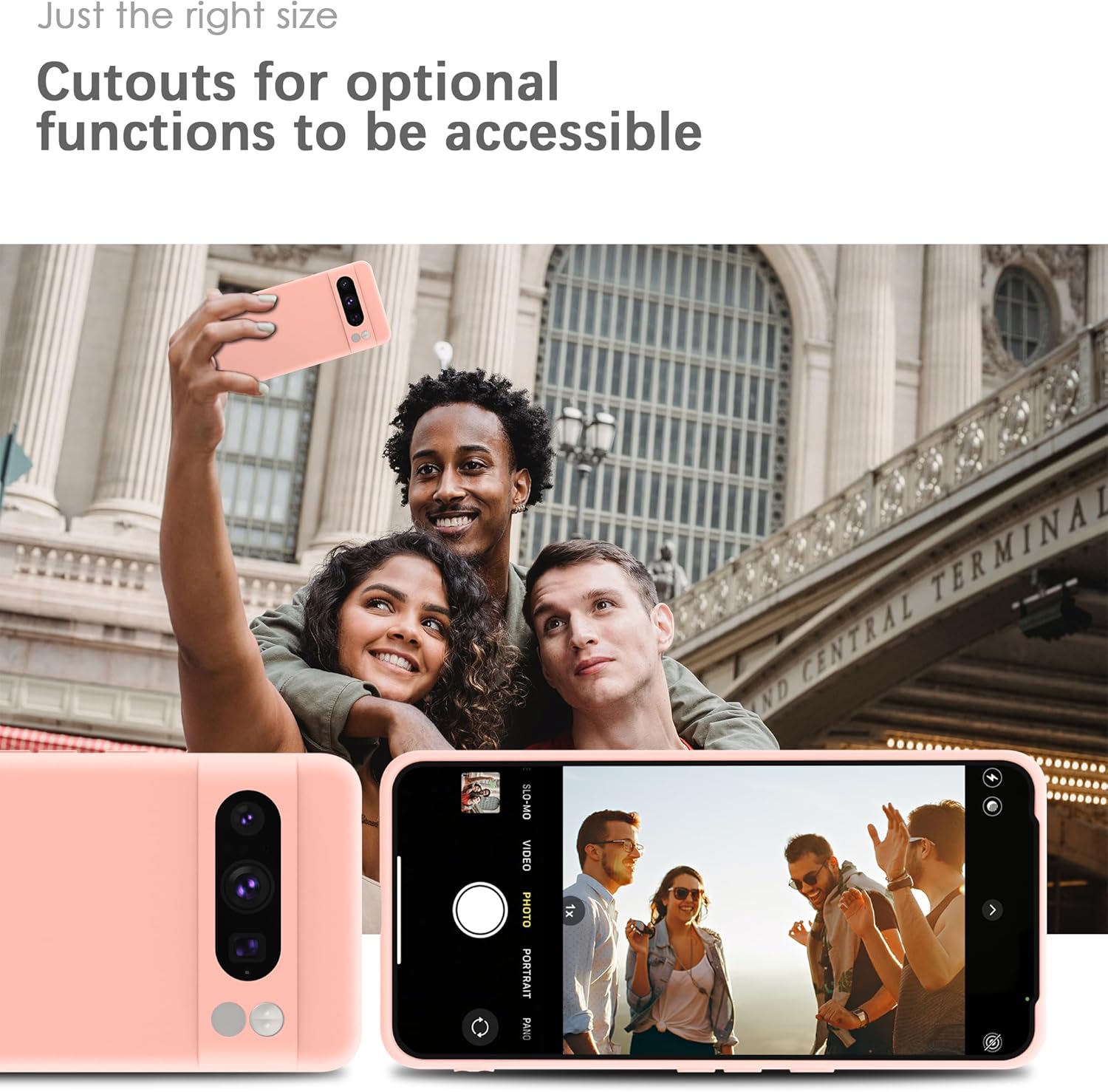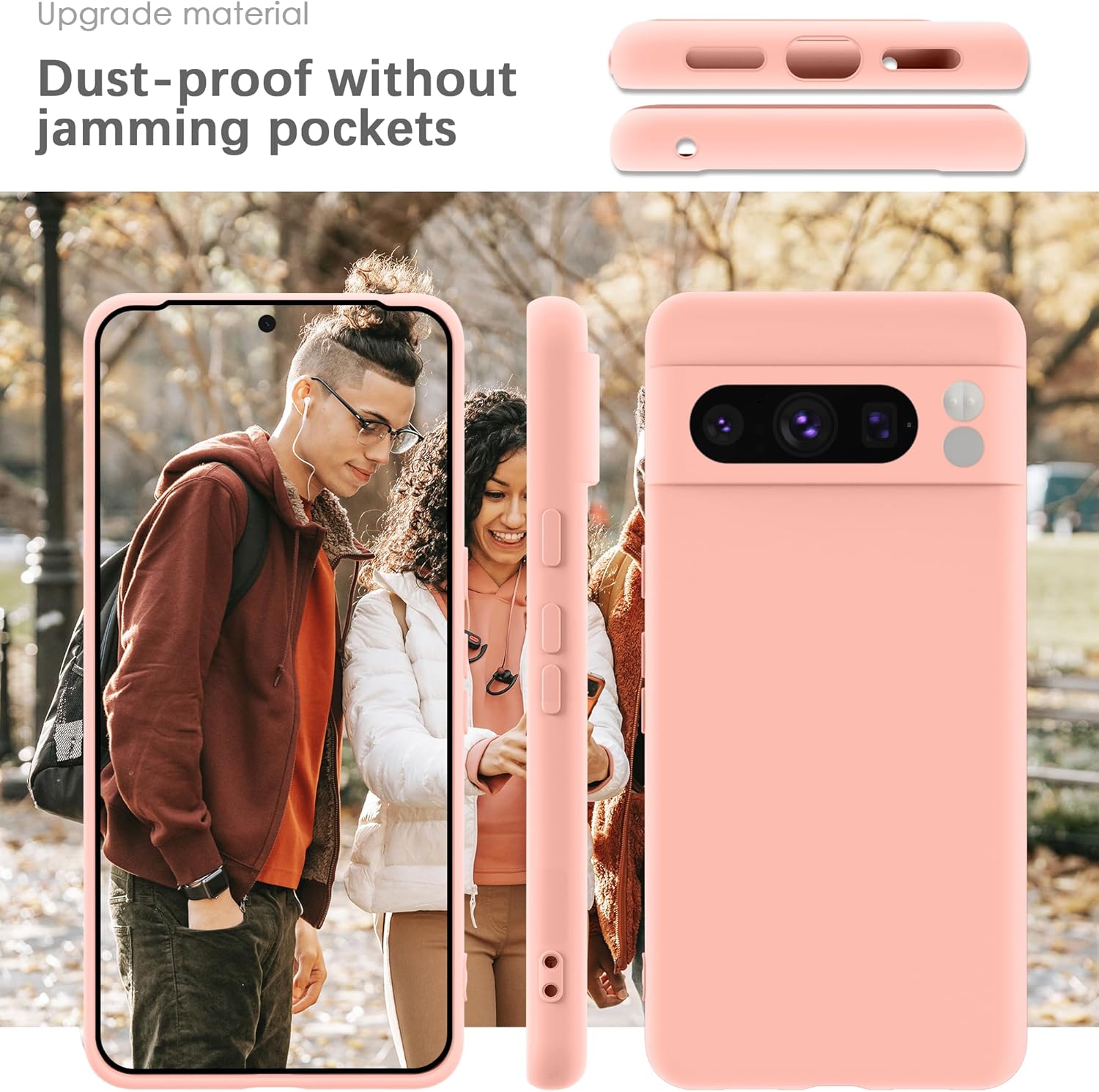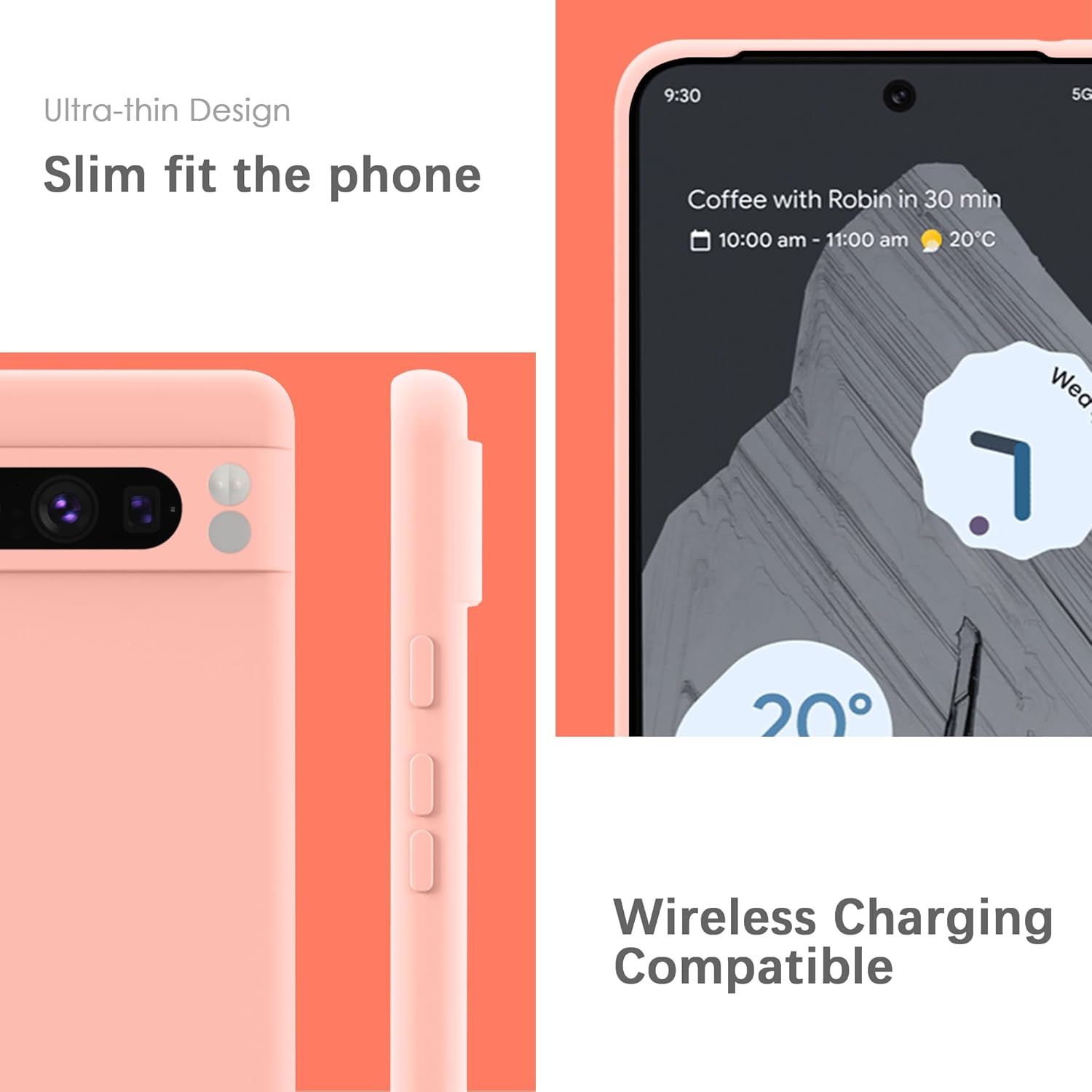 YATWIN Кейс за Google Pixel 8 Pro, Премиум силиконов калъф за мобилен телефон със защита на камерата, Копринен, Мек на допир, Ултра тънък, Удароустойчив, Устойчив на надраскване, Защитен калъф, Розов