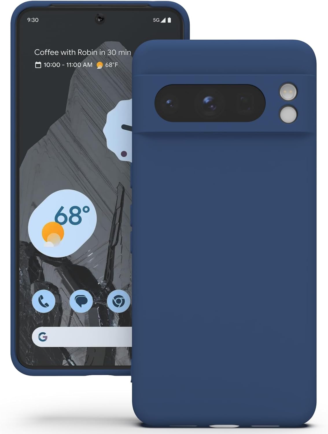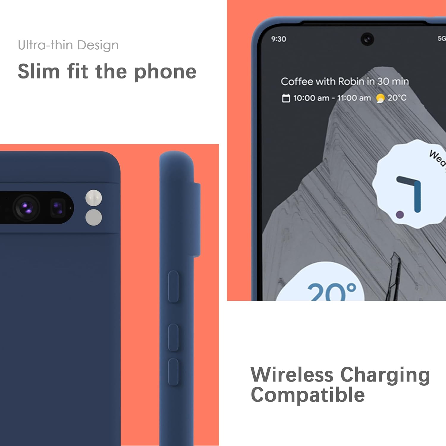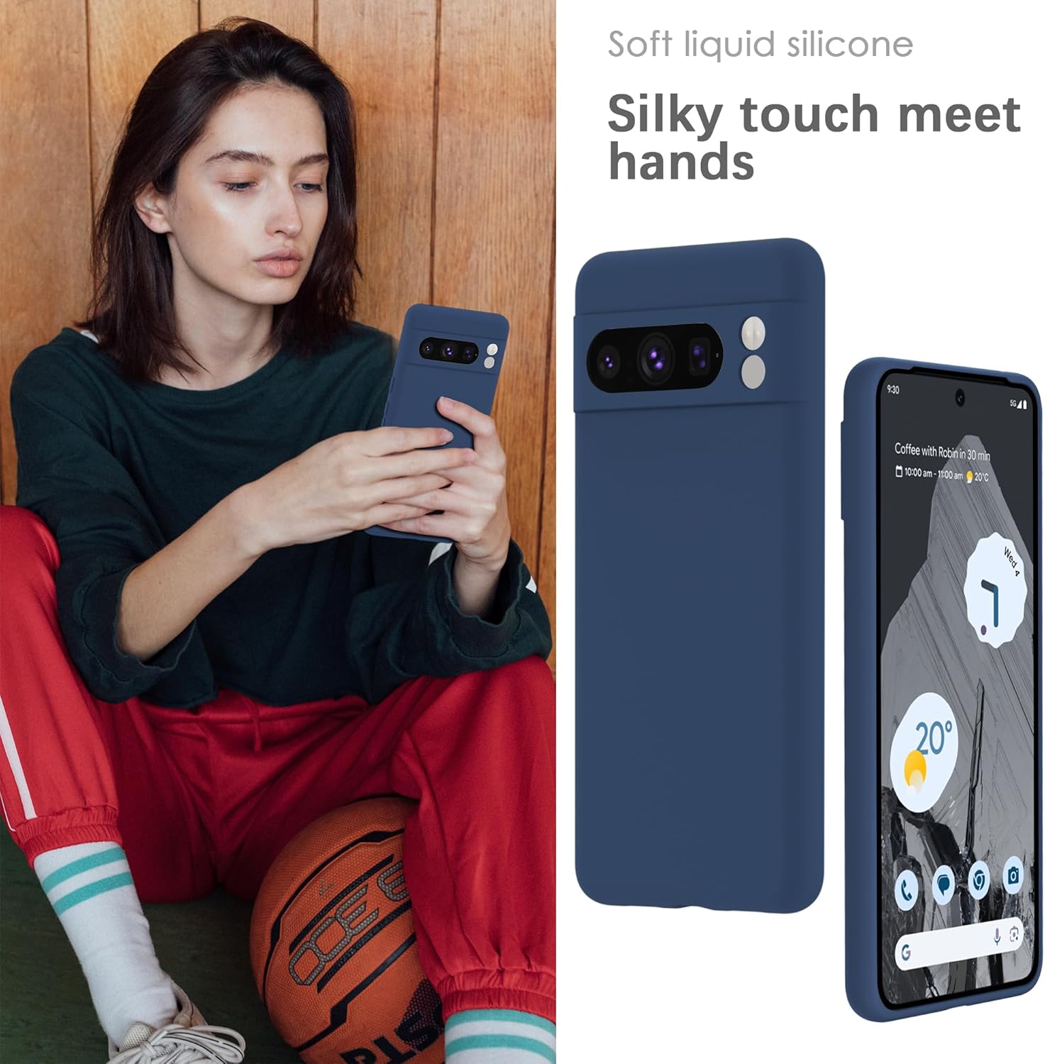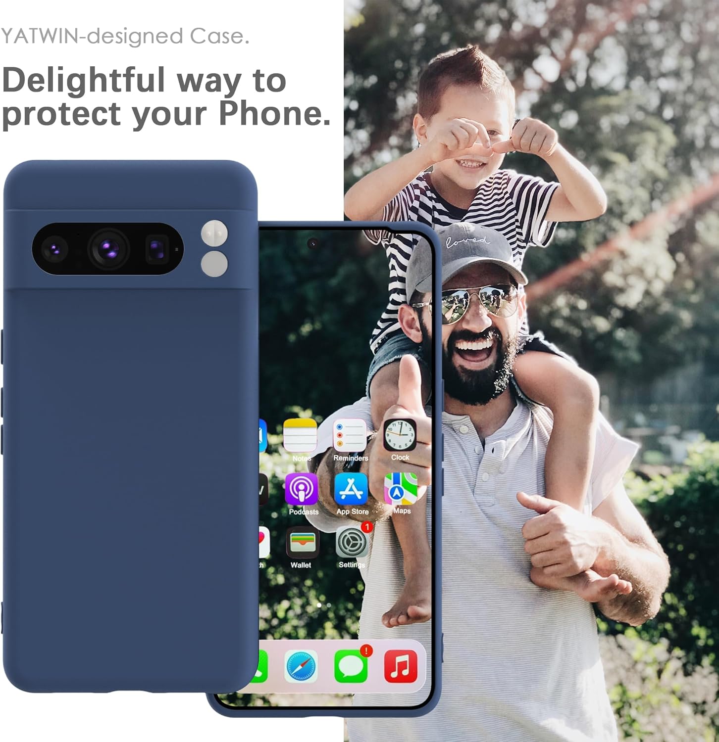 YATWIN Кейс за Google Pixel 8 Pro, Висококачествен силиконов калъф за мобилен телефон със защита на камерата, Копринен, Мек на допир, Ултра тънък, Удароустойчив, Устойчив на надраскване, Защитен калъф, Син