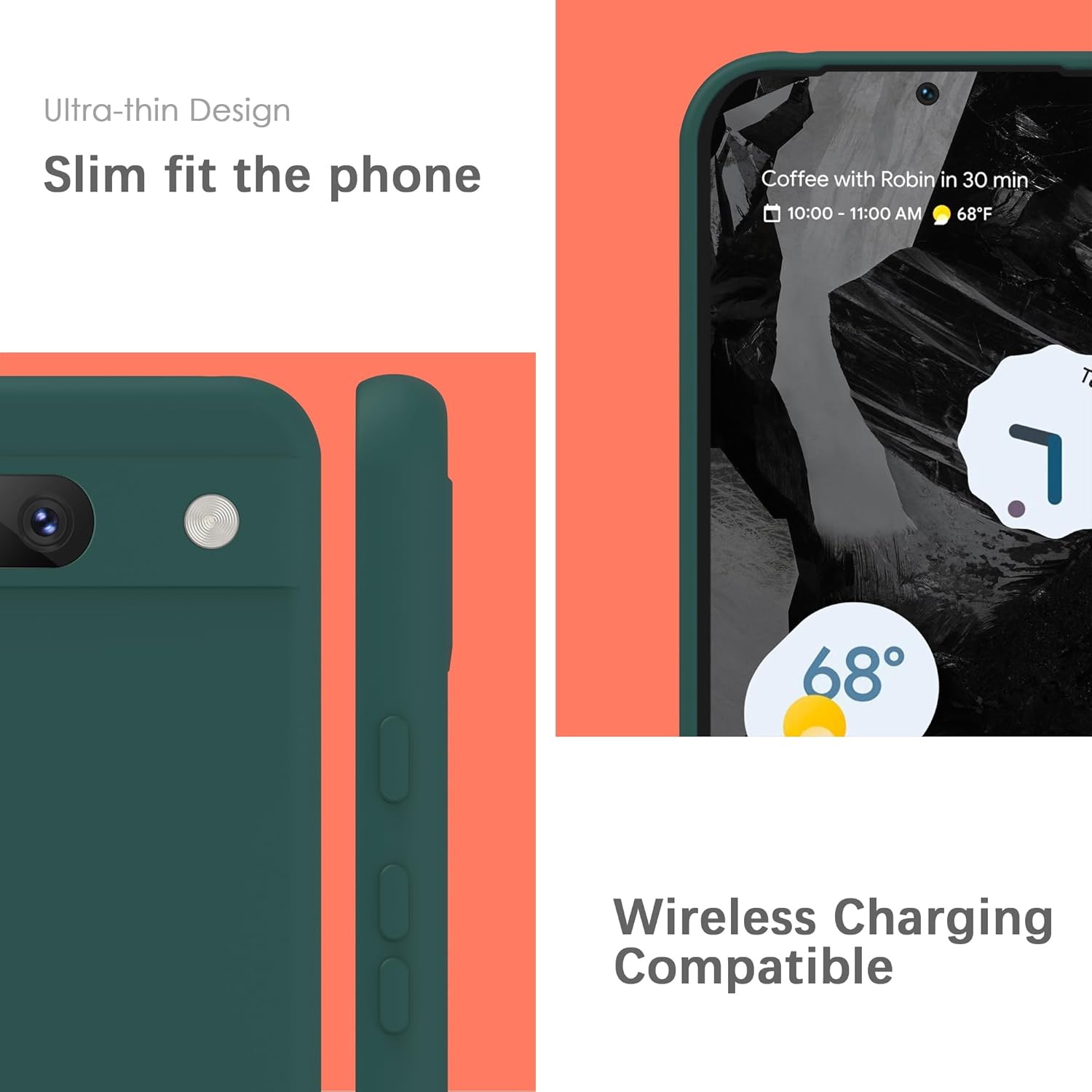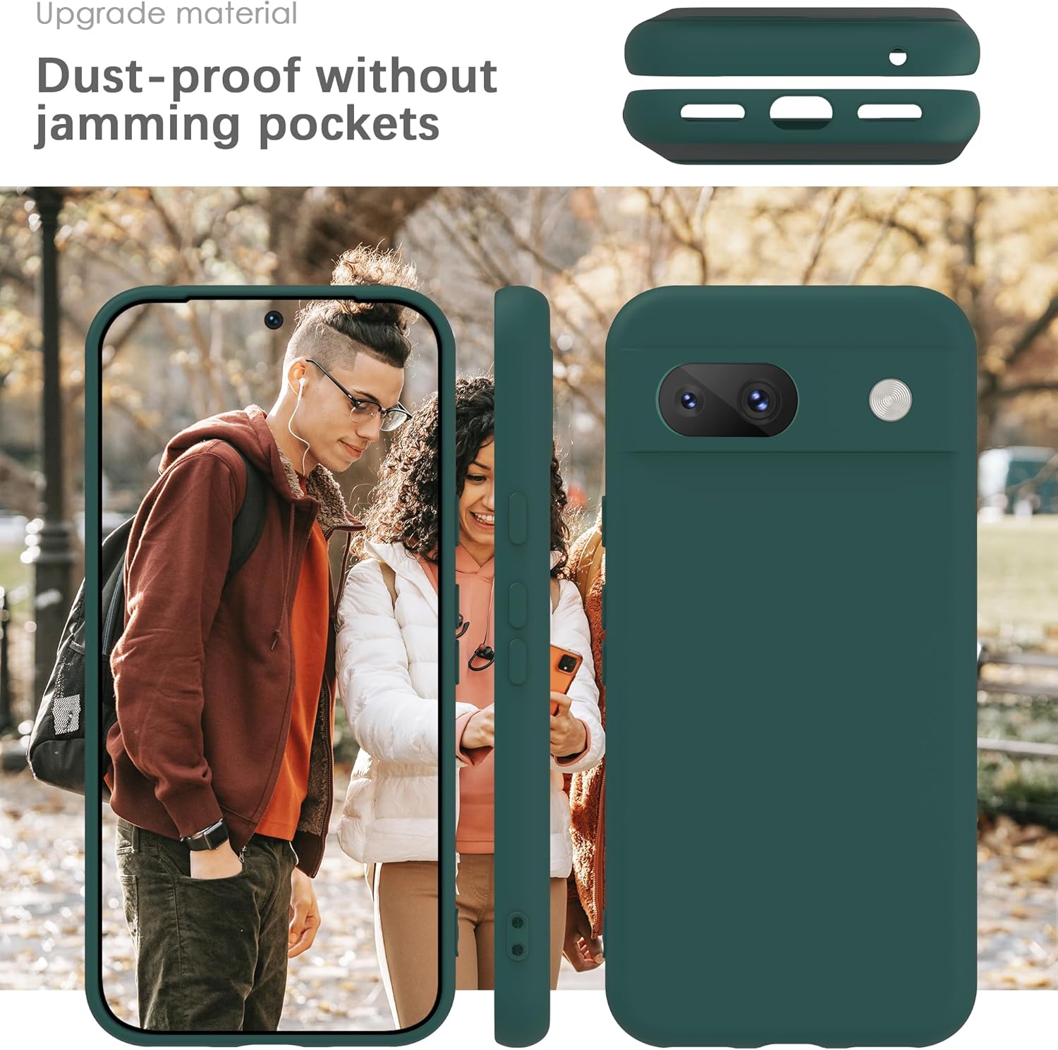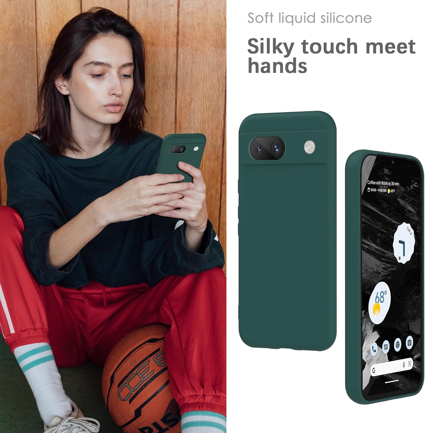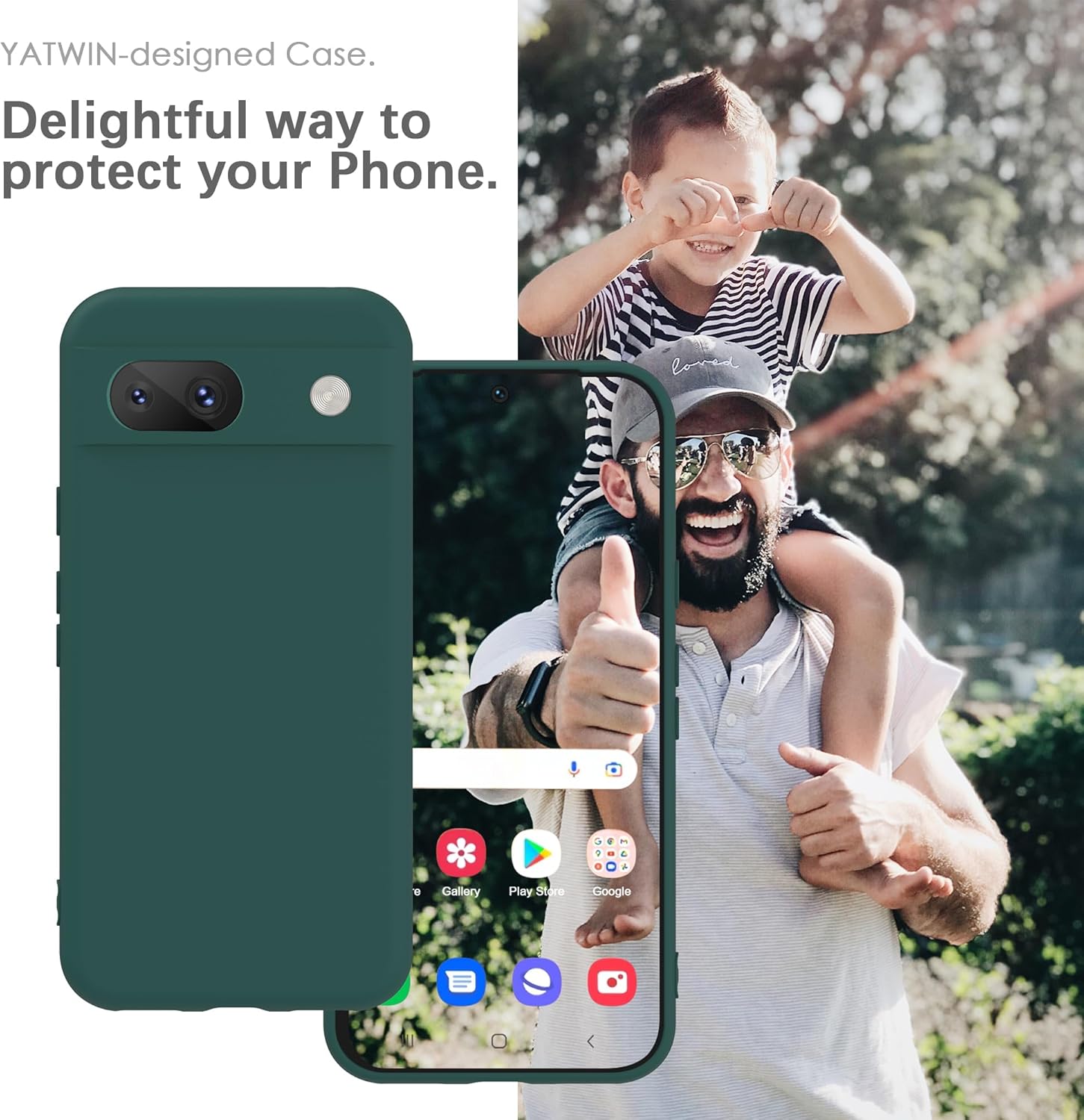 YATWIN Кейс за Google Pixel 8A, Премиум силиконов калъф за мобилен телефон със защита на камерата, Копринен, Мек на допир, Ултра тънък, Удароустойчив, Устойчив на надраскване, Защитен калъф, Зелен