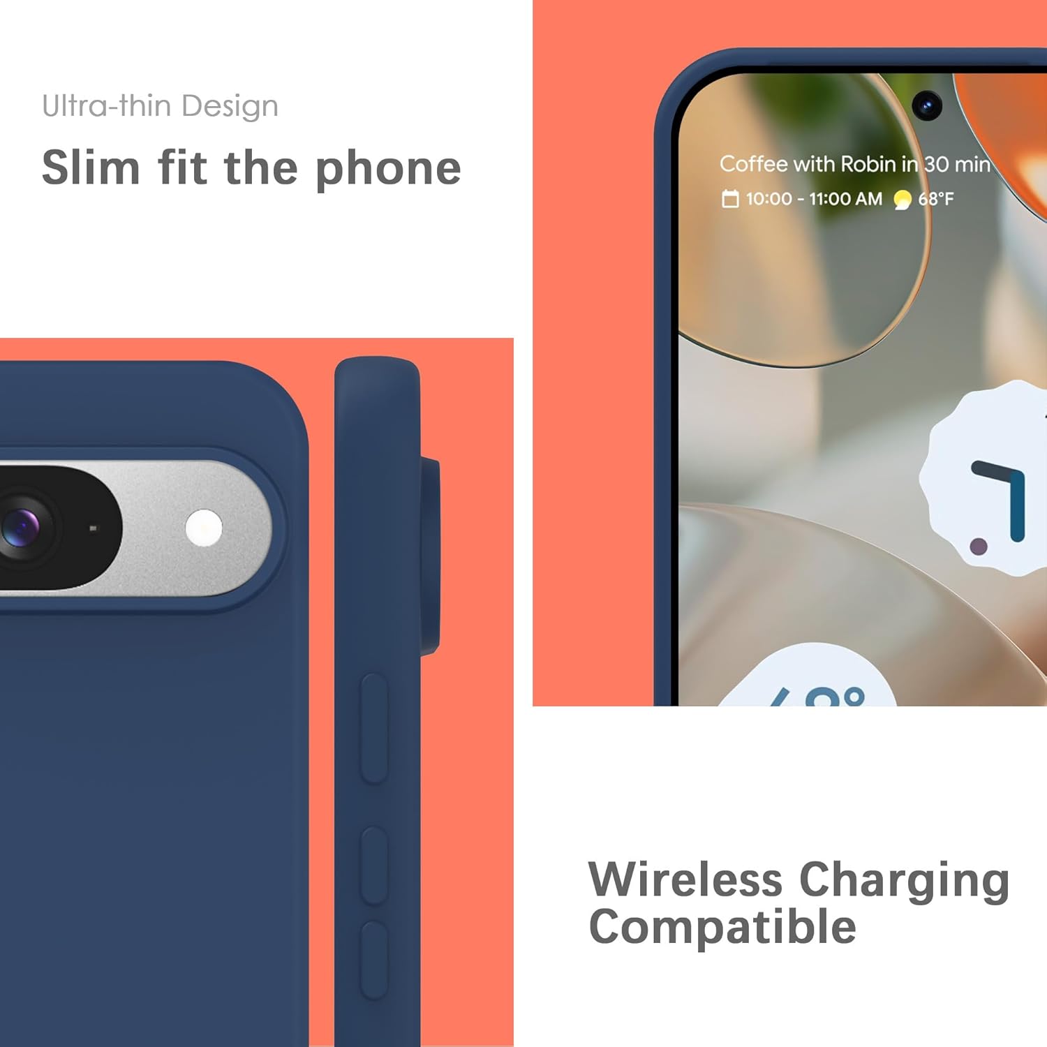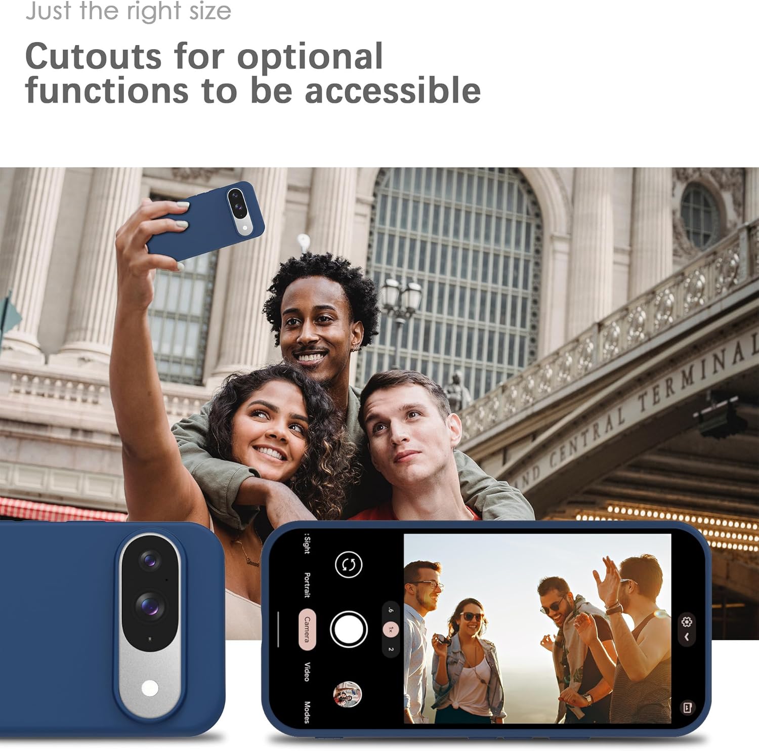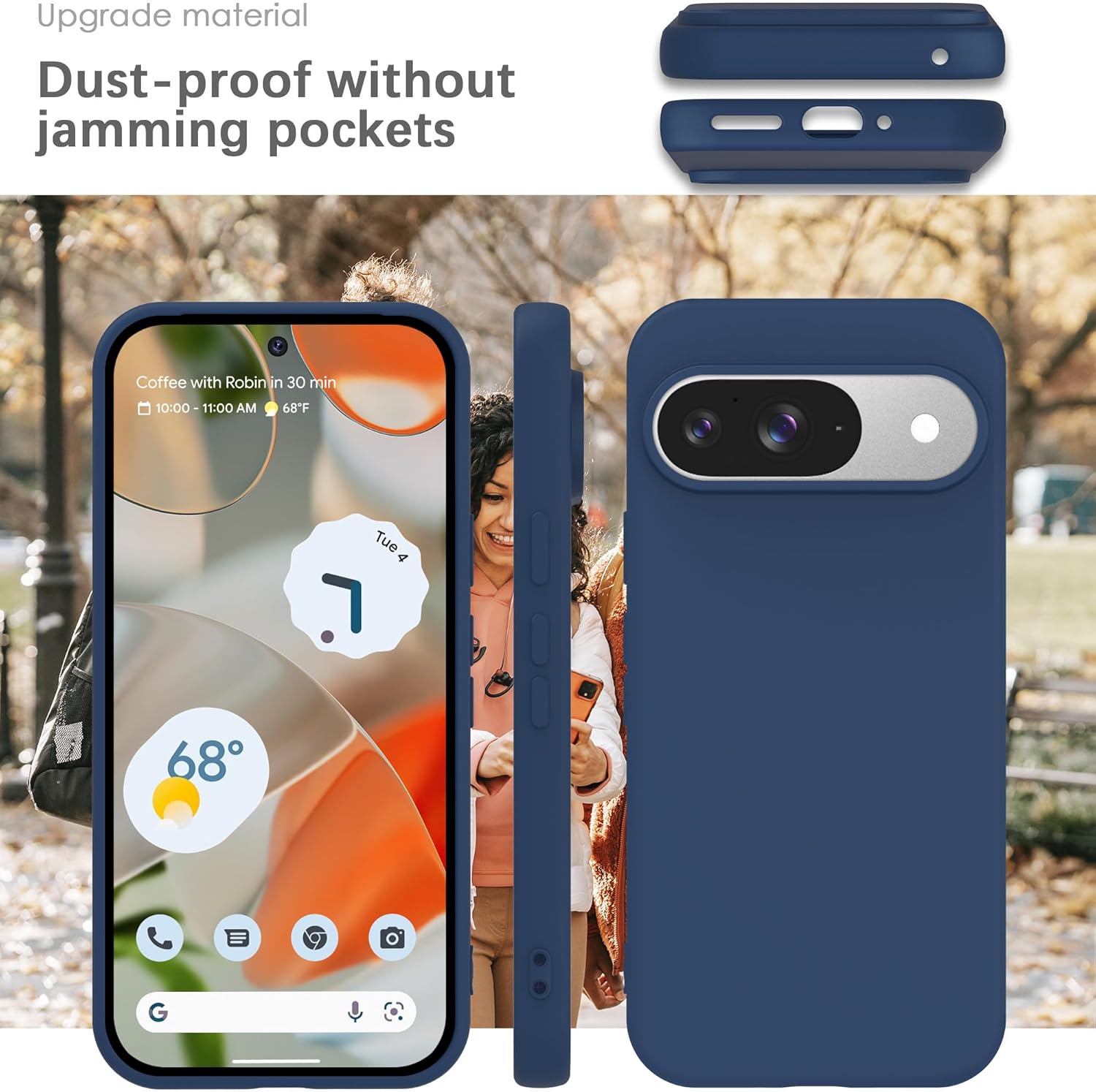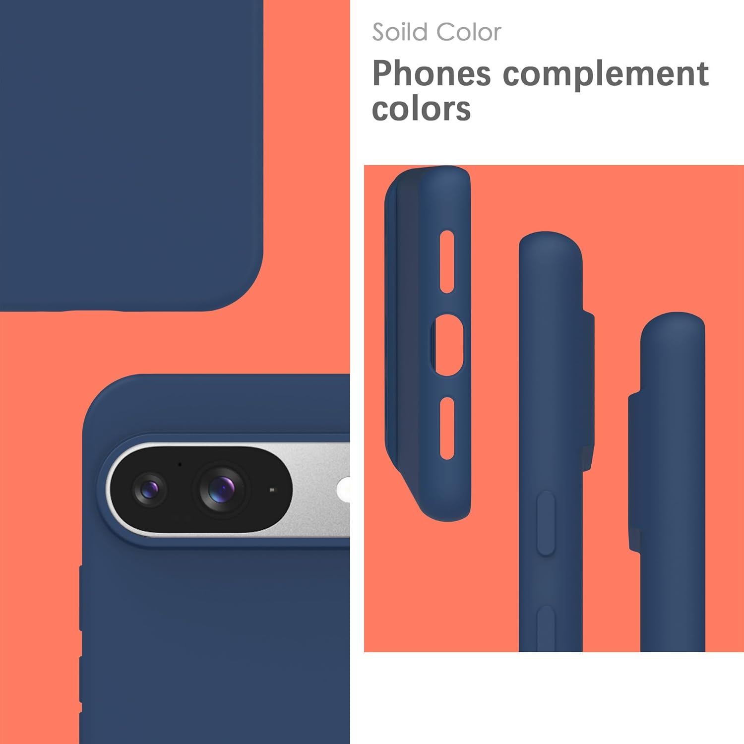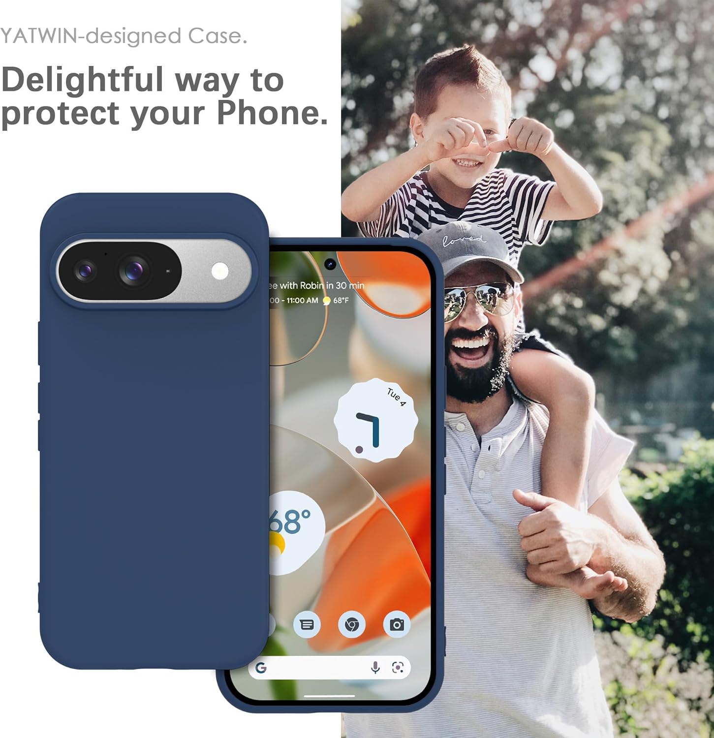 YATWIN Кейс за Google Pixel 9, Кейс за Google Pixel 9 Pro, Премиум силиконов кейс за мобилен телефон със защита на камерата, Копринен, Мек на допир, Ултра тънък, Удароустойчив, Устойчив на надраскване, Защитен кейс, Син