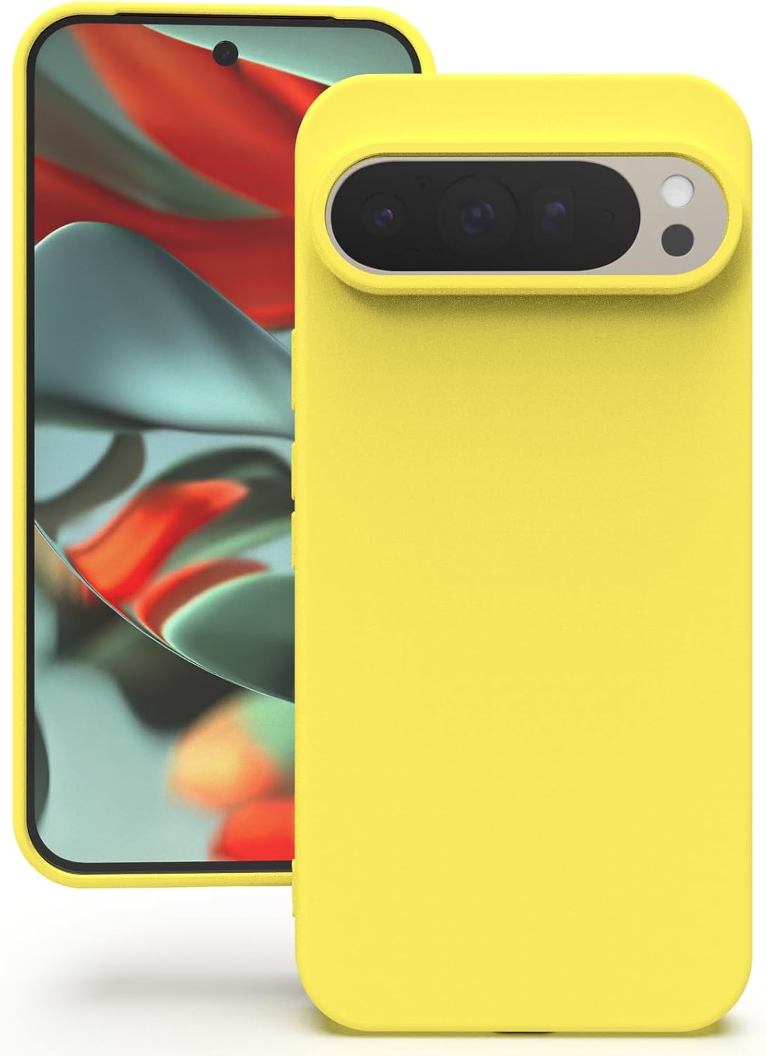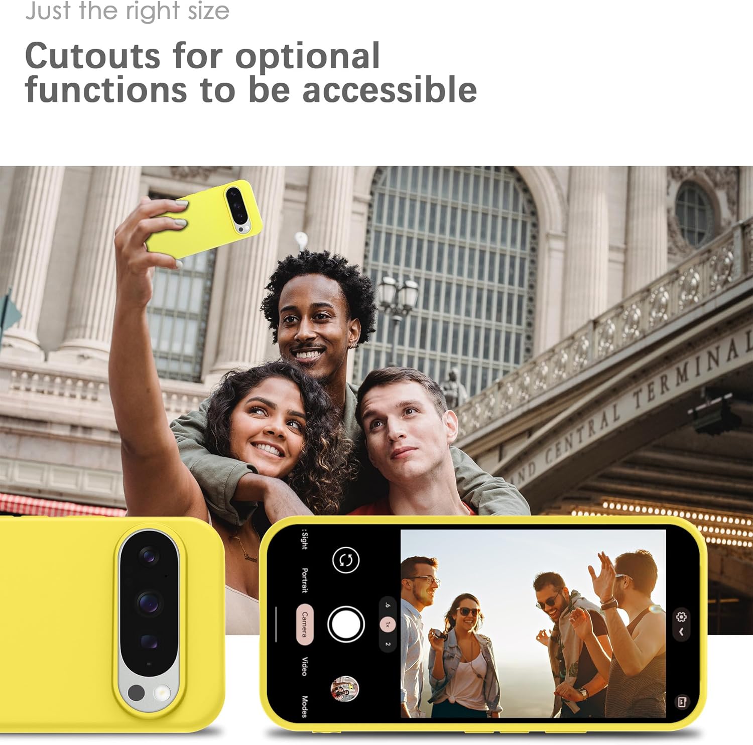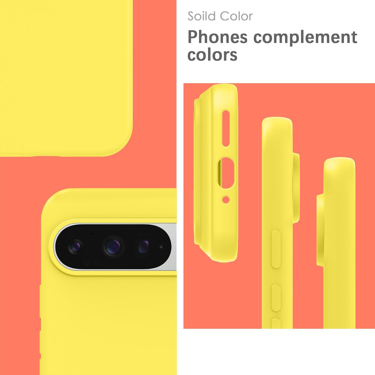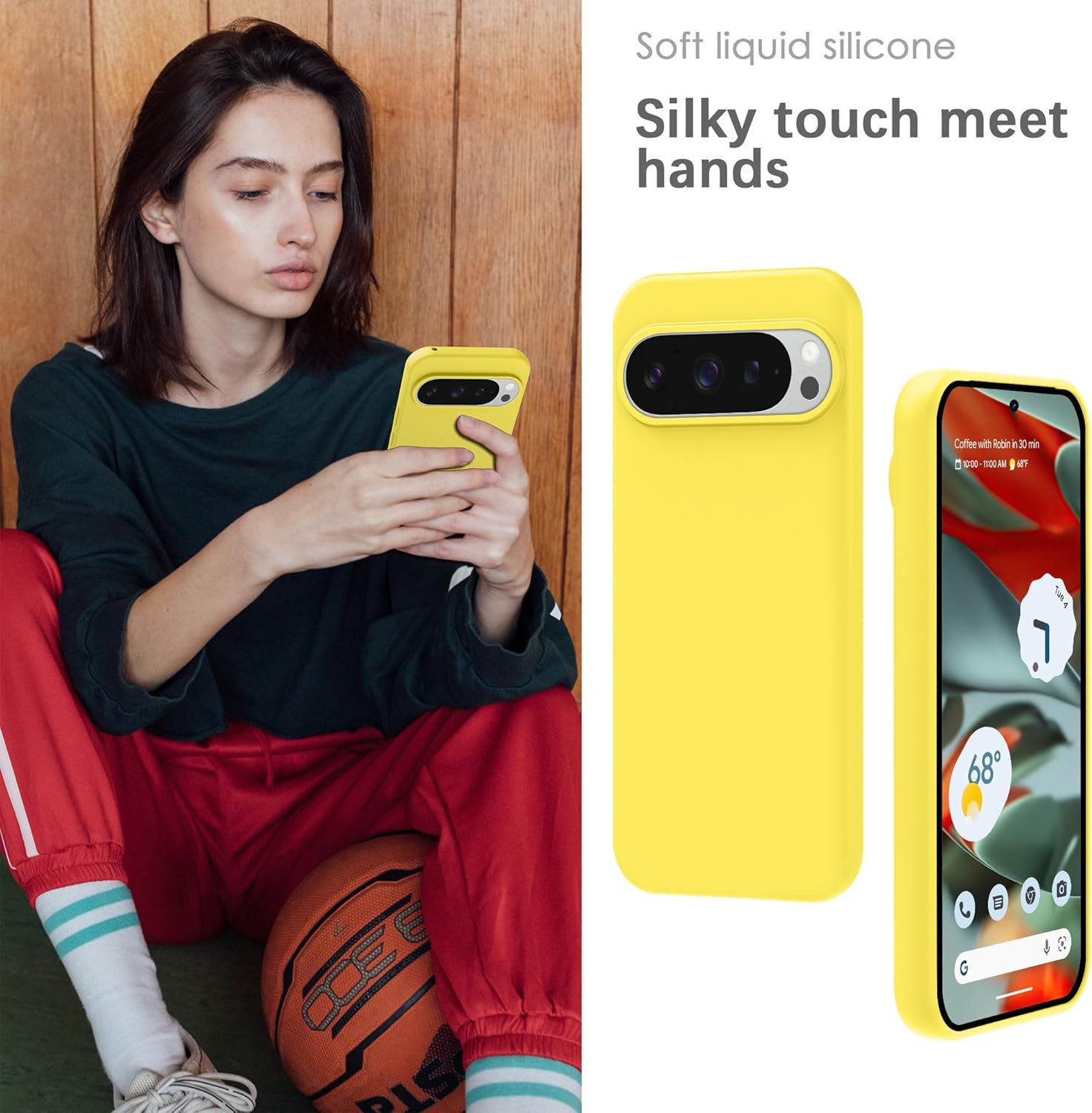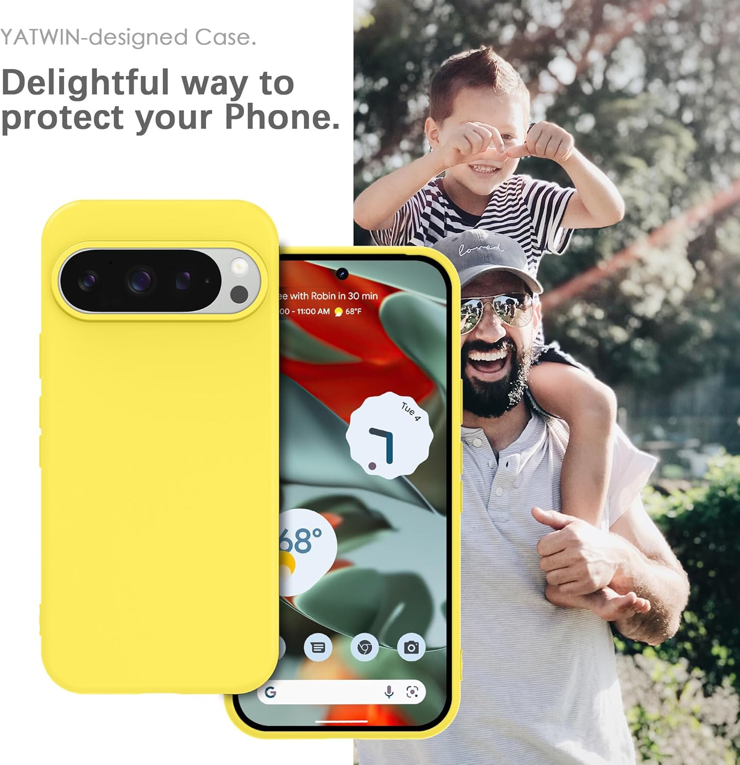 YATWIN Кейс за Google Pixel 9 Pro XL, Премиум силиконов калъф за мобилен телефон със защита на камерата, Копринен, Мек на допир, Ултра тънък, Удароустойчив, Устойчив на надраскване, Защитен калъф, Жълт