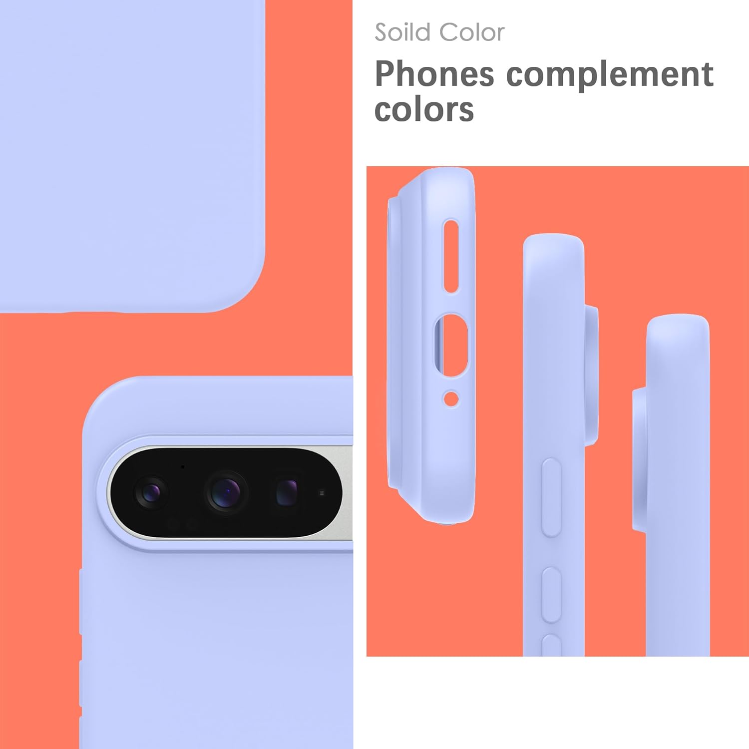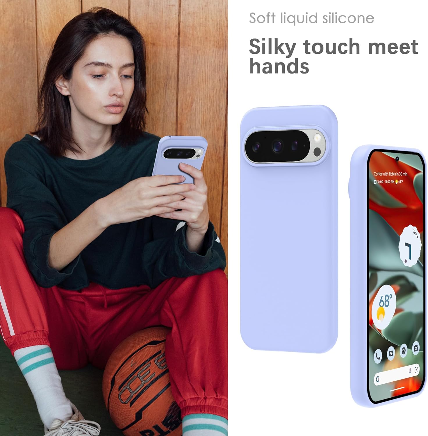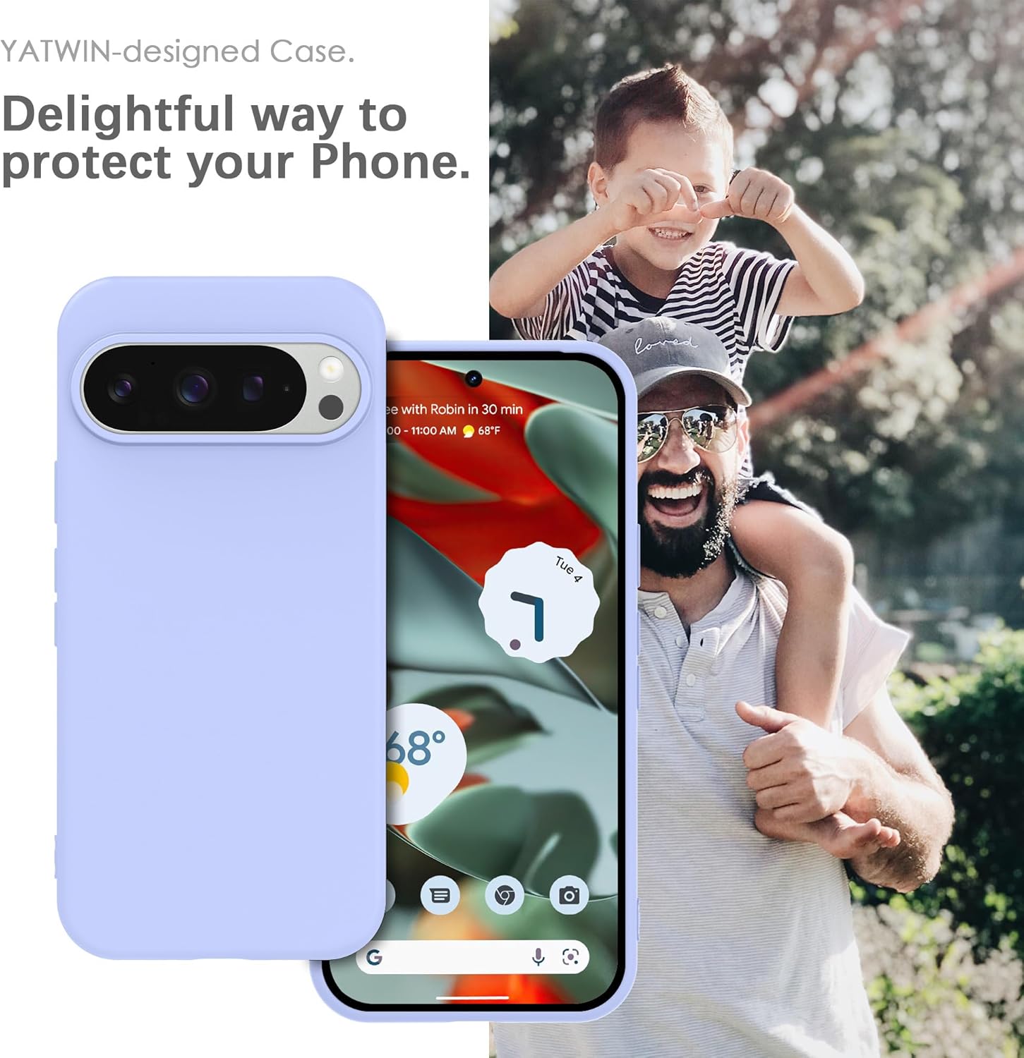 YATWIN Кейс за Google Pixel 9 Pro XL, Премиум силиконов калъф за мобилен телефон със защита на камерата, Копринен, Мек на допир, Ултра тънък, Удароустойчив, Устойчив на надраскване, Защитен калъф, Лилав