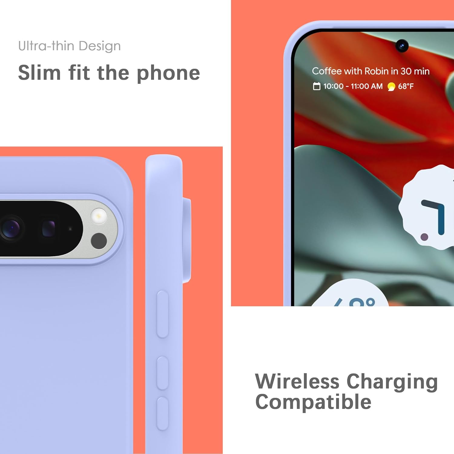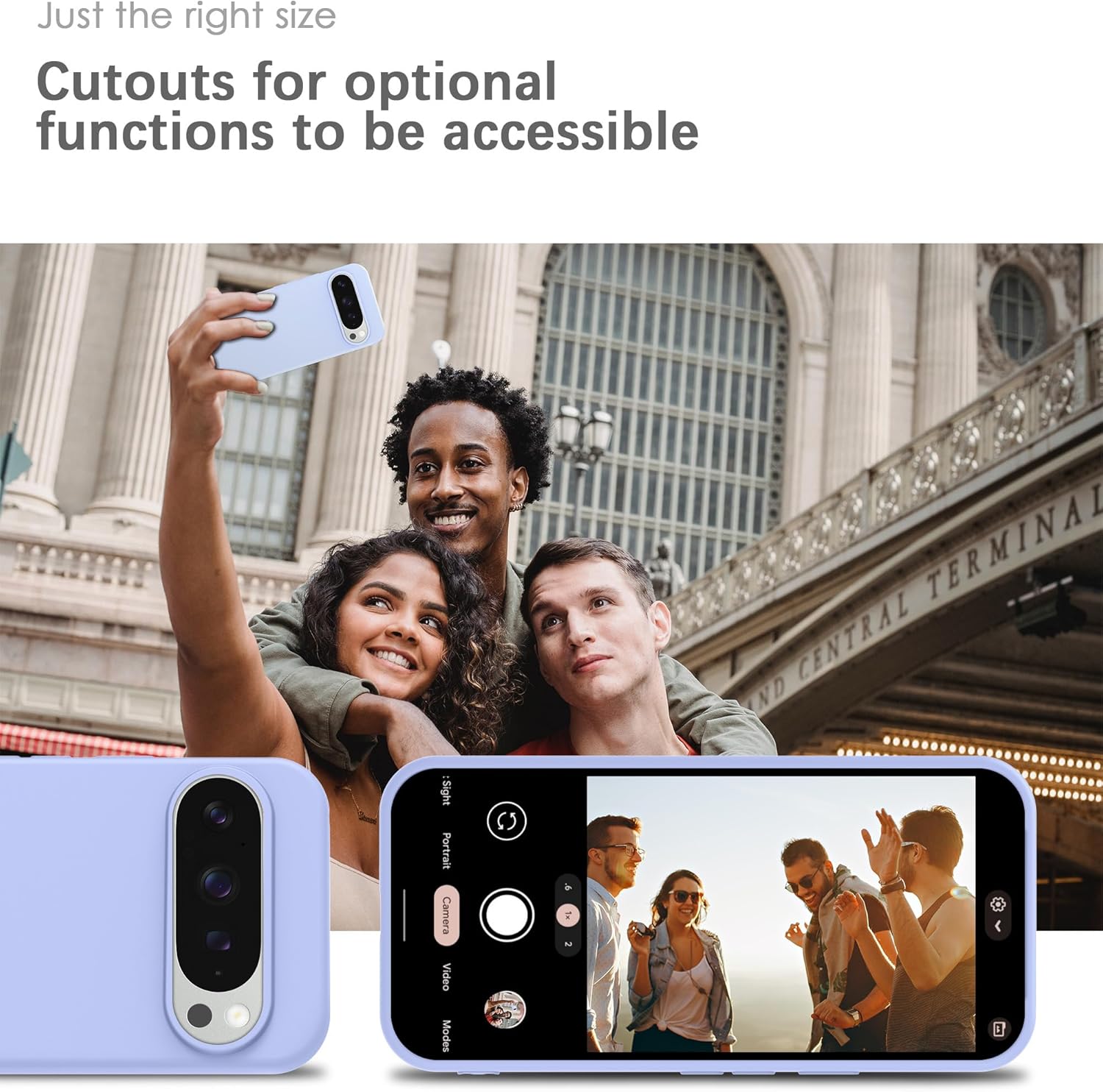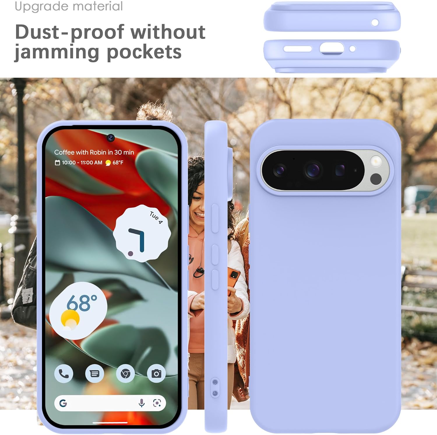 YATWIN Кейс за Google Pixel 9 Pro XL, Премиум силиконов калъф за мобилен телефон със защита на камерата, Копринен, Мек на допир, Ултра тънък, Удароустойчив, Устойчив на надраскване, Защитен калъф, Лилав