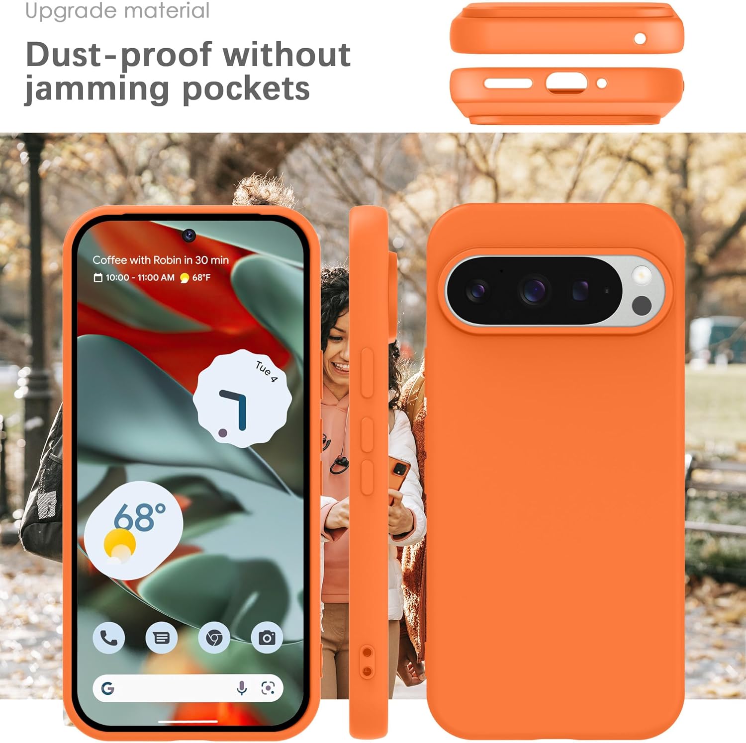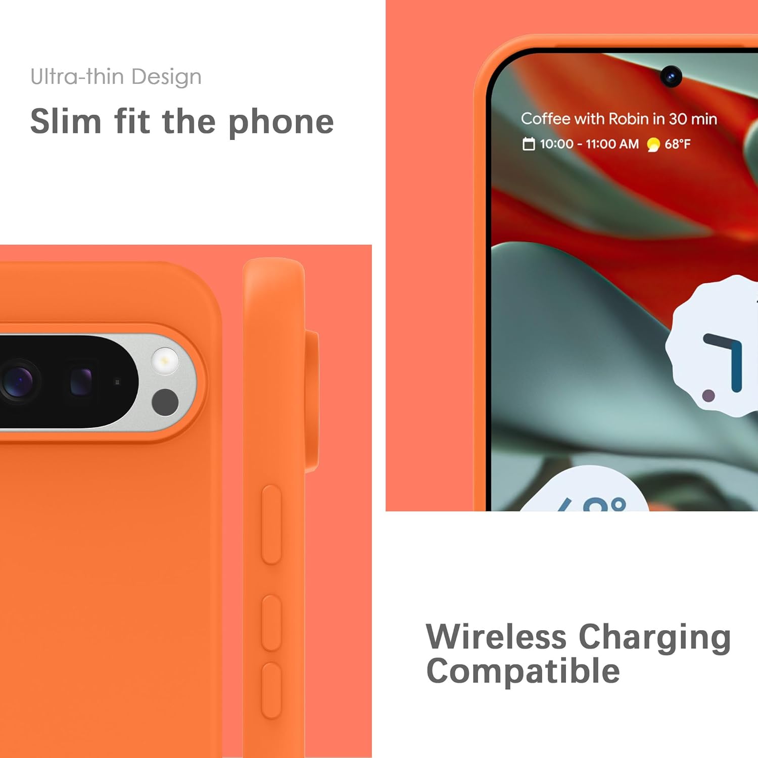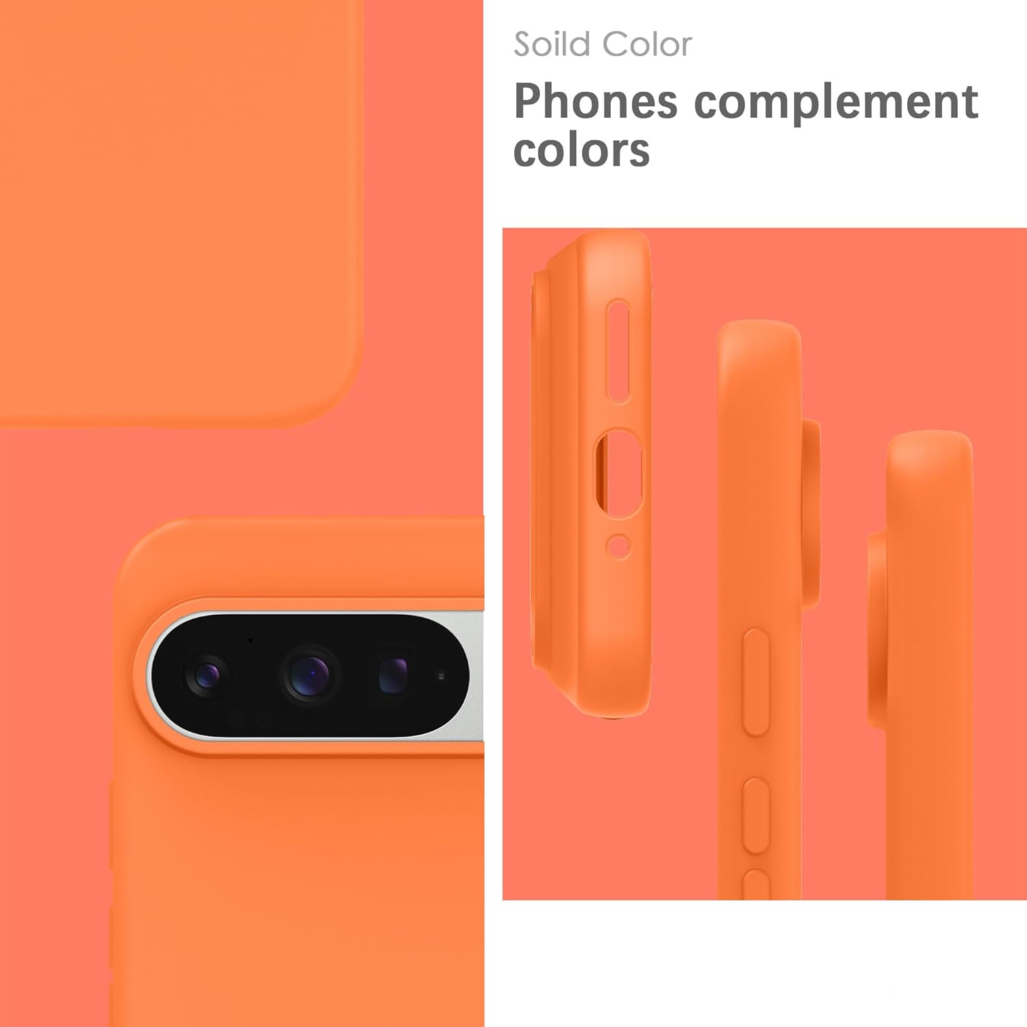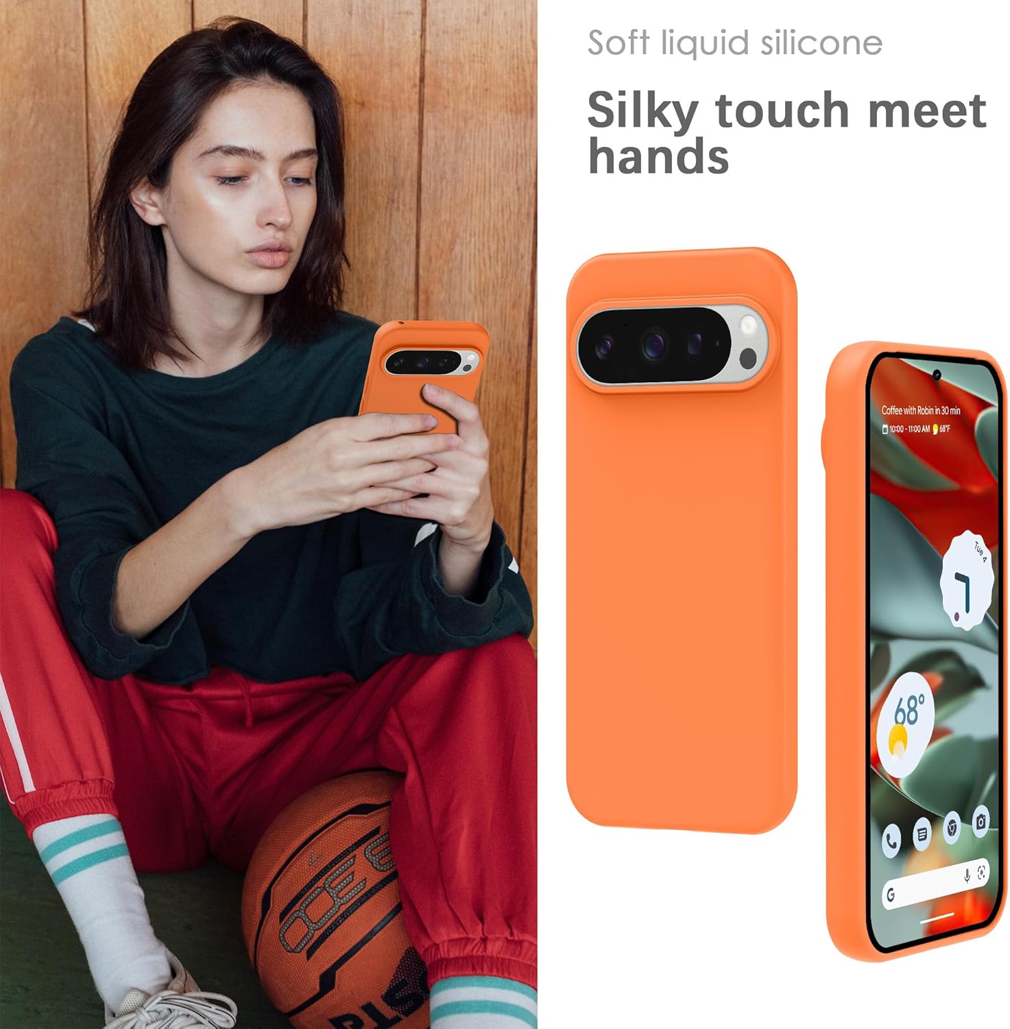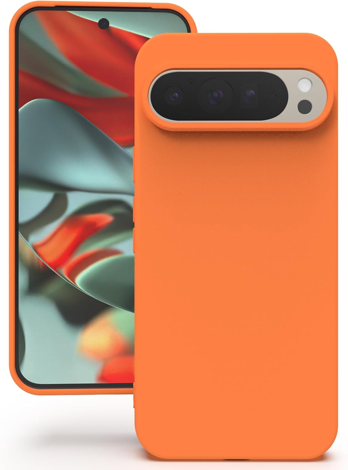 YATWIN Кейс за Google Pixel 9 Pro XL, Премиум силиконов калъф за мобилен телефон със защита на камерата, Копринен, Мек на допир, Ултра тънък, Удароустойчив, Устойчив на надраскване, Защитен калъф, Оранжев