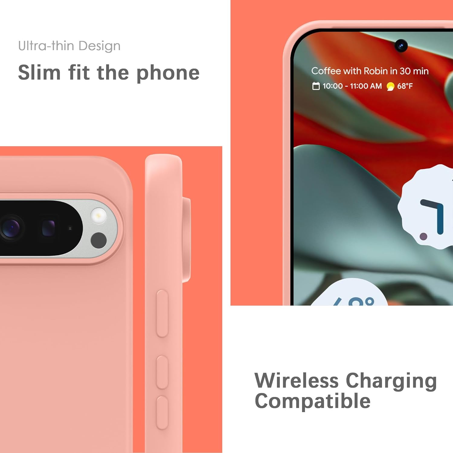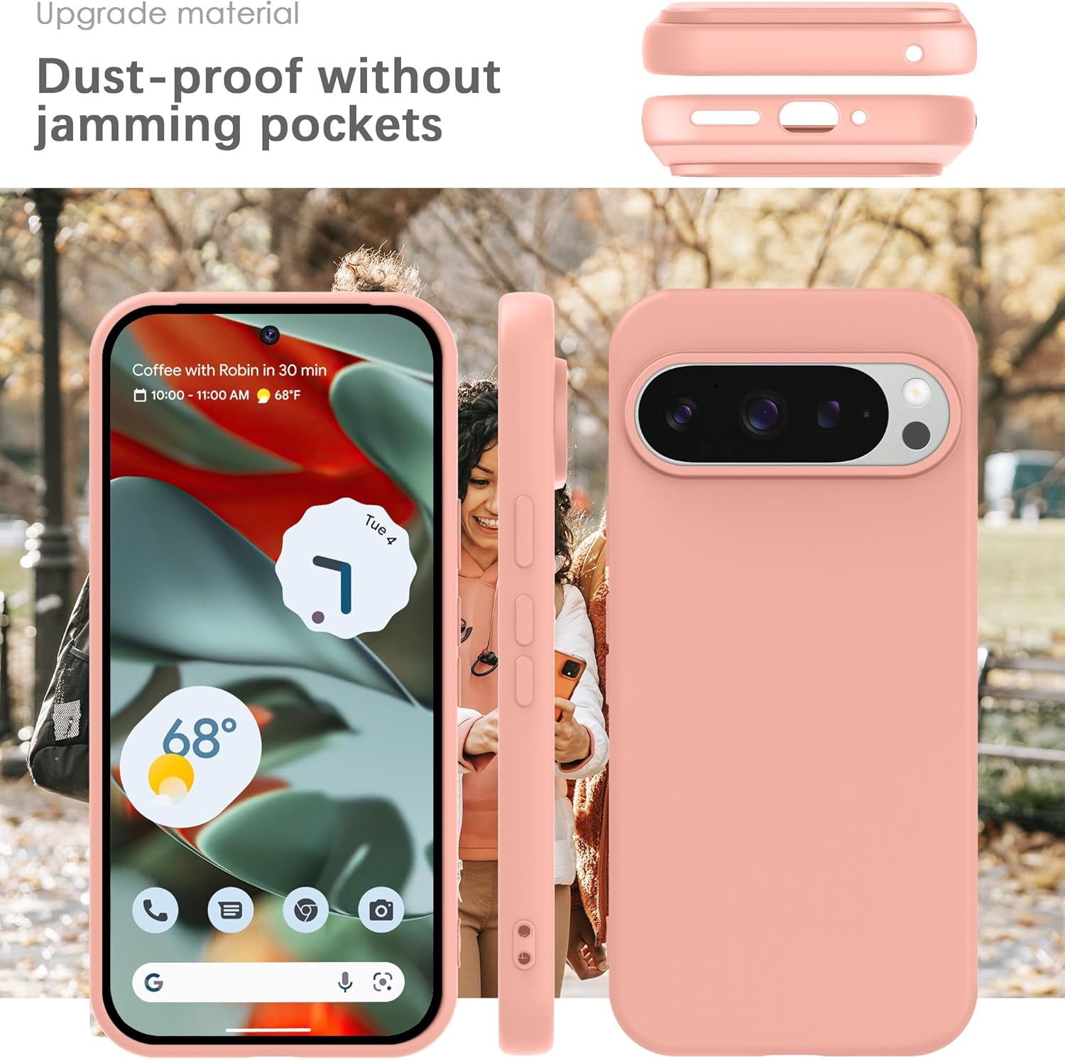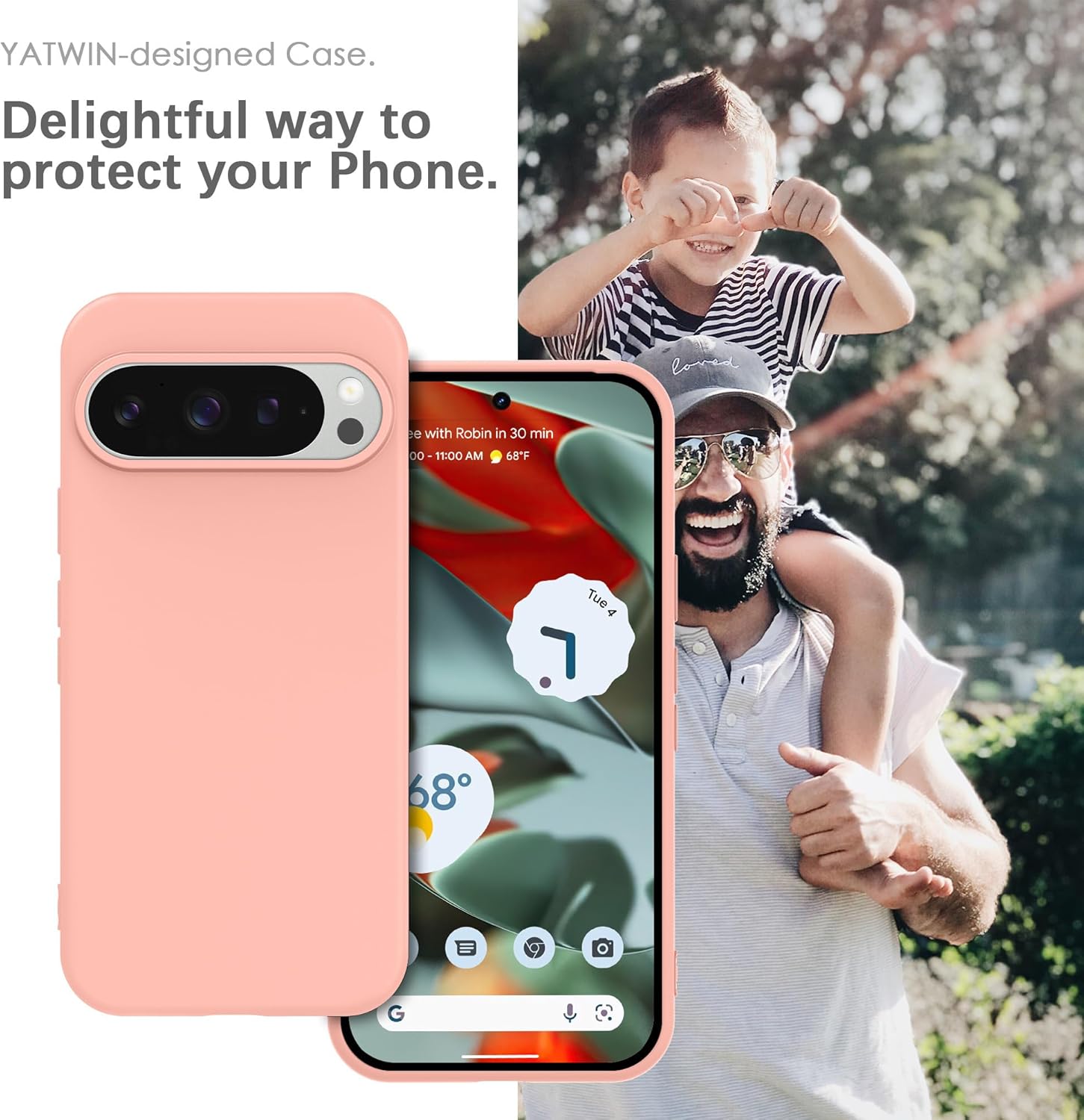 YATWIN Кейс за Google Pixel 9 Pro XL, Премиум силиконов калъф за мобилен телефон със защита на камерата, Копринен, Мек на допир, Ултра тънък, Удароустойчив, Устойчив на надраскване, Защитен калъф, Розов
