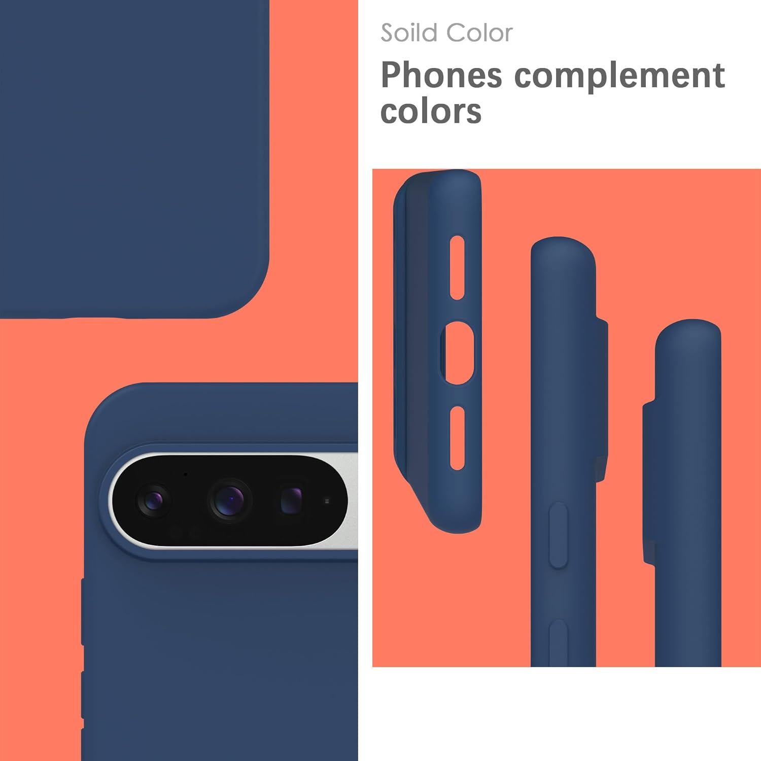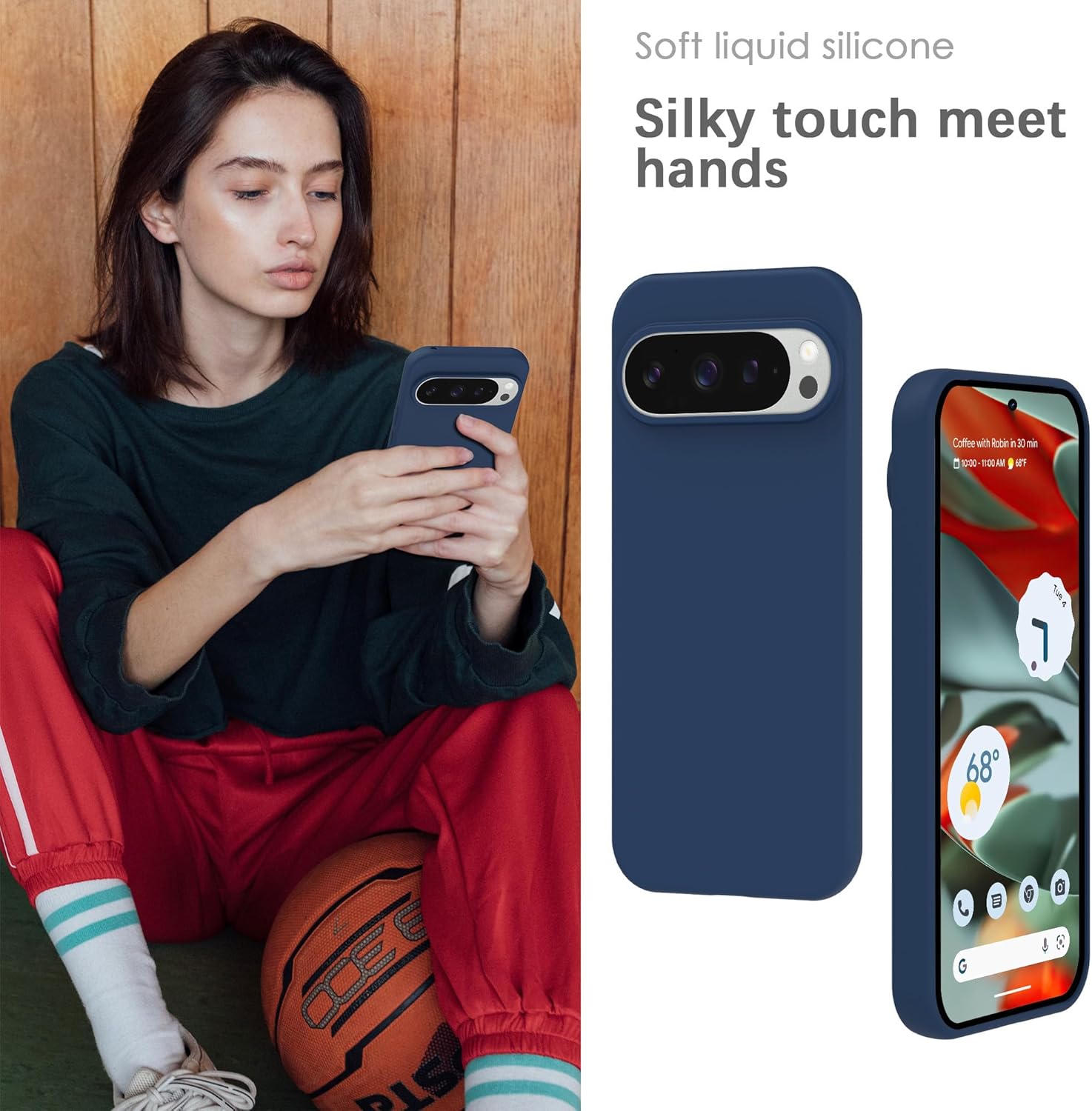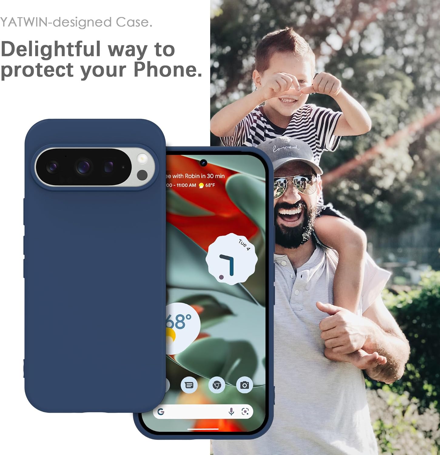 YATWIN Кейс за Google Pixel 9 Pro XL, Премиум силиконов калъф за мобилен телефон със защита на камерата, Копринен, Мек на допир, Ултра тънък, Удароустойчив, Устойчив на надраскване, Защитен калъф, Син