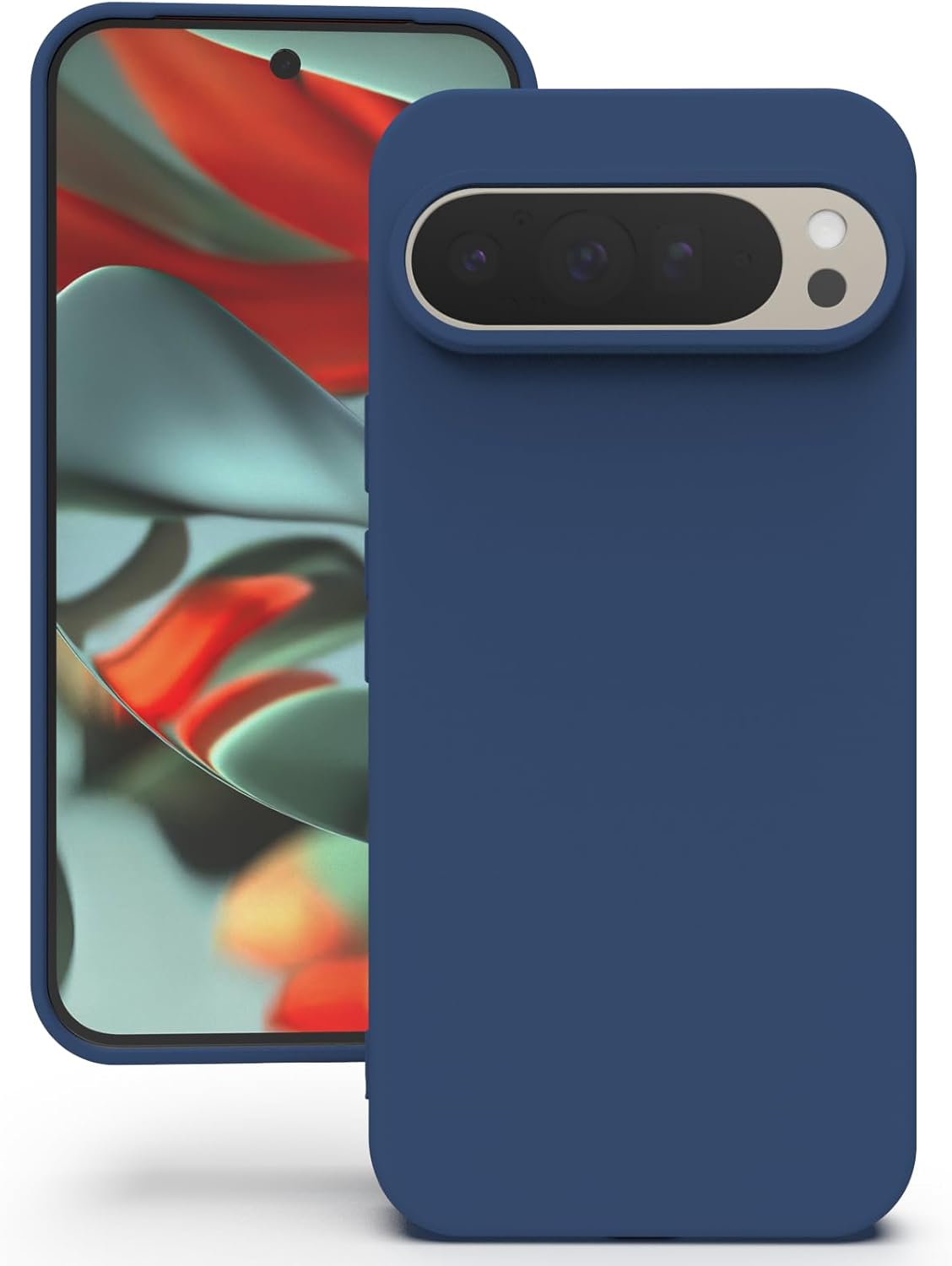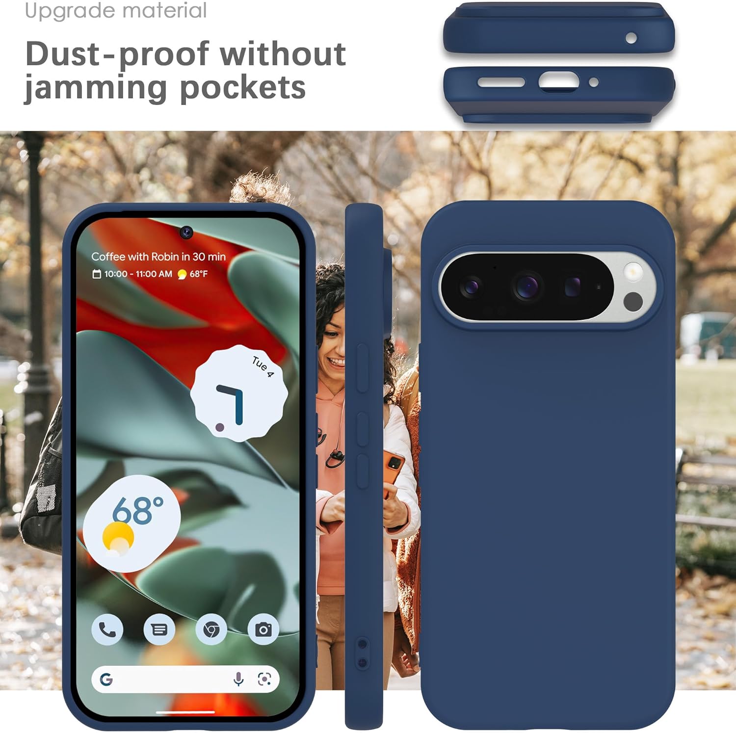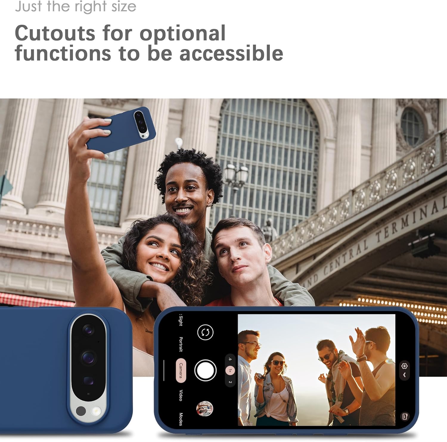 YATWIN Кейс за Google Pixel 9 Pro XL, Премиум силиконов калъф за мобилен телефон със защита на камерата, Копринен, Мек на допир, Ултра тънък, Удароустойчив, Устойчив на надраскване, Защитен калъф, Син