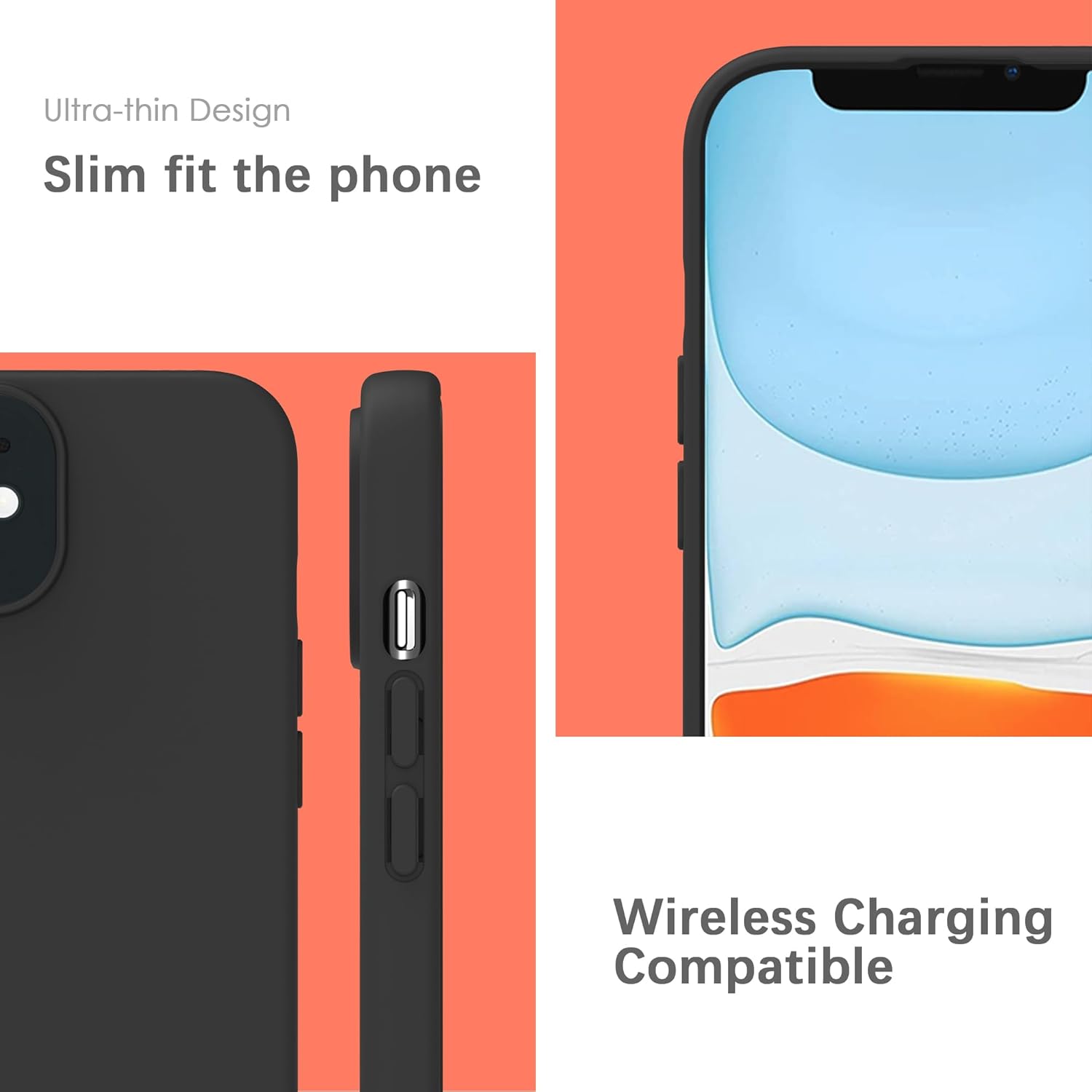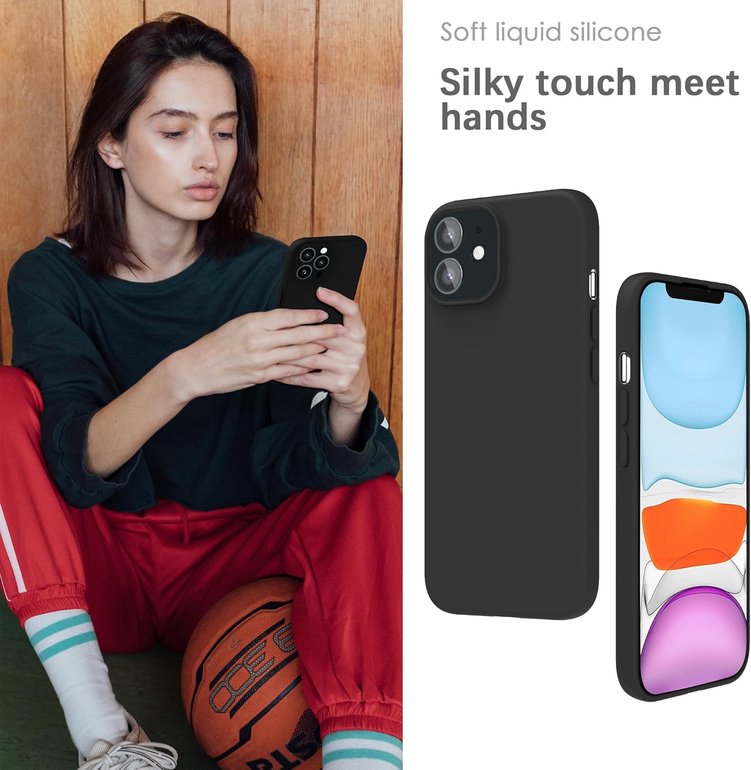 YATWIN Кейс за iPhone 11, Премиум силиконов калъф за мобилен телефон със защита на камерата, Копринен, Мек на допир, Ултра тънък, Удароустойчив, Устойчив на надраскване, Защитен калъф, Черен
