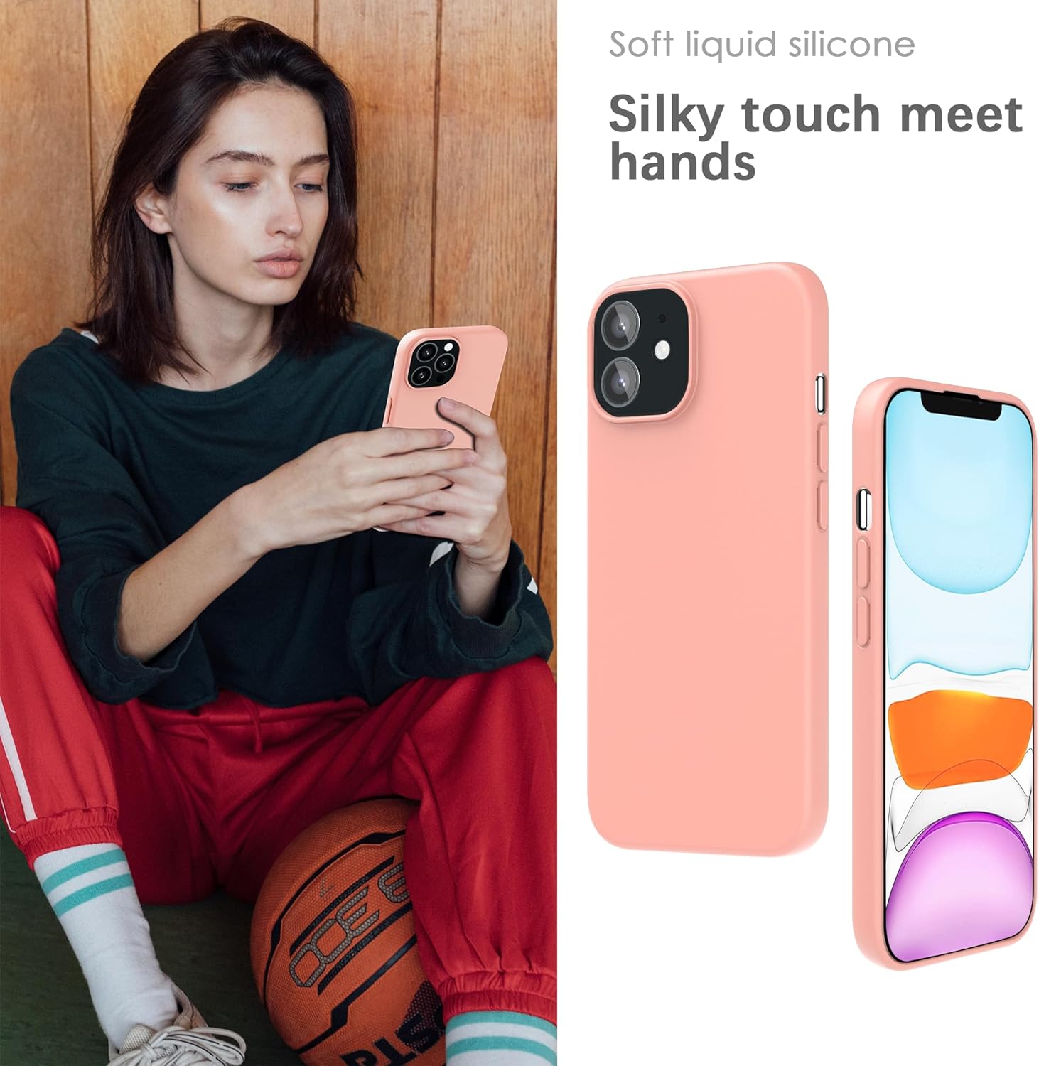 YATWIN Кейс за iPhone 11, Премиум силиконов калъф за мобилен телефон със защита на камерата, Копринен, Мек на допир, Ултра тънък, Удароустойчив, Устойчив на надраскване, Защитен калъф, Розов