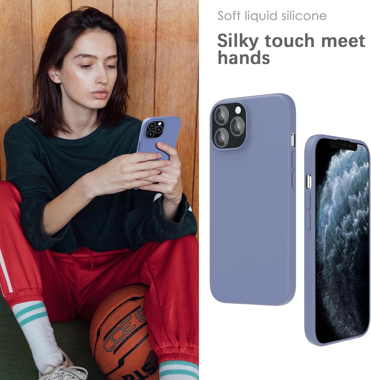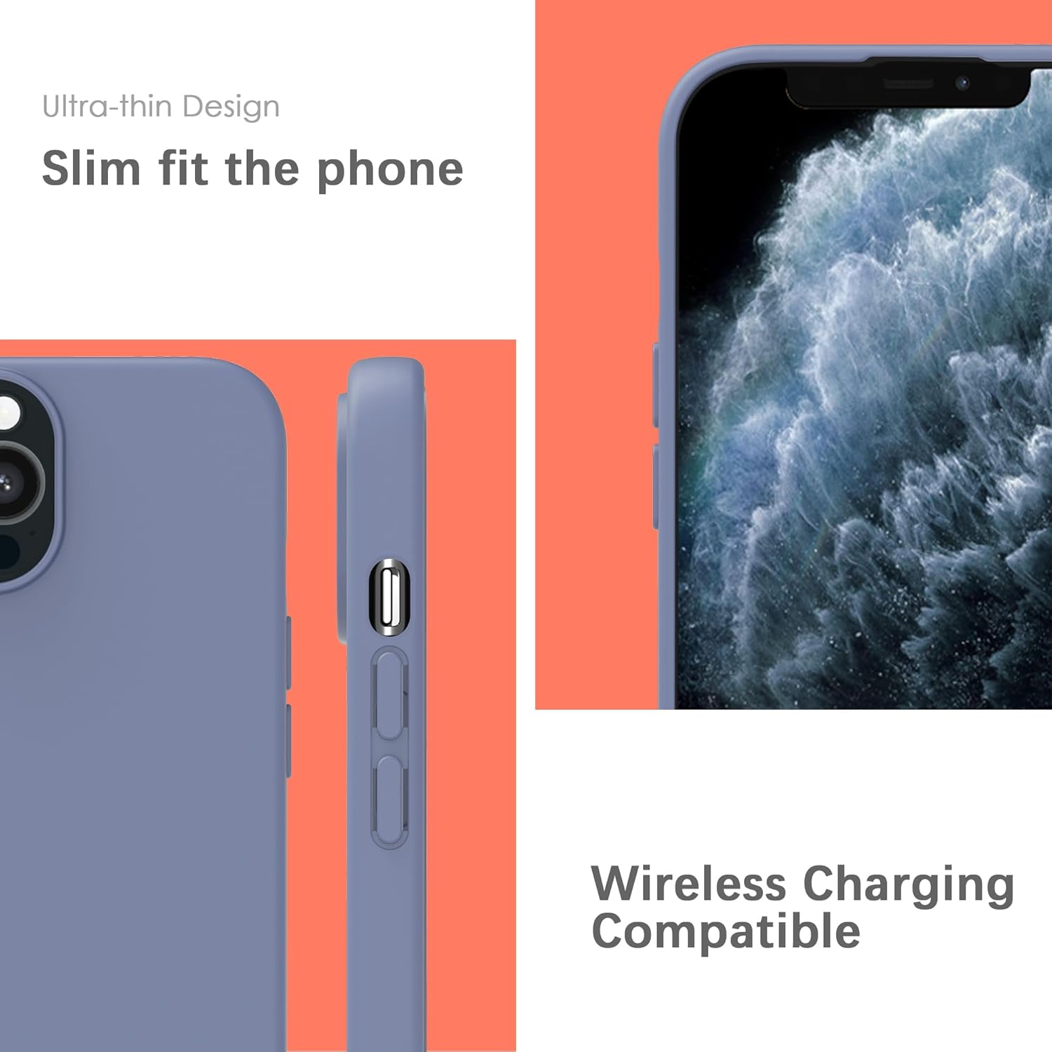 YATWIN Кейс за iPhone 11 Pro Max, Премиум силиконов калъф за мобилен телефон с копринено меко докосване, Ултра тънък, Удароустойчив, Устойчив на надраскване, Защитен калъф, Лавандулово сив