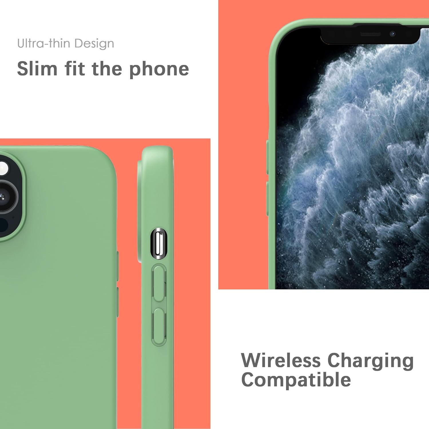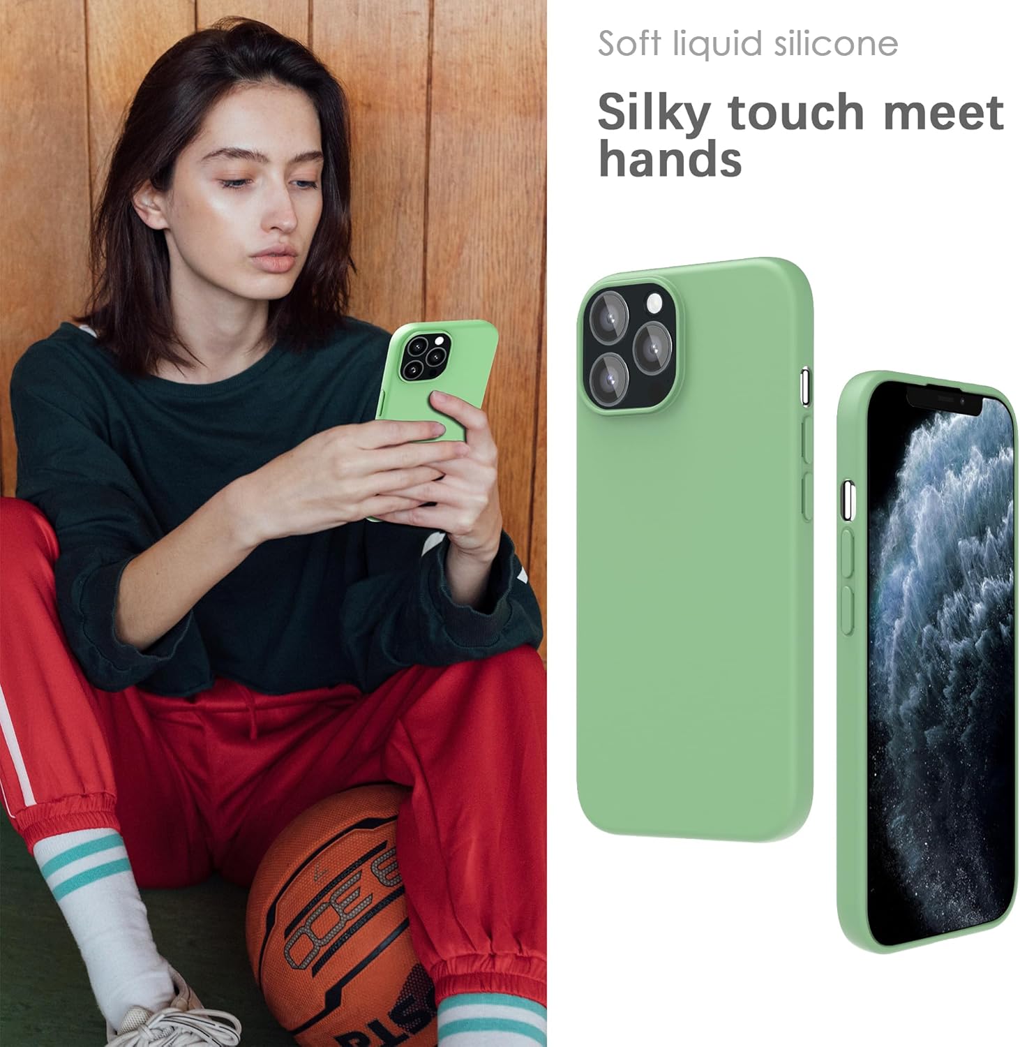 YATWIN Кейс за iPhone 11 Pro Max, Премиум силиконов калъф за мобилен телефон с копринено меко покритие, Ултра тънък, Удароустойчив, Устойчив на надраскване, Защитен калъф, Ментово зелен