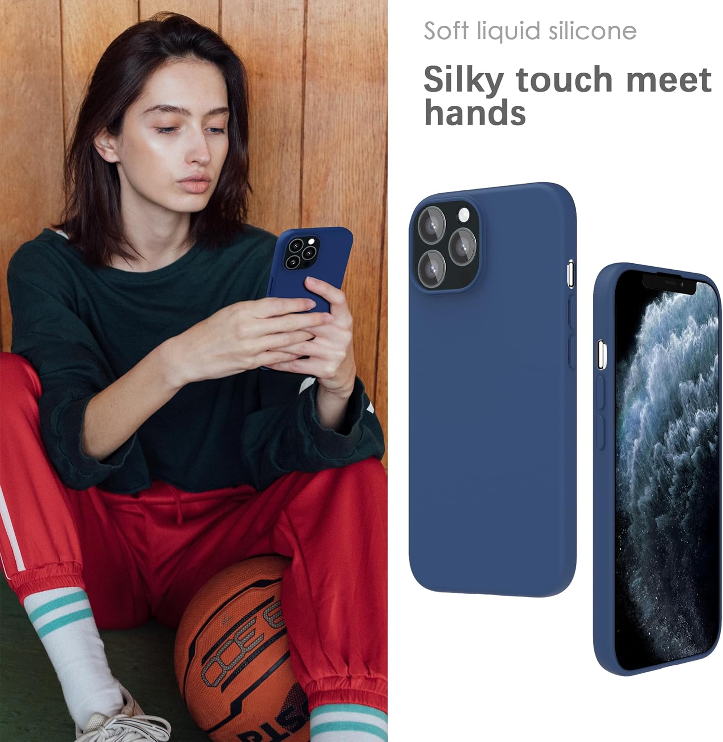 YATWIN Кейс за iPhone 11 Pro Max, Премиум силиконов калъф за мобилен телефон с копринено меко покритие, Ултра тънък, Удароустойчив, Устойчив на надраскване, Защитен калъф, Син