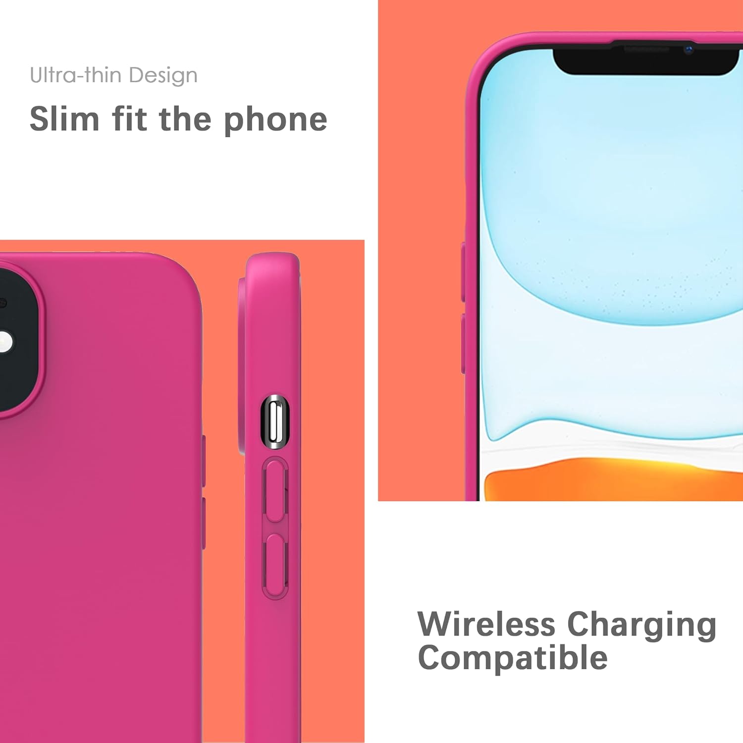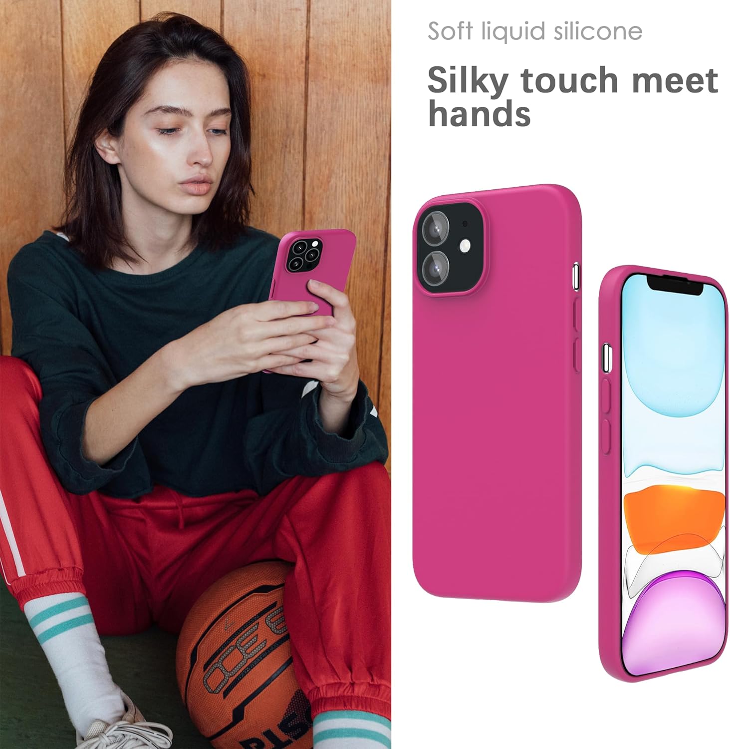 YATWIN Кейс за iPhone 11, Висококачествен силиконов калъф за мобилен телефон със защита на камерата, Копринен, Мек на допир, Ултра тънък, Удароустойчив, Устойчив на надраскване, Защитен калъф, Магента