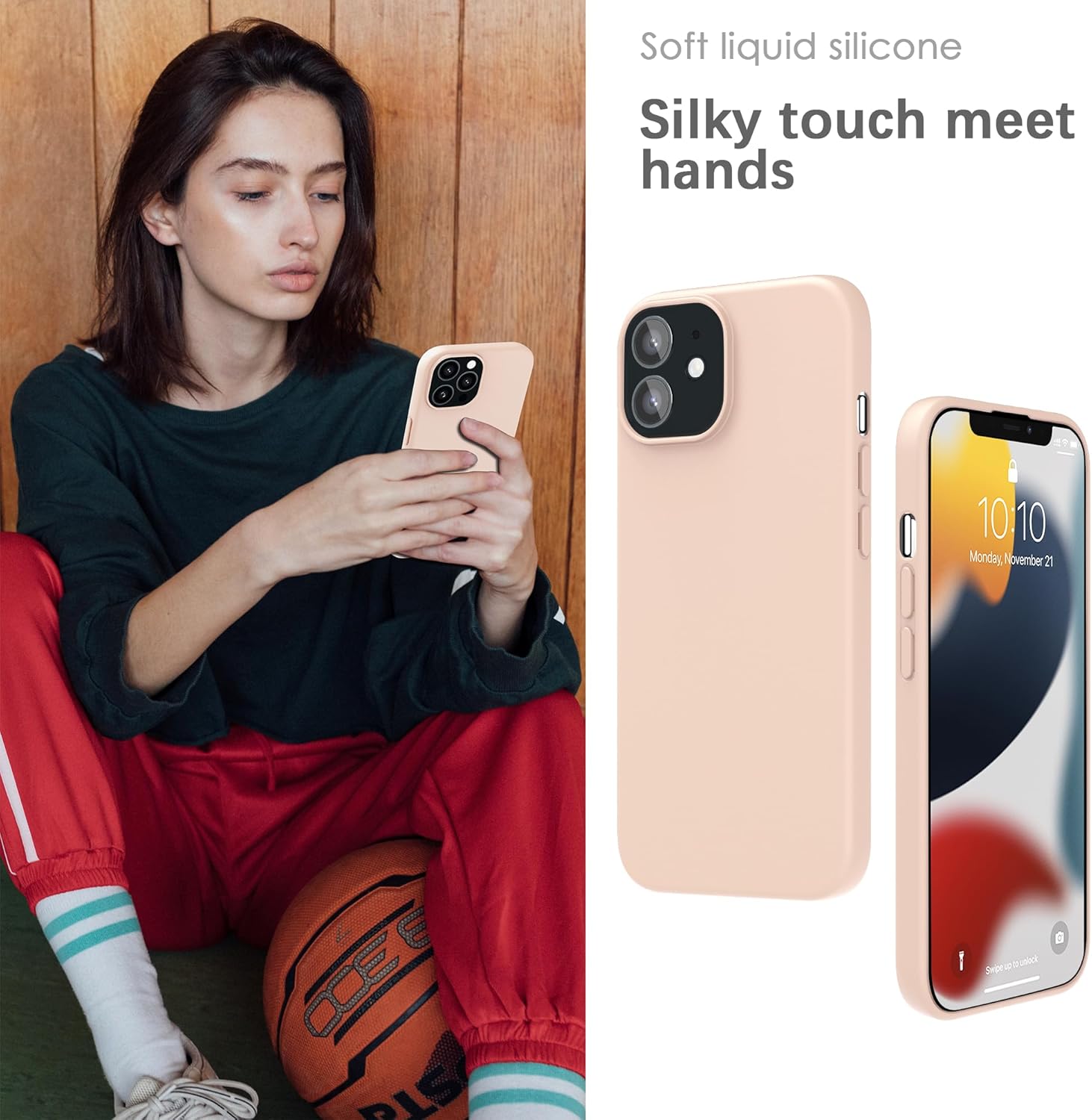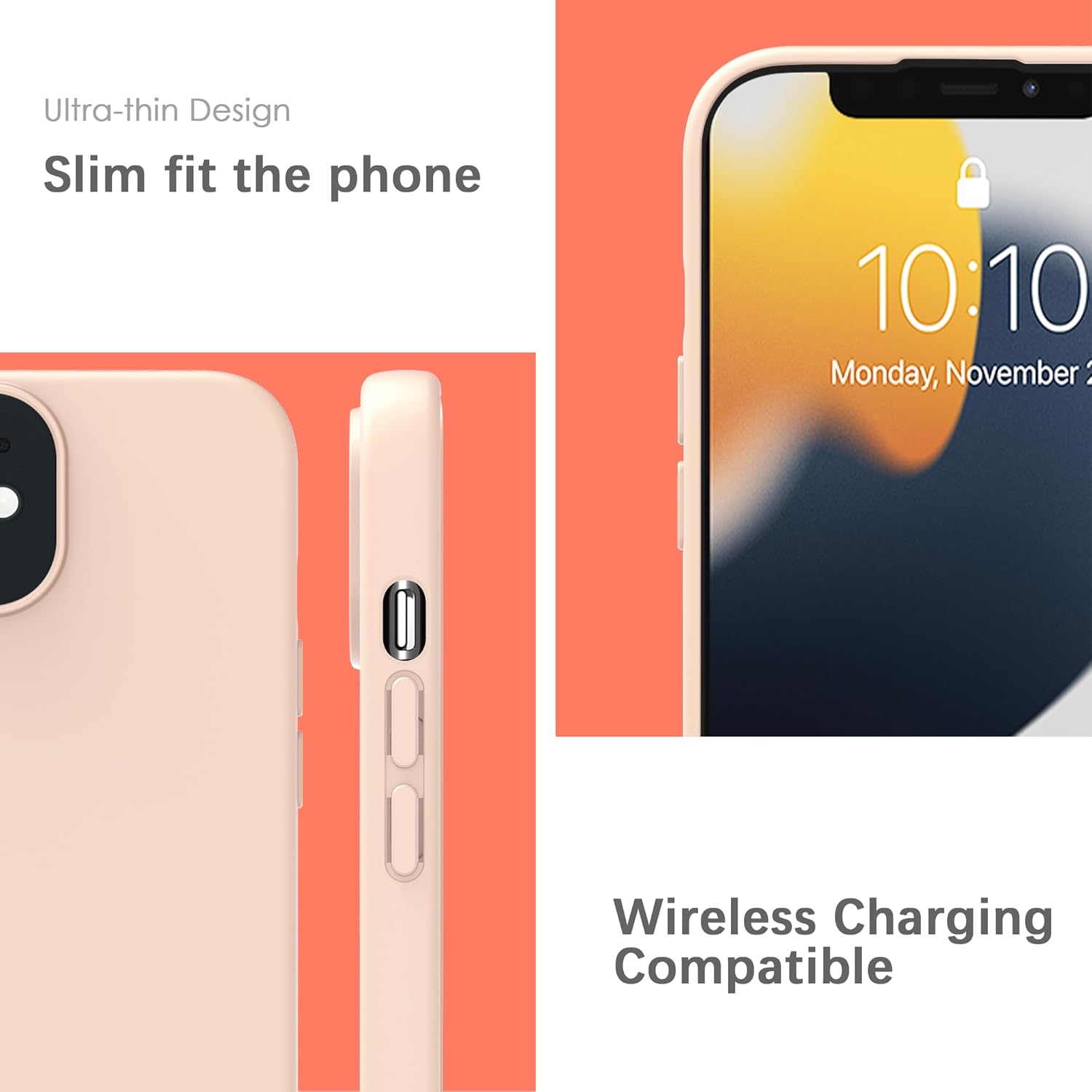 YATWIN Кейс за iPhone 12, iPhone 12 Pro, Силиконов калъф за мобилен телефон, Копринено мек на допир, Ултра тънък, Удароустойчив, Устойчив на надраскване, Защитен калъф, Светло розов