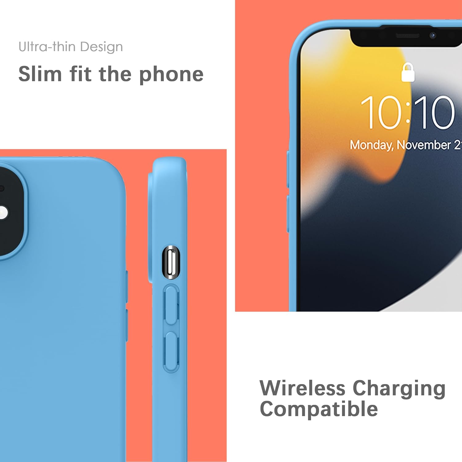YATWIN Кейс за iPhone 12, Кейс за iPhone 12 Pro, Премиум силиконов кейс за мобилен телефон с копринено меко покритие, Ултра тънък, Удароустойчив, Устойчив на надраскване, Защитен кейс, Лазурно син