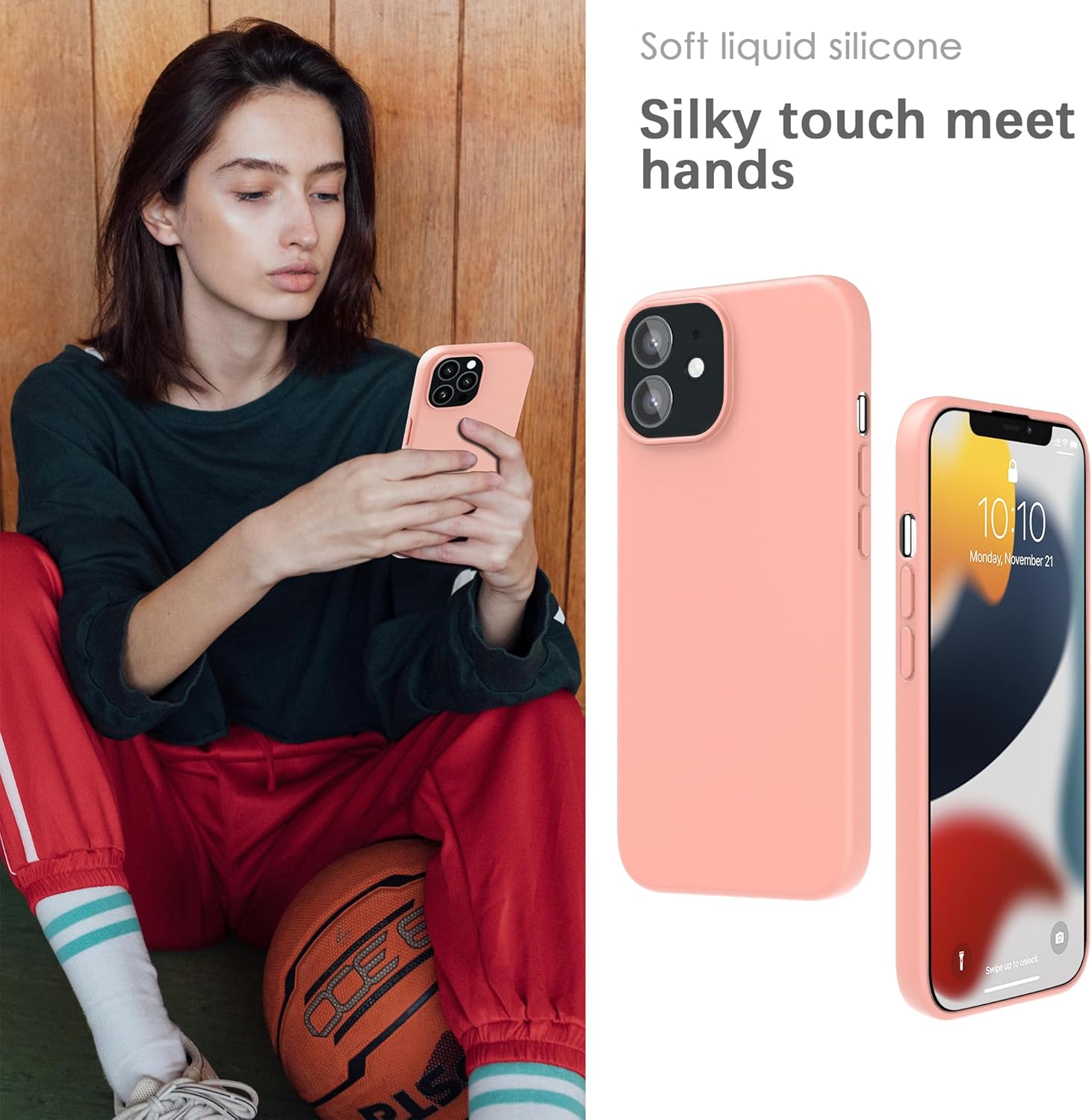 YATWIN Кейс за iPhone 12, Кейс за iPhone 12 Pro, Премиум силиконов кейс за мобилен телефон с копринено меко покритие, Ултра тънък, Удароустойчив, Устойчив на надраскване, Защитен кейс, Розов