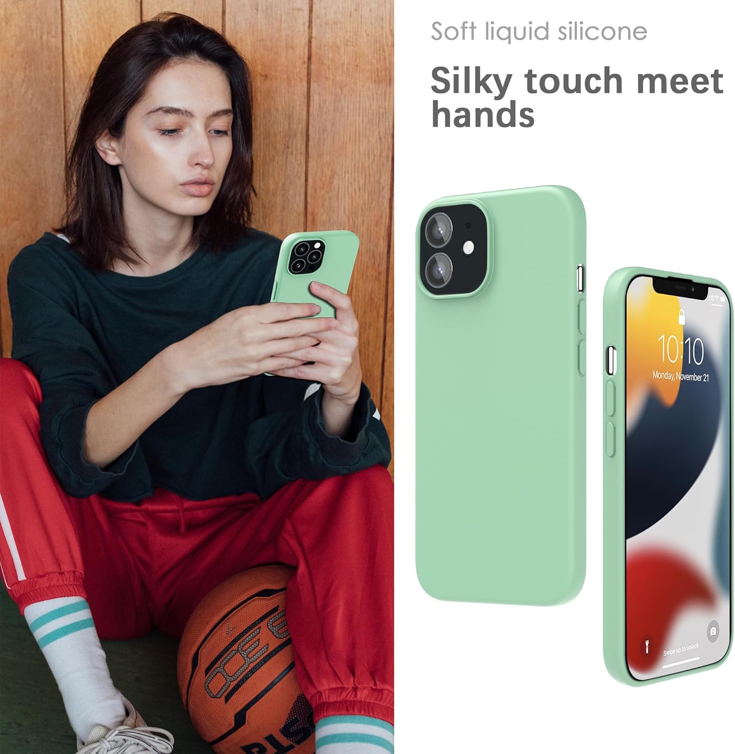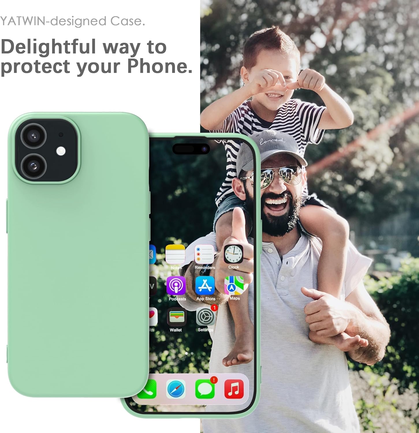 YATWIN Кейс за iPhone 12, Кейс за iPhone 12 Pro, Премиум силиконов кейс за мобилен телефон с копринено меко покритие, Ултра тънък, Удароустойчив, Устойчив на надраскване, Защитен кейс, Светлоциан