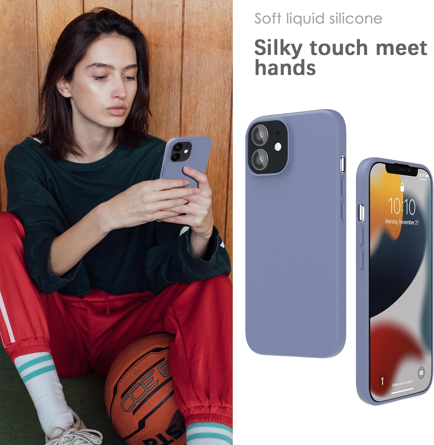 YATWIN Кейс за iPhone 12 Mini, Премиум силиконов калъф за мобилен телефон с копринено меко докосване, Ултра тънък, Удароустойчив, Устойчив на надраскване, Защитен калъф, Лавандулово сив