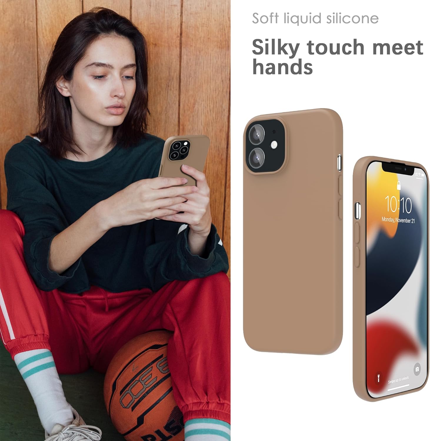 YATWIN Кейс за iPhone 12 Mini, Премиум силиконов калъф за мобилен телефон с копринено меко покритие, Ултра тънък, Удароустойчив, Устойчив на надраскване, Защитен калъф, Чай от мляко