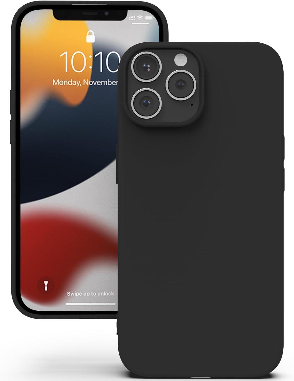 YATWIN Кейс за iPhone 12 Pro Max, Премиум силиконов калъф за мобилен телефон с копринено меко покритие, Ултра тънък, Удароустойчив, Устойчив на надраскване, Защитен калъф, Черен
