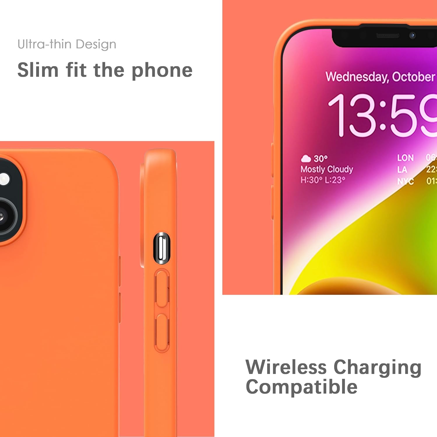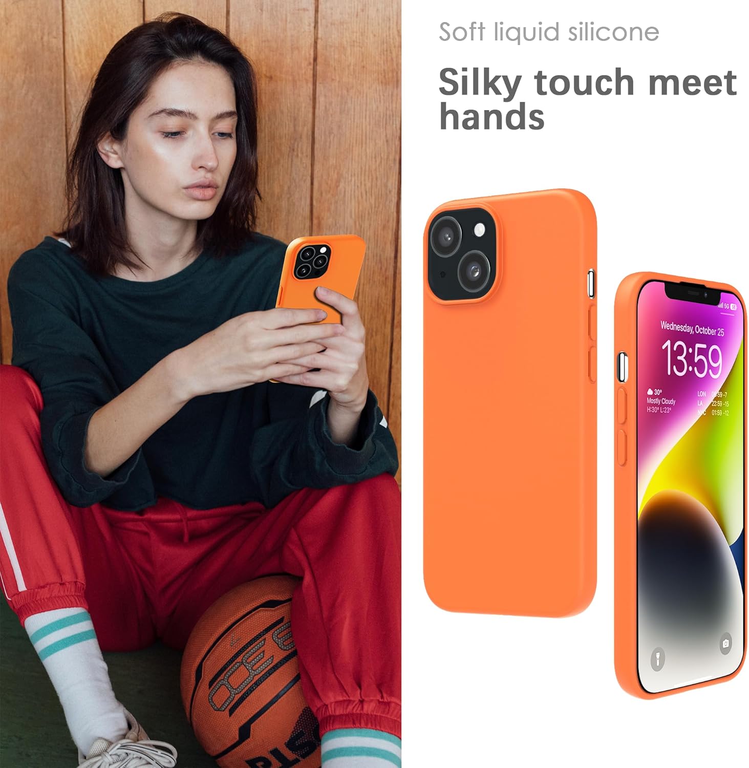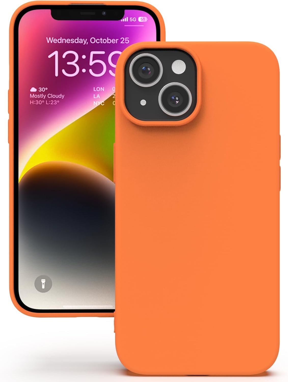YATWIN Кейс за iPhone 13 Mini, Премиум силиконов калъф за мобилен телефон с копринено меко покритие, Ултра тънък, Удароустойчив, Устойчив на надраскване, Защитен калъф, Оранжев