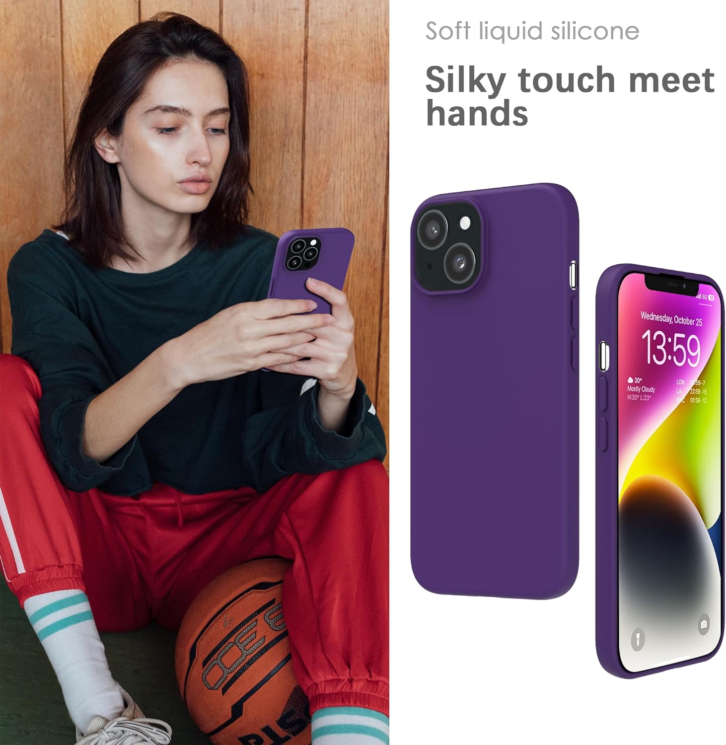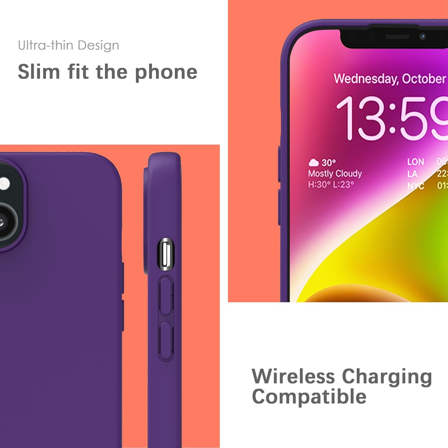 YATWIN Кейс за iPhone 13, Премиум силиконов калъф за мобилен телефон с копринено меко покритие, Ултра тънък, Удароустойчив, Устойчив на надраскване, Защитен калъф, Лилав