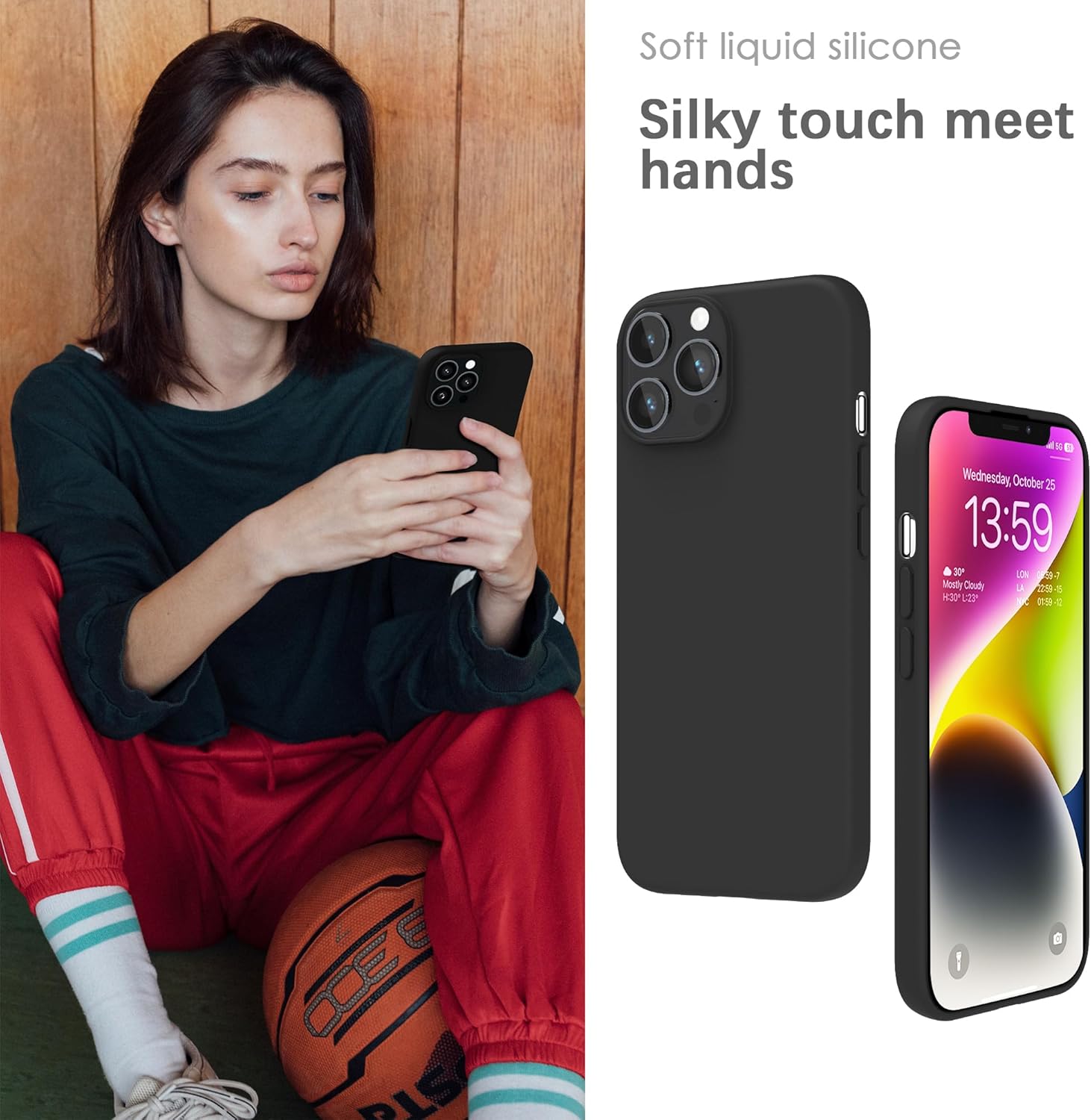 YATWIN Кейс за iPhone 13 Pro, Премиум силиконов калъф за мобилен телефон с копринено меко покритие, Ултра тънък, Удароустойчив, Устойчив на надраскване, Защитен калъф, Черен