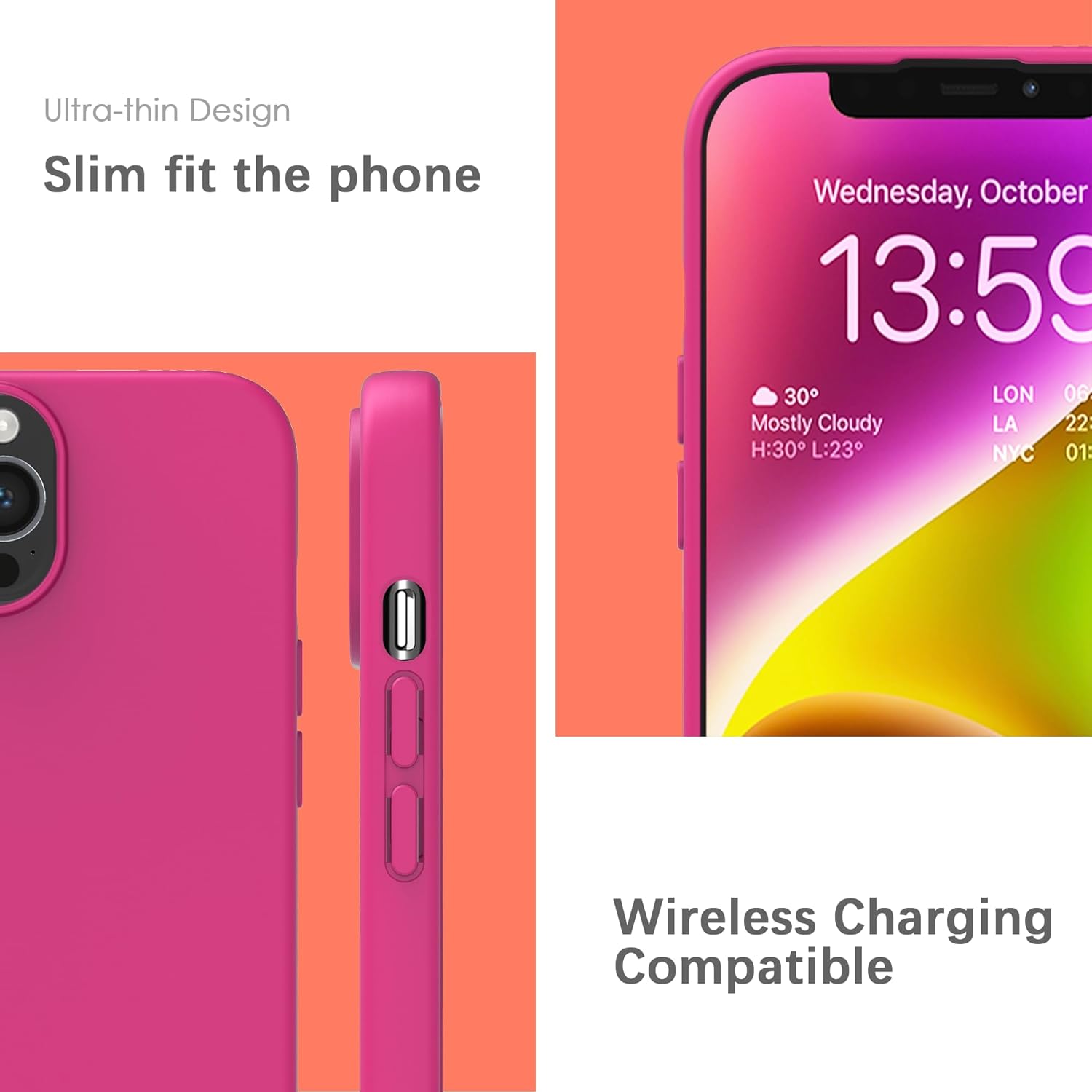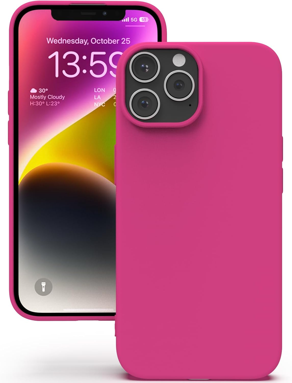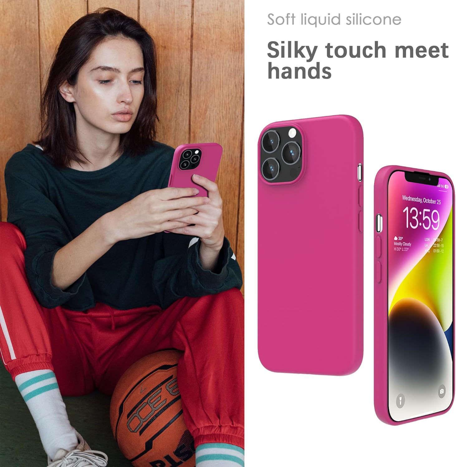 YATWIN Кейс за iPhone 13 Pro, Премиум силиконов калъф за мобилен телефон със защита на камерата, Копринен, Мек на допир, Ултра тънък, Удароустойчив, Устойчив на надраскване, Защитен калъф, Магента