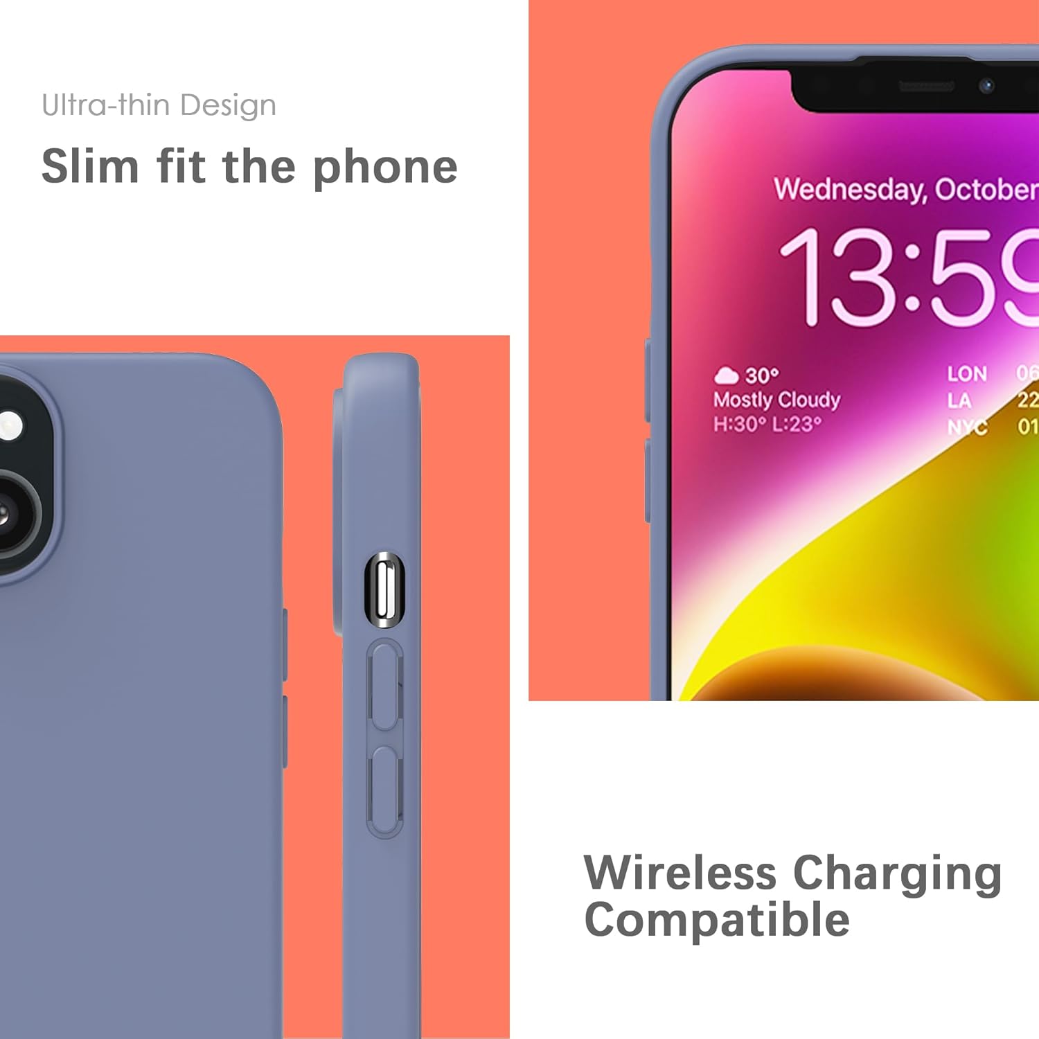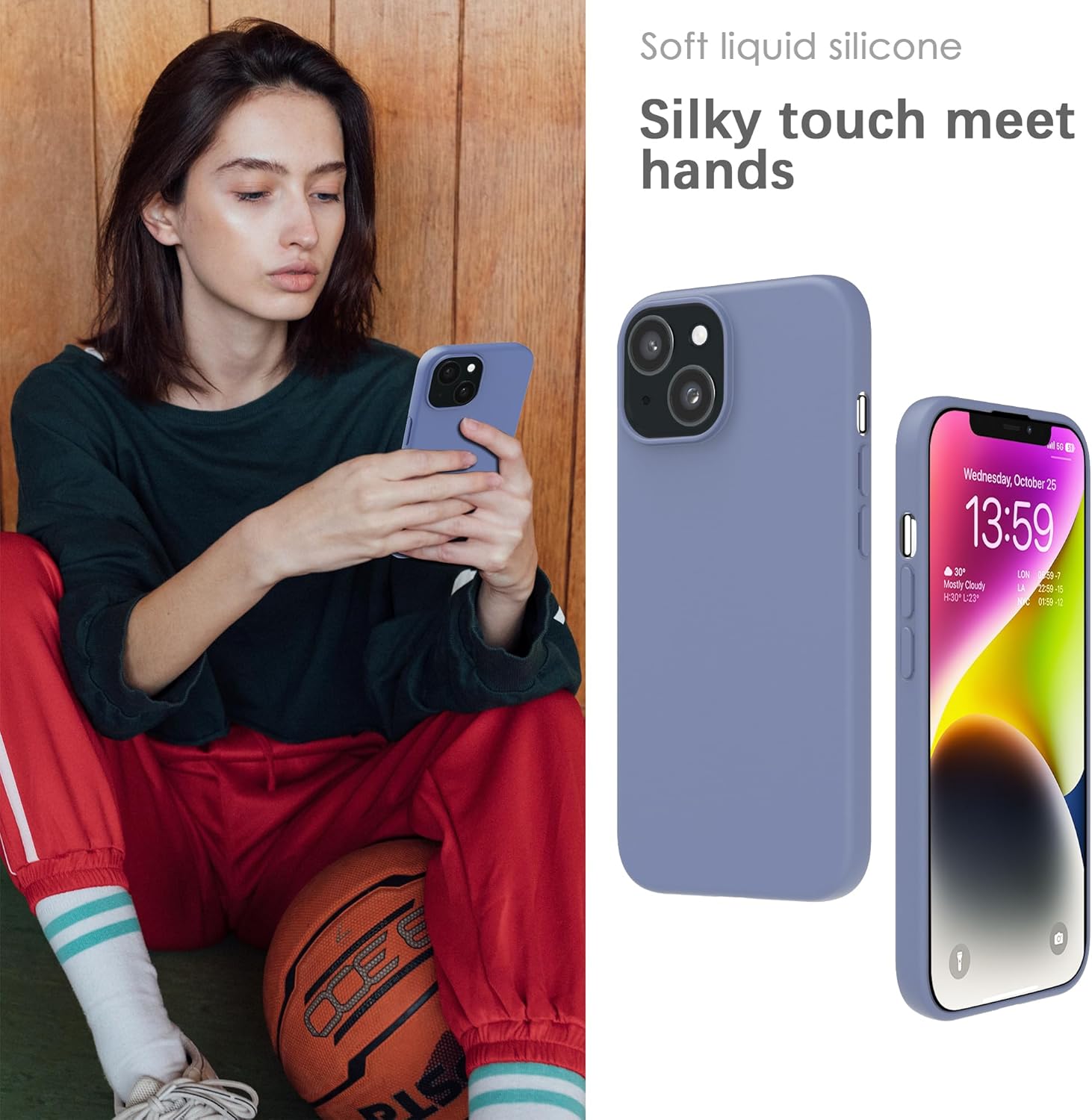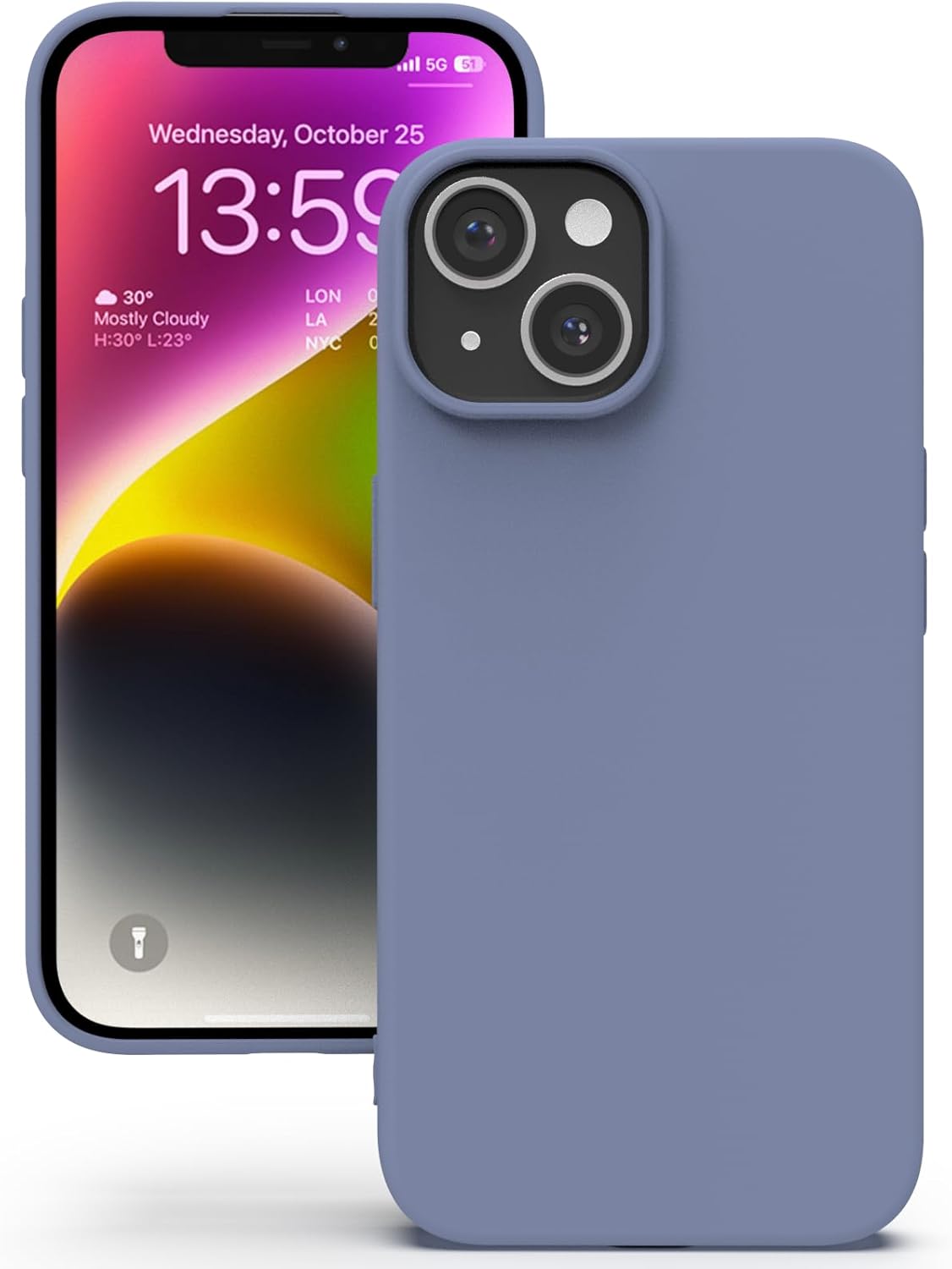 YATWIN Кейс за iPhone 14 Plus, Премиум силиконов калъф за мобилен телефон с копринено меко покритие, Ултра тънък, Удароустойчив, Устойчив на надраскване, Защитен калъф, Лавандулово сив
