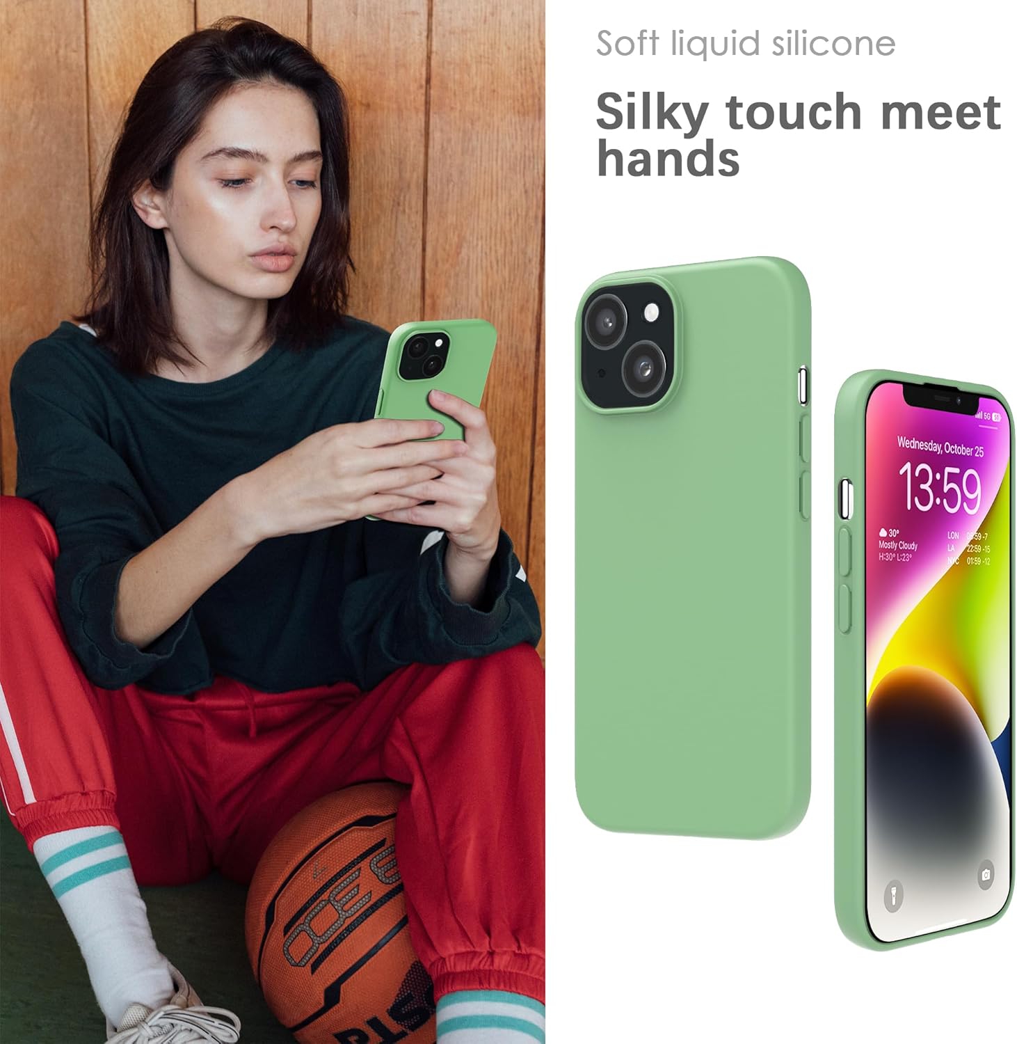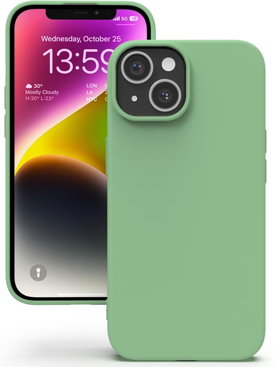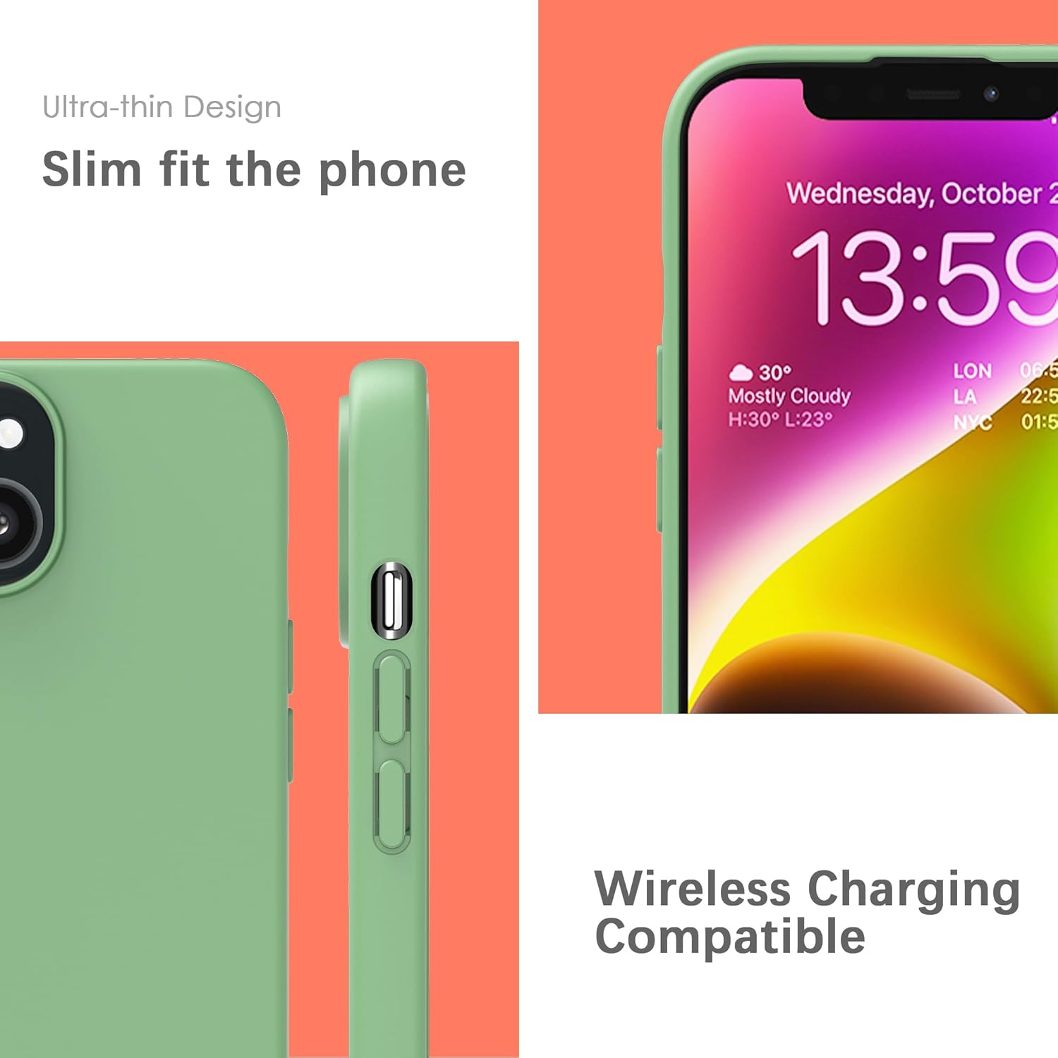 YATWIN Кейс за iPhone 14 Plus, Премиум силиконов калъф за мобилен телефон с копринено меко покритие, Ултра тънък, Удароустойчив, Устойчив на надраскване, Защитен калъф, Ментово зелен