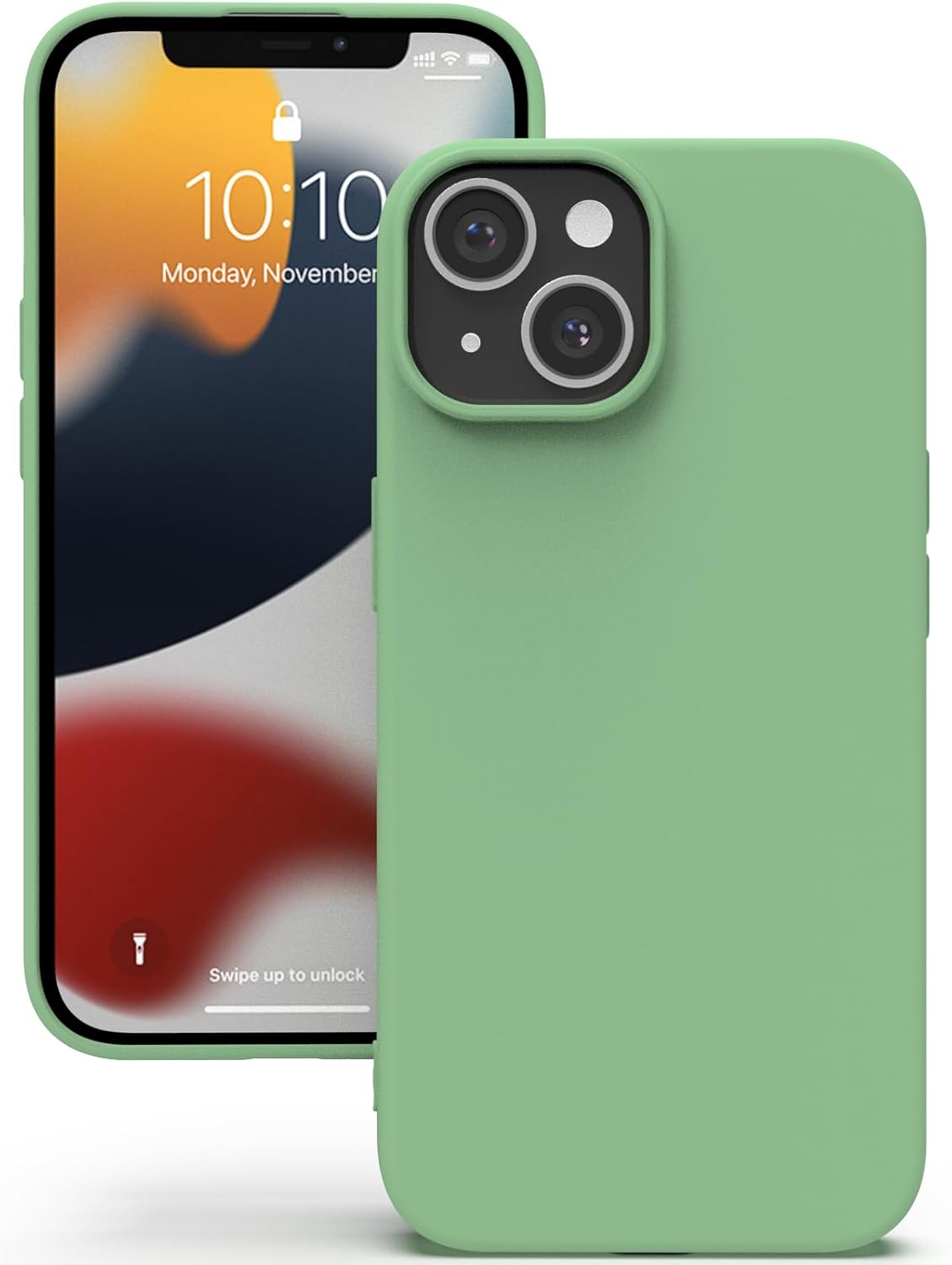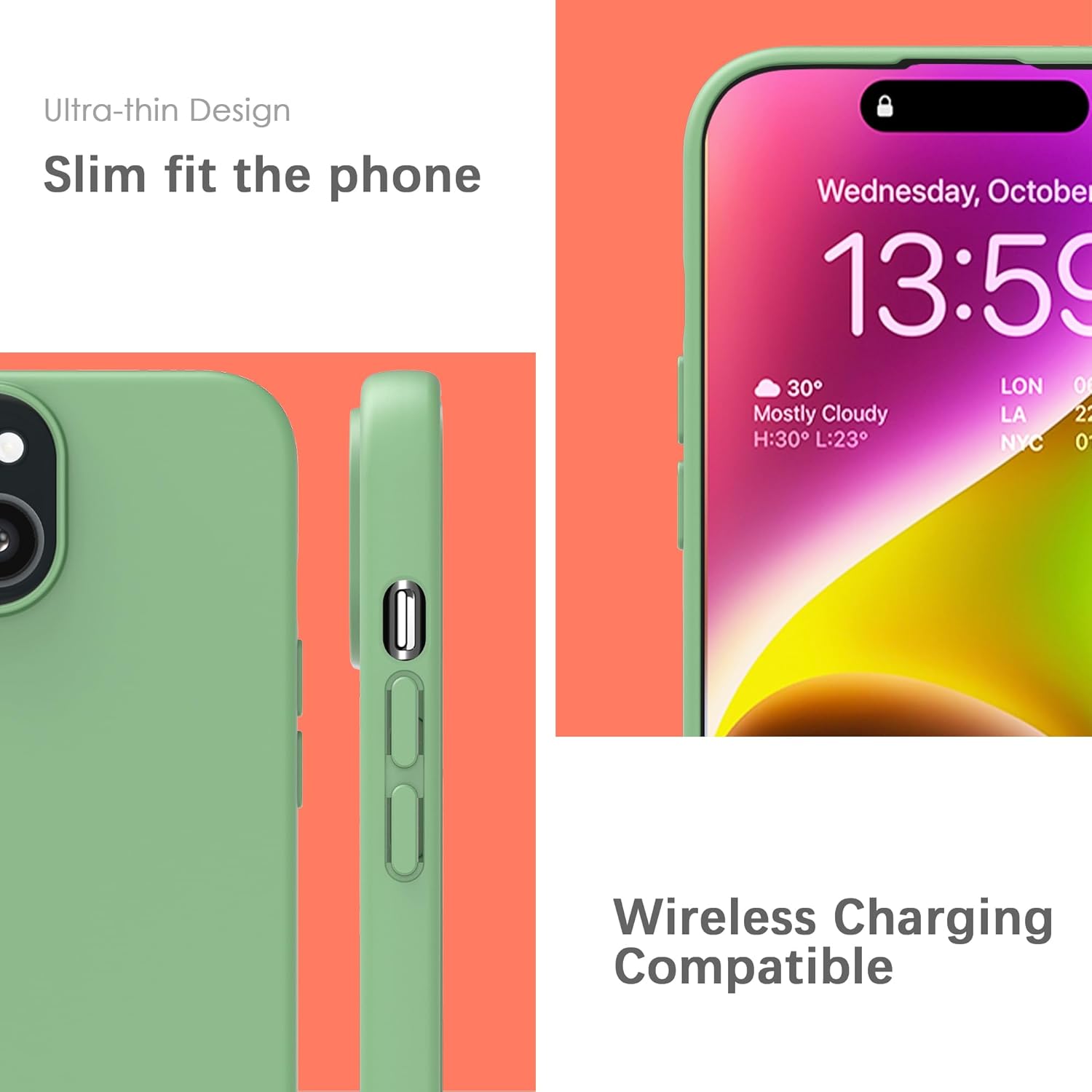 YATWIN Кейс за iPhone 14, Премиум силиконов калъф за мобилен телефон със защита на камерата, Копринен, Мек на допир, Ултра тънък, Удароустойчив, Устойчив на надраскване, Защитен калъф, Ментово зелен