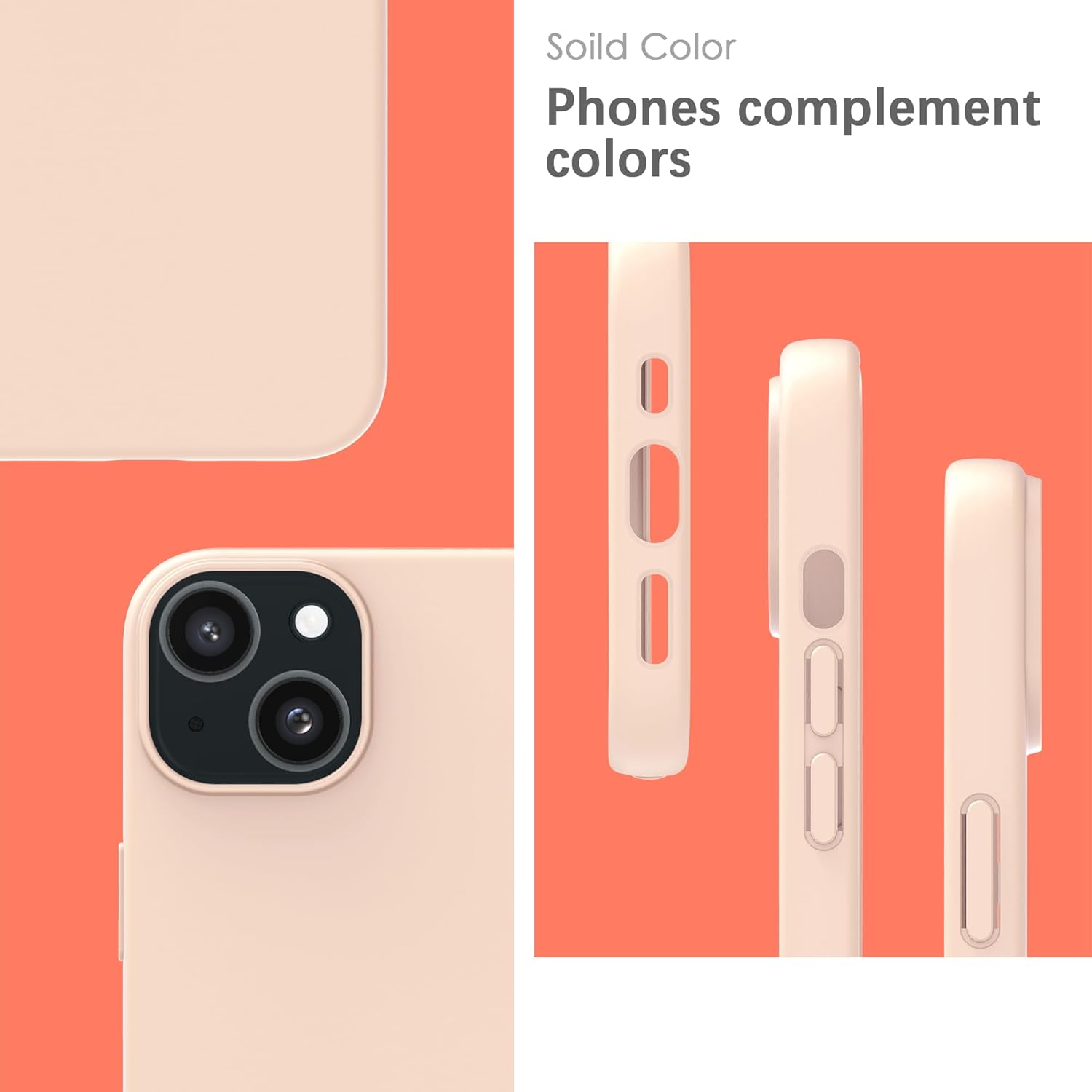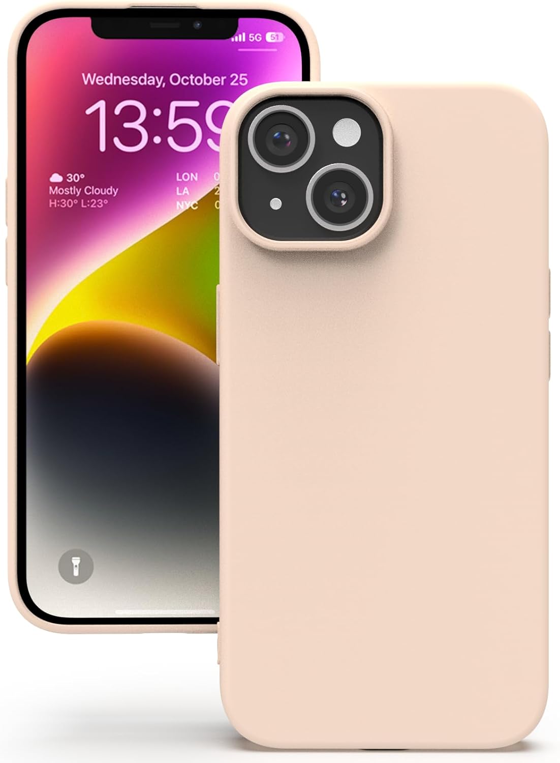 YATWIN Кейс за iPhone 14, Премиум силиконов калъф за мобилен телефон със защита на камерата, Копринен, Мек на допир, Ултра тънък, Удароустойчив, Устойчив на надраскване, Защитен калъф, Светло розов