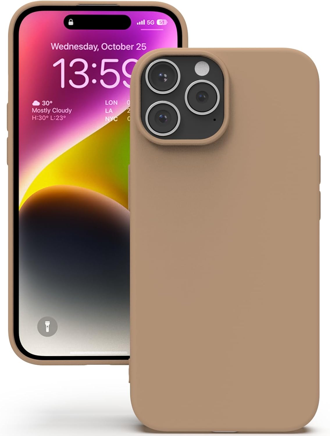 YATWIN Кейс за iPhone 14 Pro Max, Премиум силиконов калъф за мобилен телефон със защита на камерата, Копринен, Мек на допир, Ултра тънък, Удароустойчив, Устойчив на надраскване, Защитен калъф, Чай от мляко