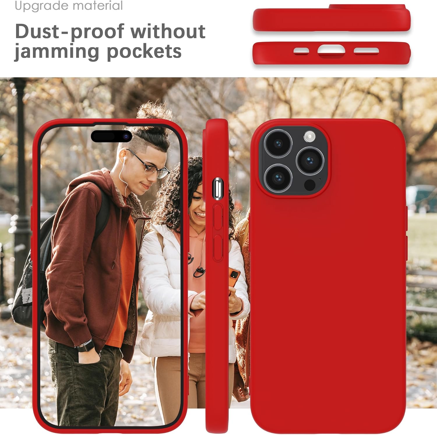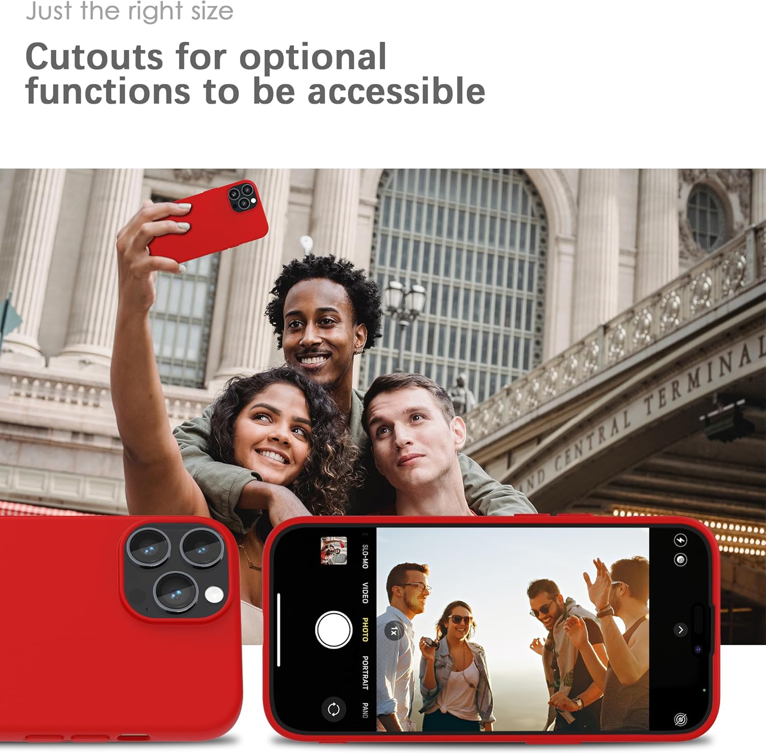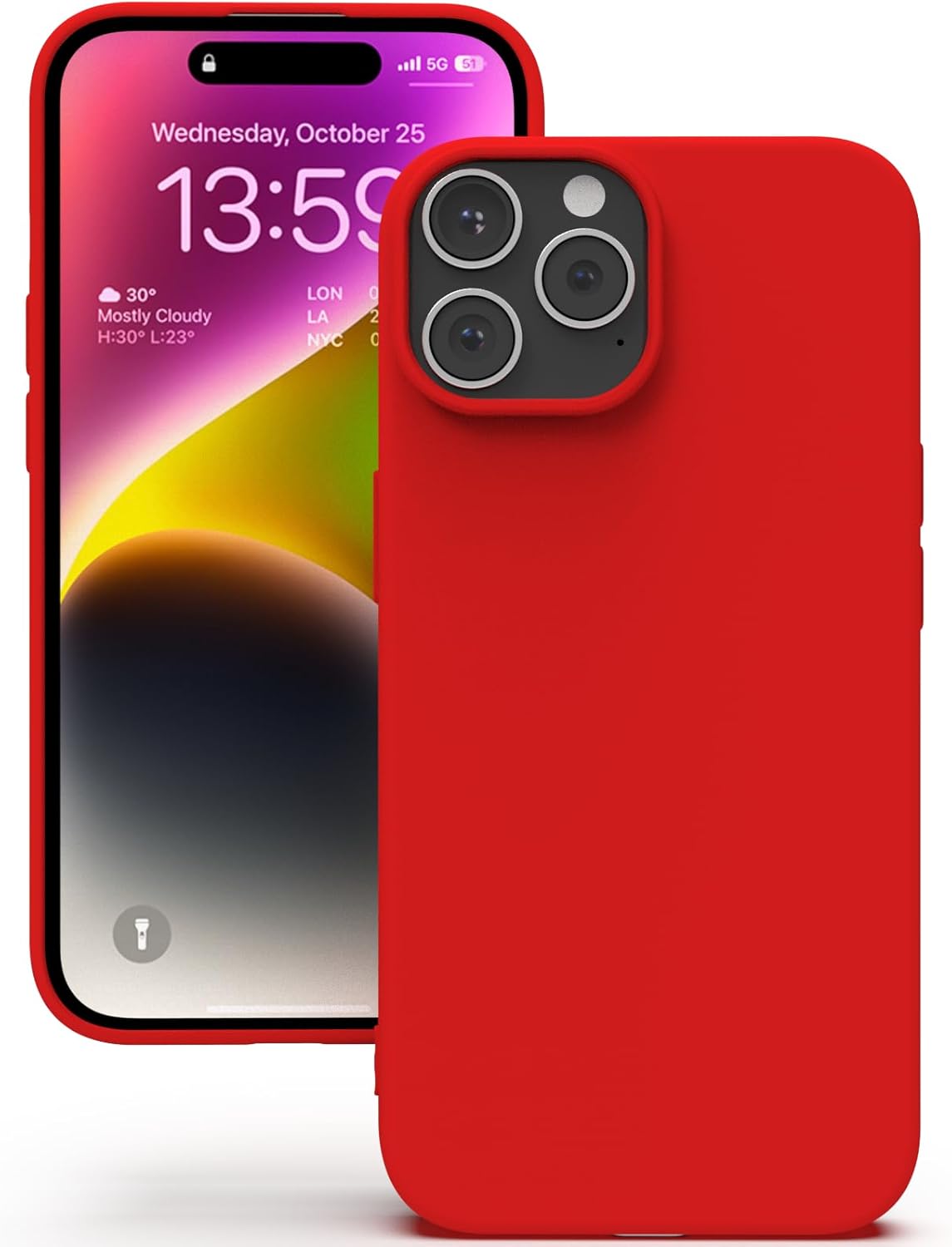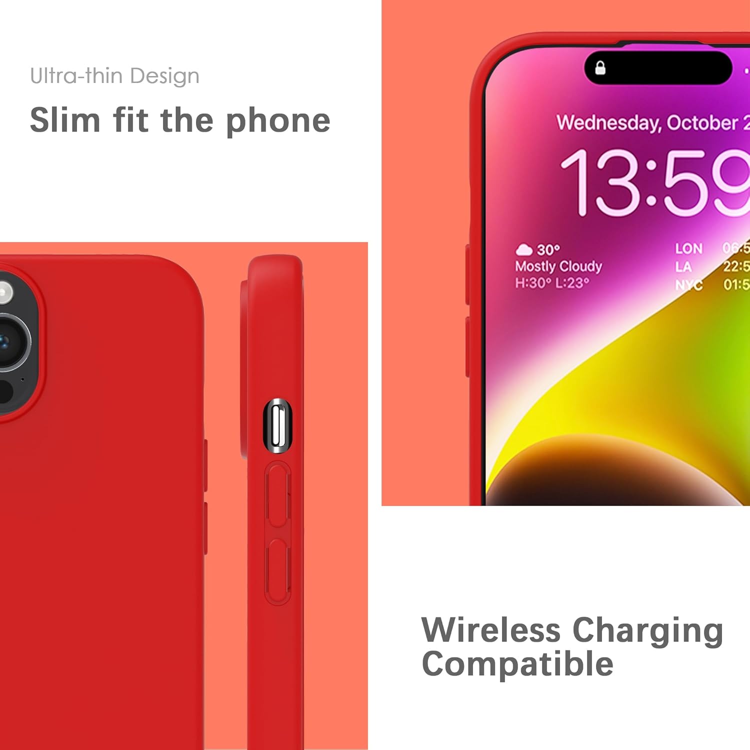 YATWIN Кейс за iPhone 14 Pro Max, Премиум силиконов калъф за мобилен телефон със защита на камерата, Копринен, Мек на допир, Ултра тънък, Удароустойчив, Устойчив на надраскване, Защитен калъф, Червен