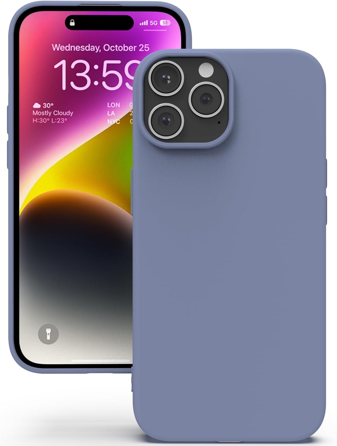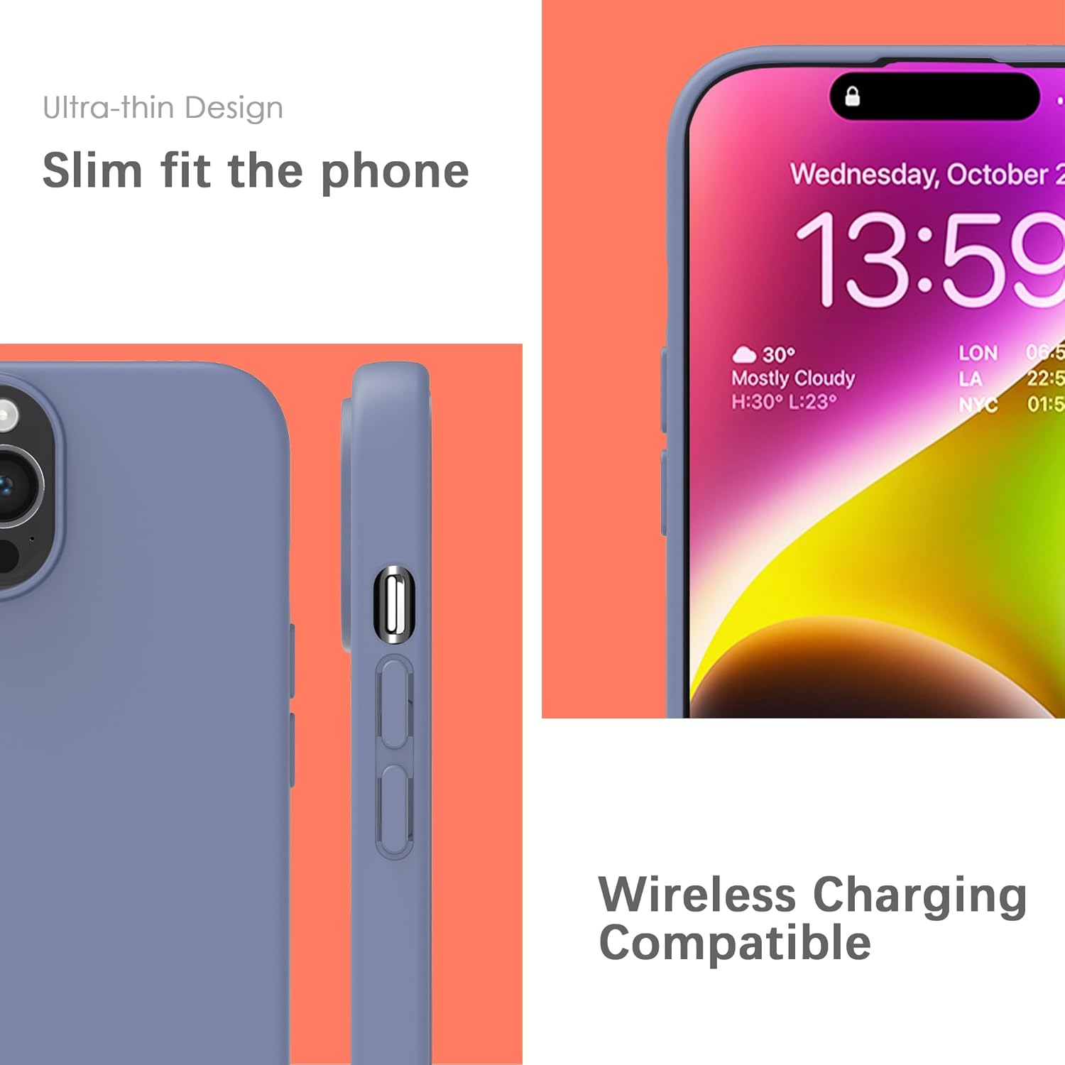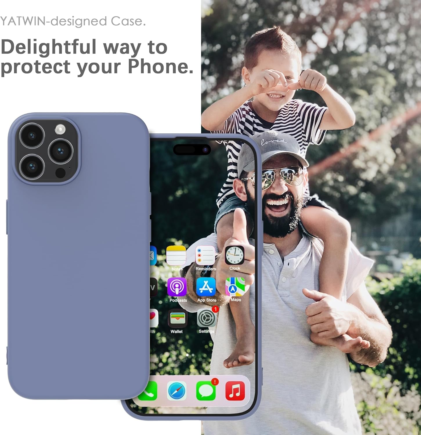 YATWIN Кейс за iPhone 14 Pro Max, Премиум силиконов калъф за мобилен телефон със защита на камерата, Копринен, Мек на допир, Ултра тънък, Удароустойчив, Устойчив на надраскване, Защитен калъф, Лавандулово сив
