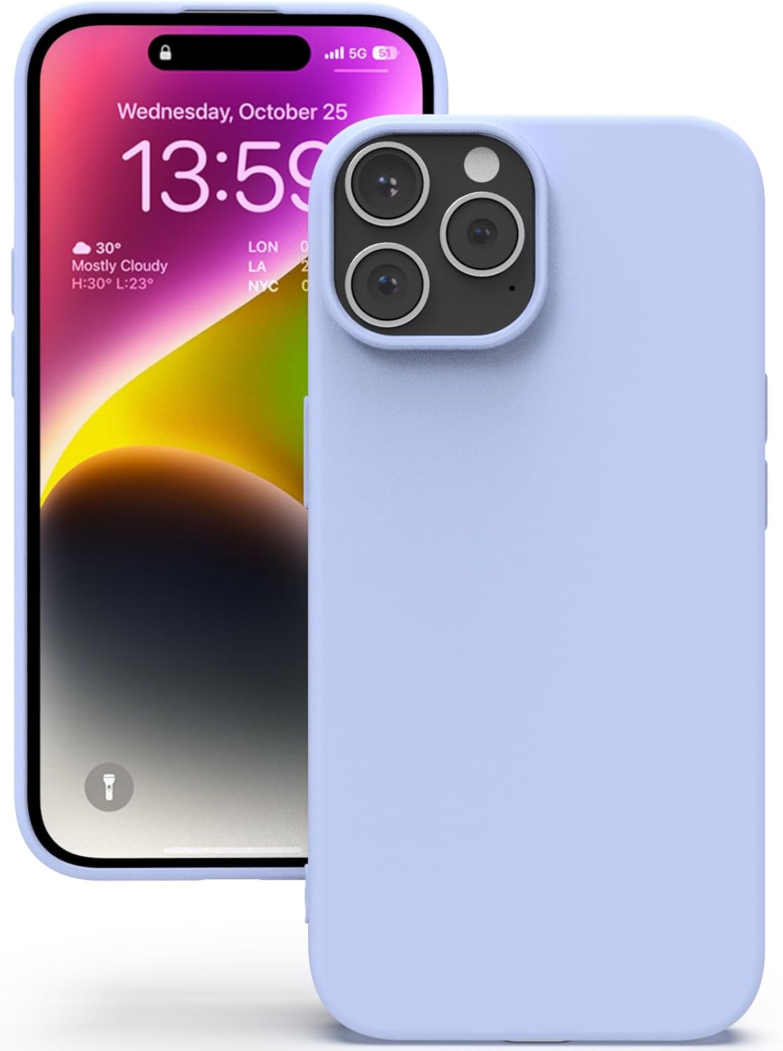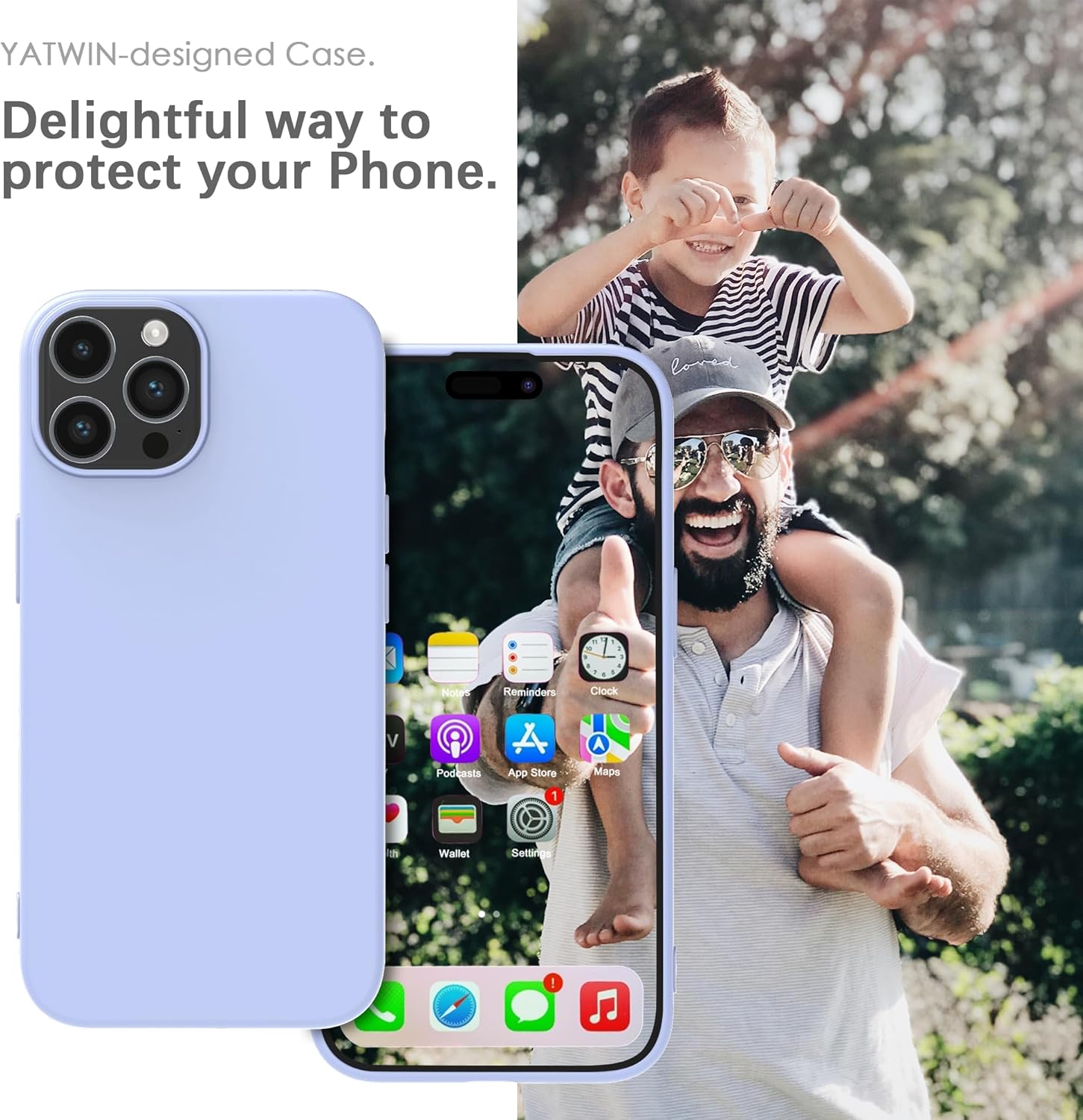 YATWIN Кейс за iPhone 14 Pro Max, Премиум силиконов калъф за мобилен телефон със защита на камерата, Копринен, Мек на допир, Ултра тънък, Удароустойчив, Устойчив на надраскване, Защитен калъф, Лилав