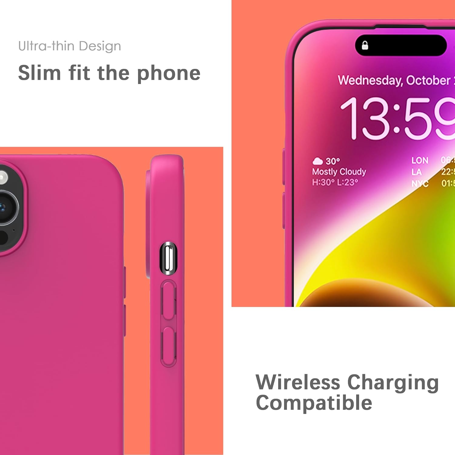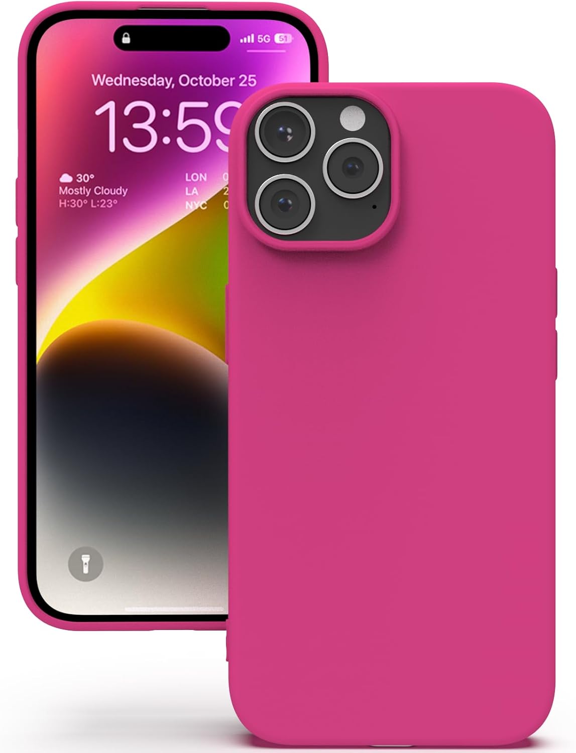 YATWIN Кейс за iPhone 14 Pro Max, Премиум силиконов калъф за мобилен телефон със защита на камерата, Копринен, Мек на допир, Ултра тънък, Удароустойчив, Устойчив на надраскване, Защитен калъф, Магента