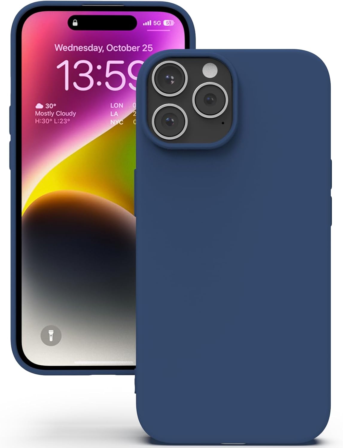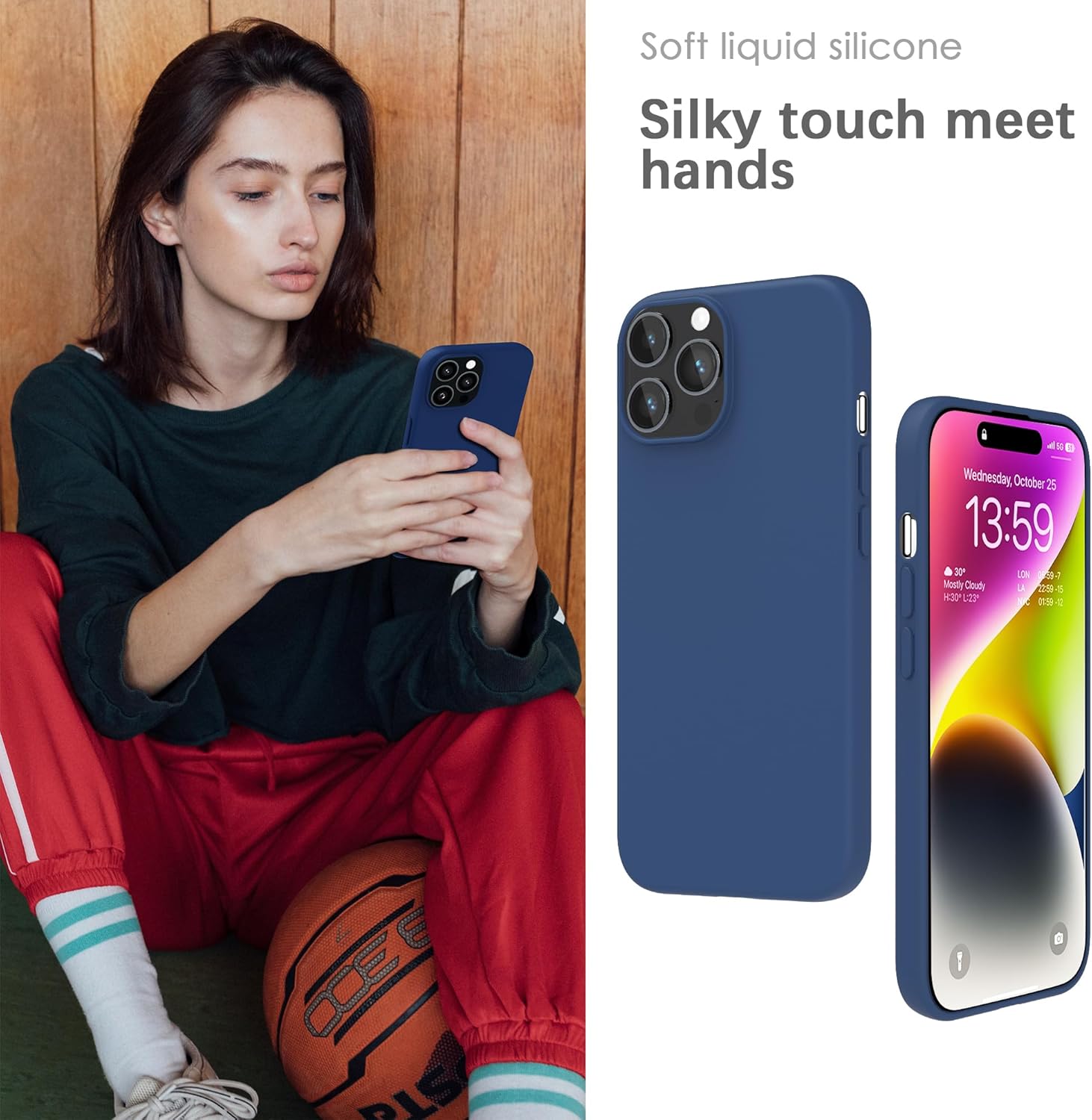 YATWIN Кейс за iPhone 14 Pro Max, Премиум силиконов калъф за мобилен телефон със защита на камерата, Копринен, Мек на допир, Ултра тънък, Удароустойчив, Устойчив на надраскване, Защитен калъф, Син