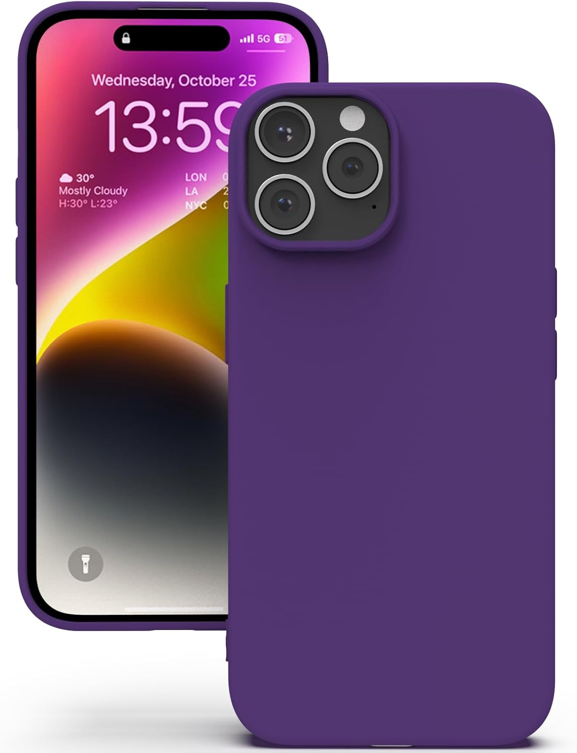 YATWIN Кейс за iPhone 14 Pro Max, Премиум силиконов калъф за мобилен телефон със защита на камерата, Копринен, Мек на допир, Ултра тънък, Удароустойчив, Устойчив на надраскване, Защитен калъф, Виола